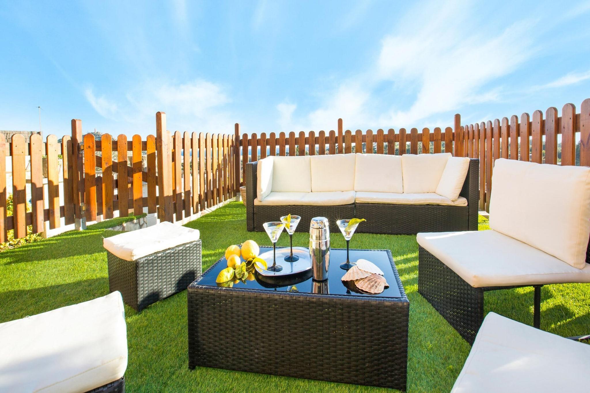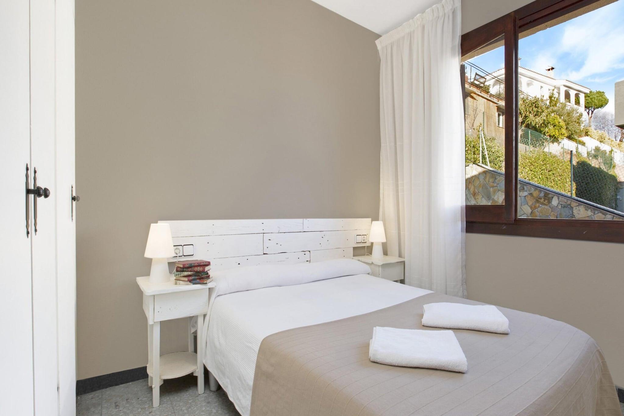Denne koselige 5-roms villaen ligger i et fredelig boligområde kun 3 km fra den sjarmerende byen Blanes, noe som gjør den til det perfekte tilfluktsstedet for en avslappende familieferie på Costa Brava. Villaen har plass til opptil 9 gjester og ligger i to etasjer, og tilbyr god plass for alle å nyte. Den har et privat svømmebasseng (8x4m) omgitt av en hage og vakker havutsikt. Uteområdet har en innebygd grill og en veranda, ideell for å nyte måltider og frokoster ved bassenget. Villaen ligger nær strendene i Blanes, som er kjent for sitt turkise, krystallklare vann. Innvendig tilbyr villaen en komfortabel stue og spisestue med TV, som åpner direkte til terrassen. Det fullt utstyrte kjøkkenet har alt du trenger for å tilberede familiemåltider, inkludert kjøleskap, mikrobølgeovn, brødrister, stekeovn, vaskemaskin og oppvaskmaskin. Villaen har tre doble soverom, ett soverom med to enkeltsenger og ett soverom med en enkeltseng. Det er to bad, ett med badekar og det andre med dusj, noe som sikrer komfort for alle gjester. Eiendommen inkluderer også gratis Wi-Fi, noe som gjør det enkelt å holde kontakten under oppholdet. Kjæledyr er tillatt etter avtale og mot et tillegg. Villaen er perfekt for familier, og reservasjoner aksepteres ikke for unge grupper under 35. Det er et fantastisk sted å nyte Costa Brava, omgitt av naturlig skjønnhet, familievennlige aktiviteter og den pulserende byen Blanes.