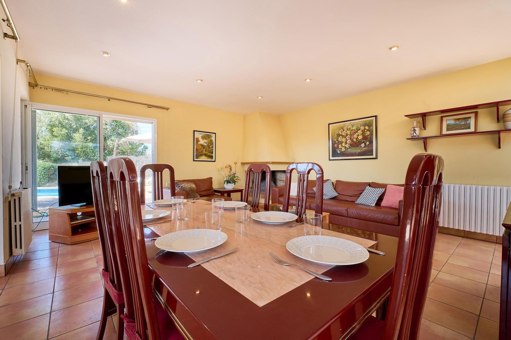 Opplev den typiske Costa Brava-livsstilen i denne 300 m² store villaen, som ligger i den sjarmerende kystbyen Blanes. Denne eiendommen ligger på en generøs inngjerdet tomt på 900 m², og tilbyr rikelig med plass og privatliv for grupper på opptil ti gjester. Hjertet i hjemmet er den romslige stuen, med en koselig peis og et eget sitteområde som er perfekt for kveldsavslapning. Enten du er vert for en stor familiemiddag ved spisebordet eller nyter en filmkveld, byr villaen på en varm og innbydende atmosfære. Uteområdet er et privat fristed designet for middelhavssolen. Det har et privat svømmebasseng omgitt av en frodig hage og en romslig terrasse utstyrt med hagemøbler. Det er det ideelle stedet for utendørs servering eller bare for å slappe av ved vannet. Innvendig er villaen gjennomtenkt utformet med fem soverom og fem bad, noe som gir god bekvemmelighet for store grupper. Kjøkkenet er fullt utstyrt med moderne nødvendigheter, inkludert oppvaskmaskin, stekeovn og mikrobølgeovn, noe som sikrer at det er en lek å tilberede gruppemåltider. I et rolig boligområde i Blanes er du perfekt plassert for å utforske «porten til Costa Brava». Fra de berømte botaniske hagene til de brede sandstrendene og den pulserende lokale havnen, er alt denne historiske kystbyen har å tilby innen rekkevidde. Med parkering på stedet, vaskerom og et fullstendig inngjerdet område, tilbyr denne villaen en sikker, komfortabel og majestetisk base for en uforglemmelig spansk ferie.