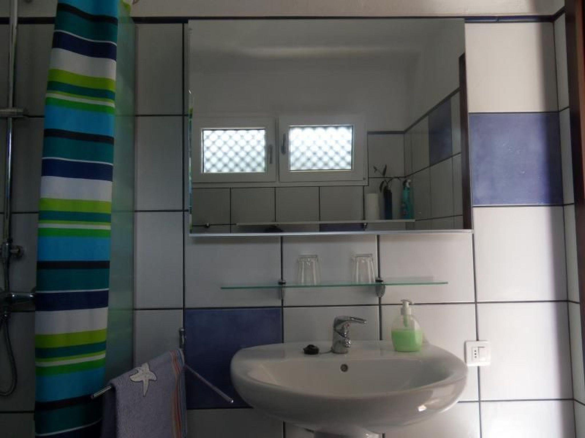 Each of the 8 studios has its own balcony with sea view (studio no. 5 - no. 8 on the upper floor), or its own terrace with sea view (studio no. 1 - no. 4 on the ground floor) The studio is a large and bright living and sleeping area with 2 single beds put together, a wardrobe and a dining table for 4 people. The kitchens are functionally equipped and have a fridge, a gas cooker with cooking equipment as well as crockery and cutlery for 3 people per flat. The private bathroom has a large shower, a washbasin, a toilet and a bidet.