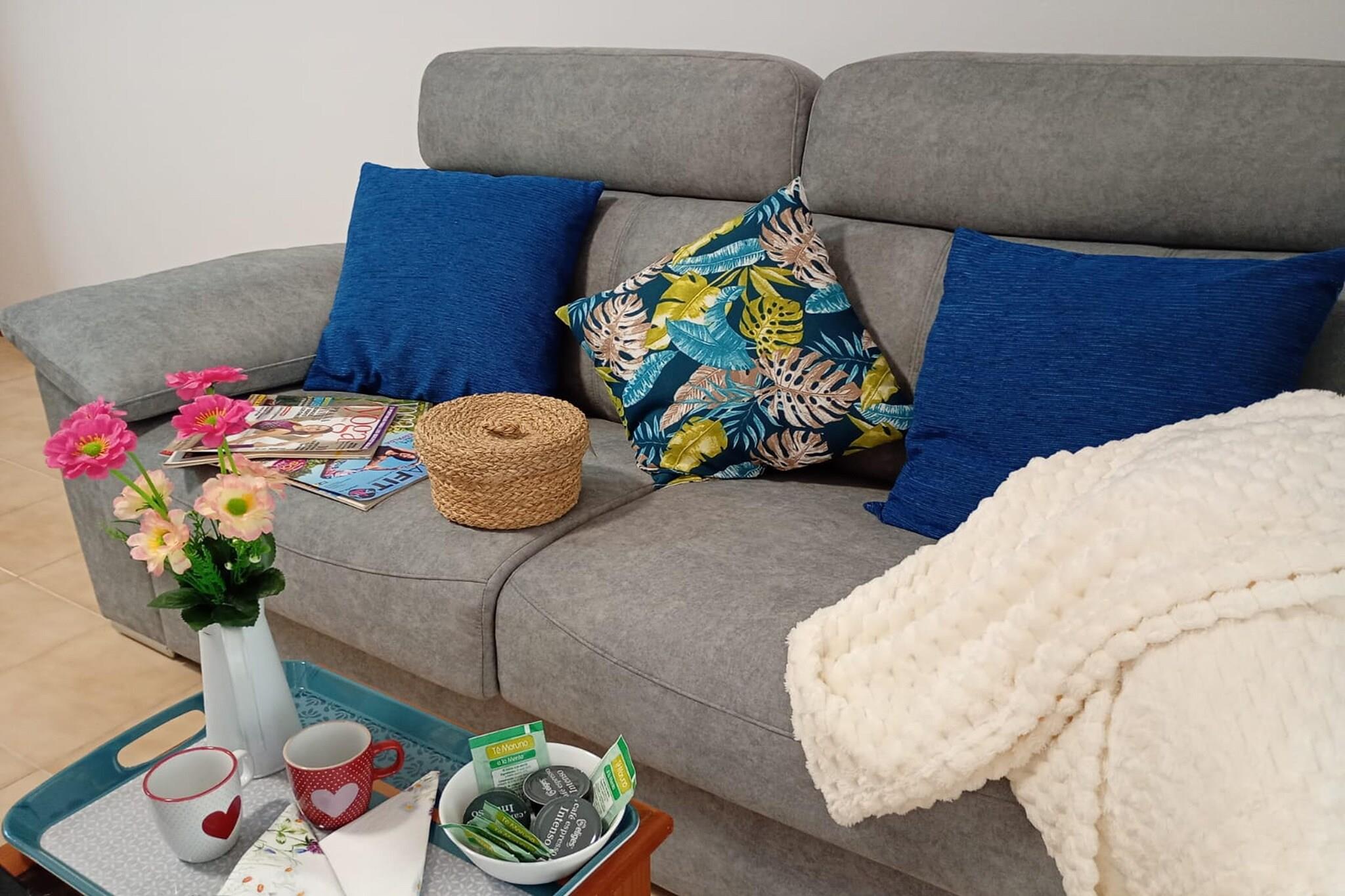Denne innbydende ferieleiligheten ligger langs den varme og solfylte kystlinjen i Vera på Spanias Almería-kyst, og tilbyr en avslappet base for en middelhavsferie for par, familier eller venner som ønsker å kombinere strandavslapning med kystutforskning. Innvendig tilbyr leiligheten en lys og praktisk stue designet for komfort og brukervennlighet. Stue-/soverom-/spisestueområdet har komfortable sitteplasser og en TV, som gir et hyggelig sted å slappe av etter en dag utendørs, et spisebord og en enkel sovesofa. Et fullt utstyrt kjøkken lar gjestene enkelt tilberede måltider, enten det er en lett frokost før du drar ut eller en avslappet middag om kvelden. Soveplassen inkluderer et komfortabelt soverom med to enkeltsenger, mens et moderne bad sikrer hverdagslig bekvemmelighet. Klimaanlegg og Wi-Fi bidrar til å holde leiligheten kjølig og tilkoblet gjennom hele oppholdet. Gå ut for å nyte leilighetens hyggelige private terrasse, som er et innbydende sted for morgenkaffe, og en bar på stedet for kveldsdrinker mens du nyter den milde kystbrisen. Gjestene har tilgang til et felles svømmebasseng, perfekt for avkjøling på varme ettermiddager under den andalusiske solen. Parkering er også tilgjengelig, noe som gjør det enkelt å utforske området rundt med bil. Vera Playas sandstrender ligger bare et kort stykke unna og er perfekte for bading, soling og spaserturer langs strandpromenaden med kafeer og restauranter. Nærliggende Garrucha tilbyr en livlig marina og fersk sjømat, mens den sjarmerende hvitkalkede landsbyen Mojácar inviterer til naturskjønne dagsturer fylt med utsikt, kultur og andalusisk sjarm.