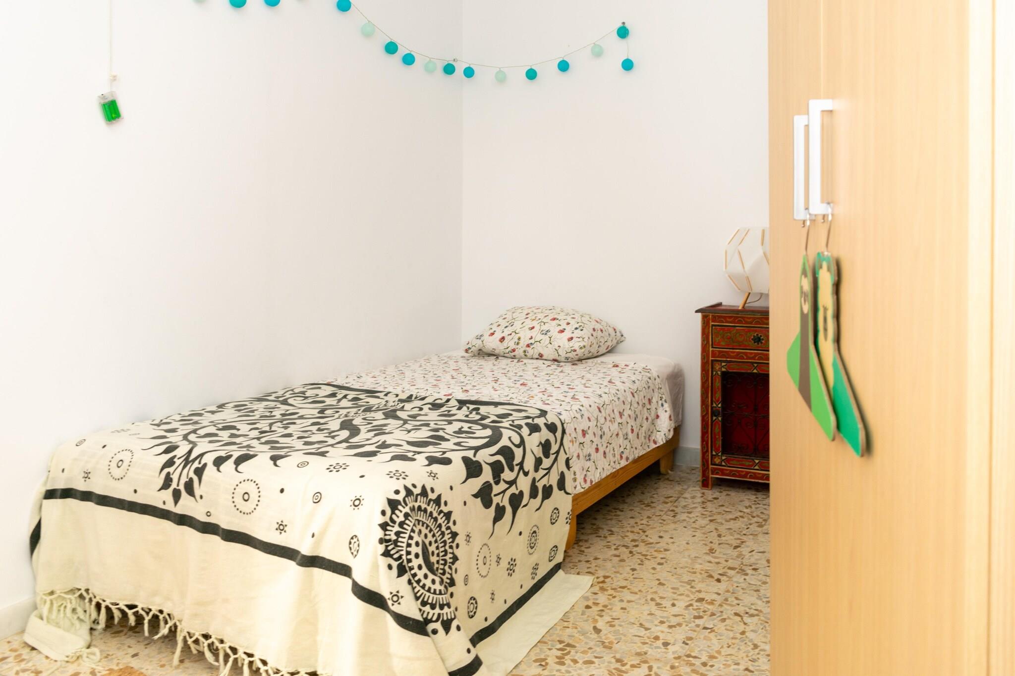Velkommen til vårt sjarmerende feriehus i Cadiz, som tilbyr det perfekte tilfluktsstedet for opptil fem gjester midt i det fantastiske kystlandskapet i Sør-Spania. Denne innbydende eiendommen ligger bare noen øyeblikk unna havet, og gir en idyllisk setting for en minneverdig ferie fylt med avslapning og eventyr. Dette feriehuset ligger nær sjøen, og tilbyr enkel tilgang til de vakre strendene og den pittoreske kysten av Cadiz. Tilbring dagene med å slikke sol, svøm i det krystallklare vannet, eller utforsk de sjarmerende kystlandsbyene langs kysten. Når du går inn, vil du bli møtt av en koselig stue, omtenksomt innredet med en komfortabel enkel sovesofa, perfekt for å innkvartere en ekstra gjest. Slapp av og slapp av foran TV-en etter en dag med utforskning eller samles rundt spisestuen bord for felles måltider og livlige samtaler.Det åpne kjøkkenet er utstyrt med alt nødvendig for å tilberede deilige hjemmelagde retter, noe som gir gjestene muligheten til å spise i løpet av oppholdet.