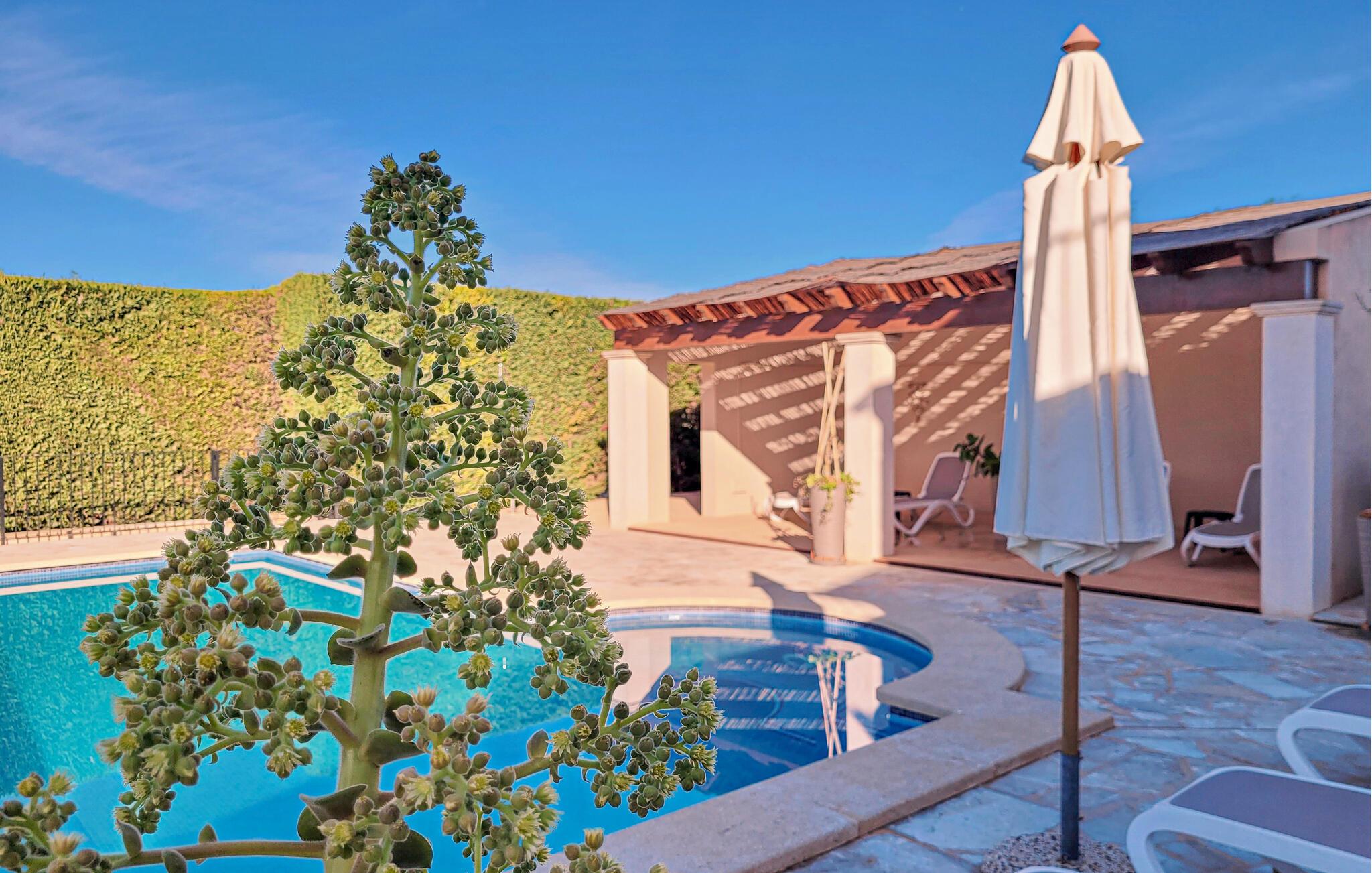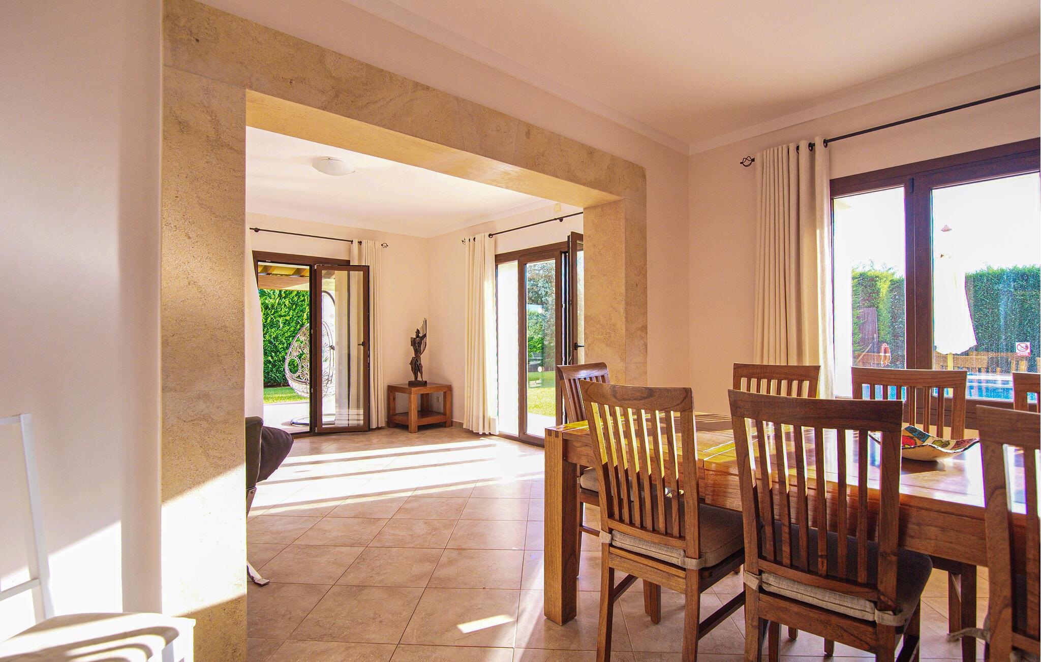 Den romslige boligen byr på god plass til lek og avslapning. Nyt solen på terrassene, og bassenget byr på behagelige forfriskninger på varme dager.