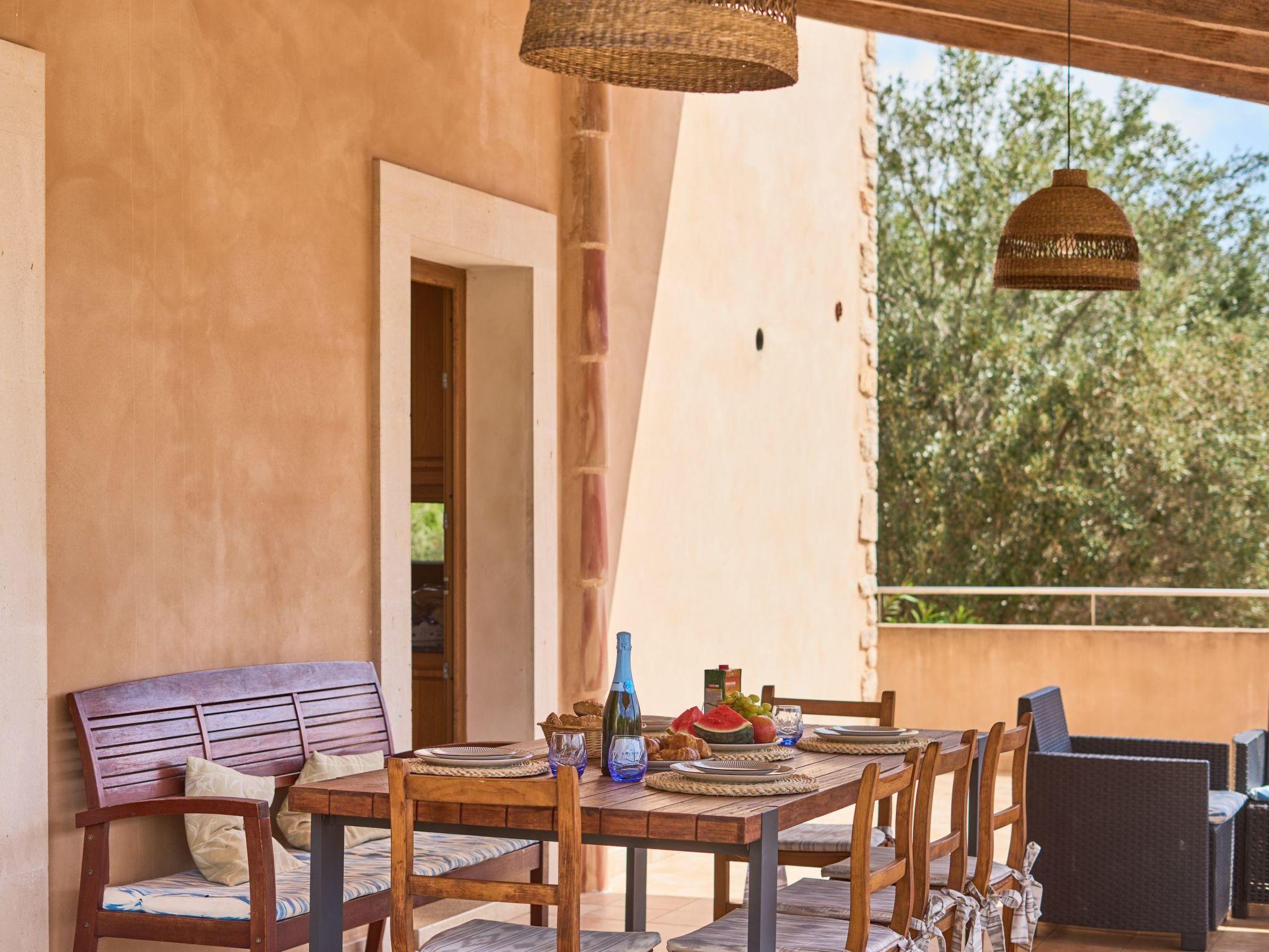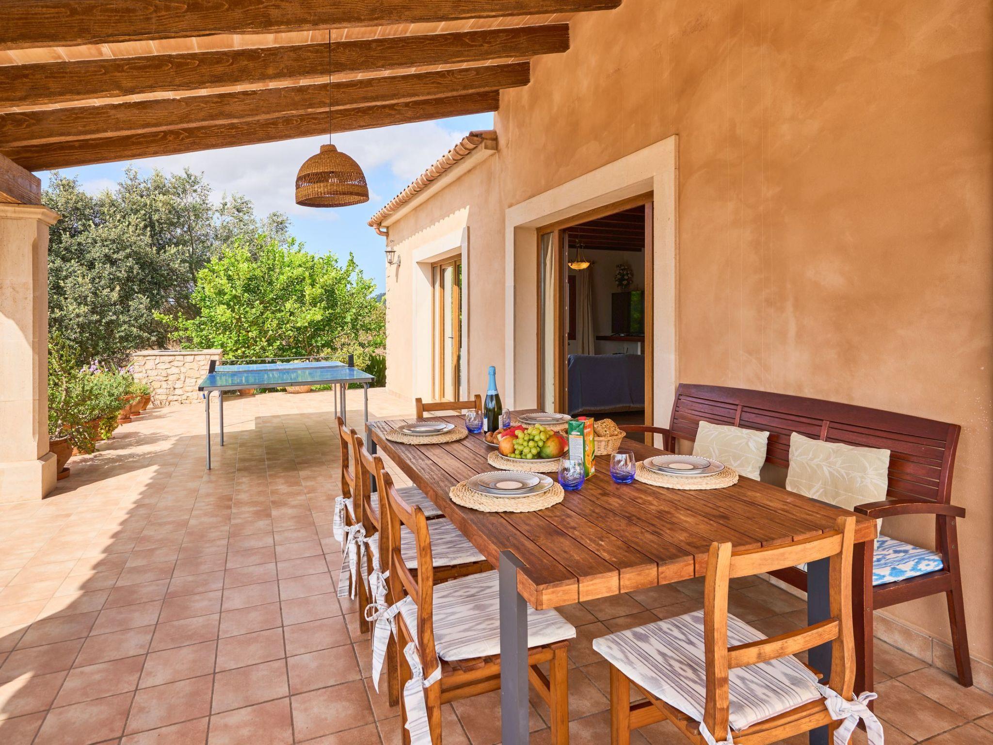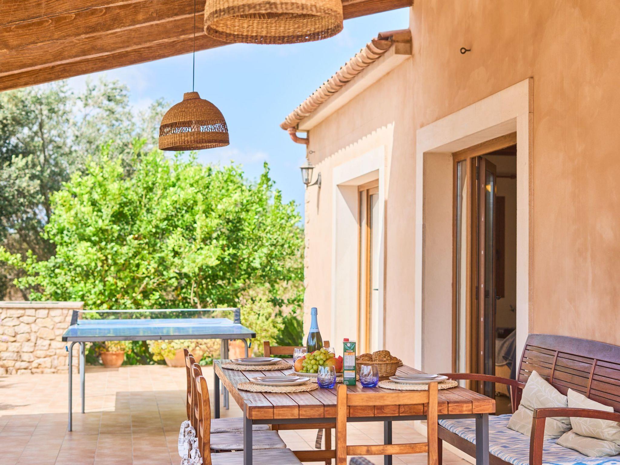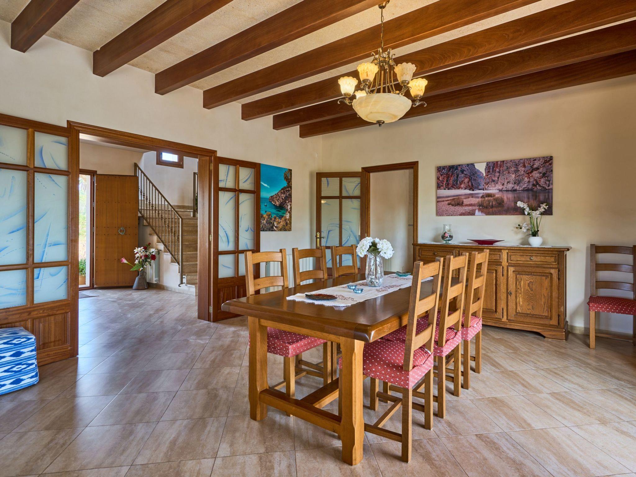This beautiful 4-bedroom country house is perfectly integrated into the wonderful, peaceful surroundings, surrounded by pine trees and shrubs and only a short drive from the coast with its sandy coves, caves, shops and other leisure activities. The two-storey house offers bright, airy rooms with modern furnishings and charming traditional decorative elements. You can unwind and relax in the outdoor area. Room with some fitness equipment.