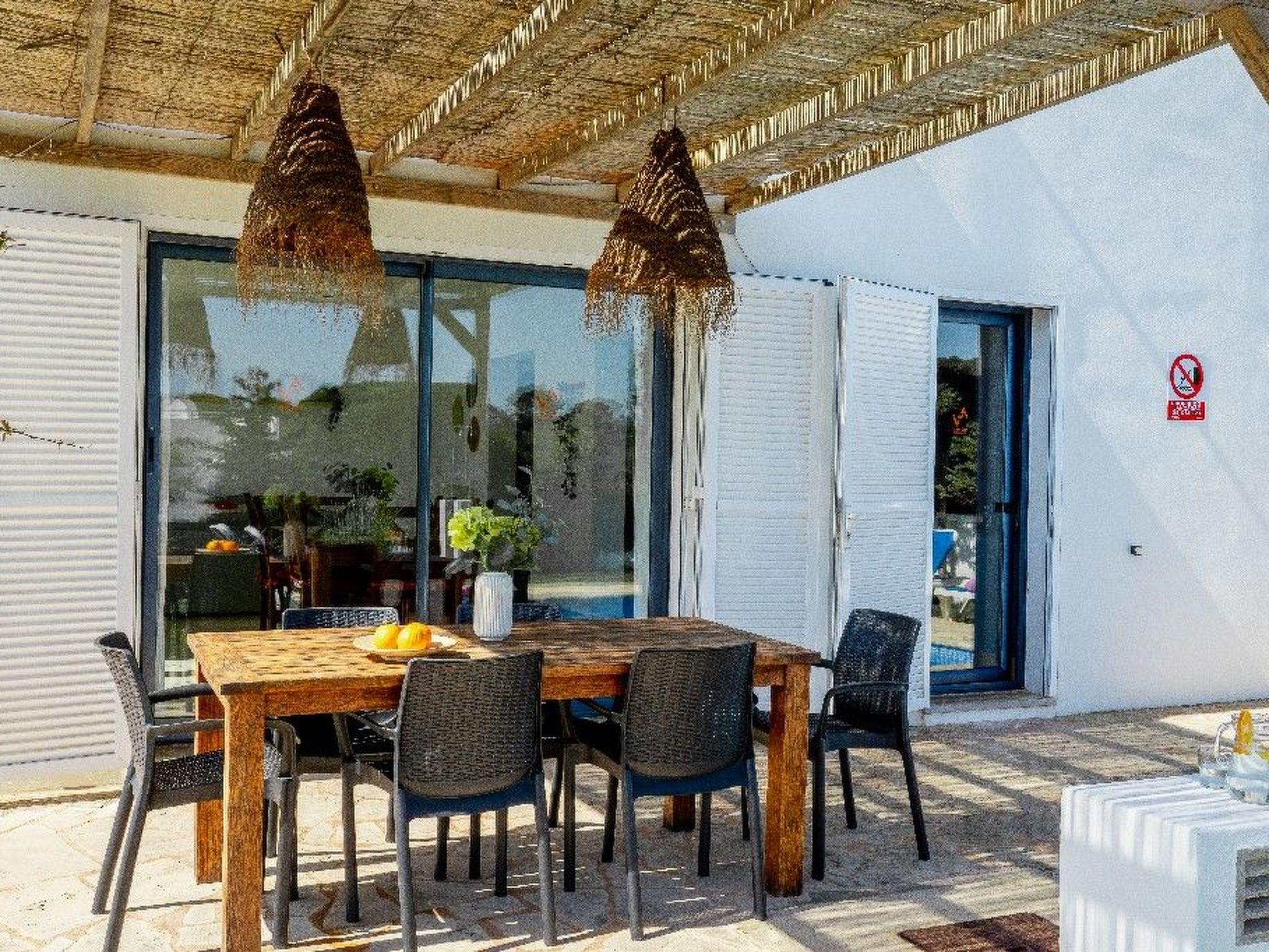 The outdoor area of the villa is a true oasis of relaxation. The private garden with its manicured lawn and the attractive pool invite you to linger and sunbathe. An outdoor shower and comfortable sun loungers are available, while the brick-built barbecue area and table tennis table provide hours of fun. The terrace is the ideal place to enjoy meals together outdoors and experience the peaceful atmosphere.