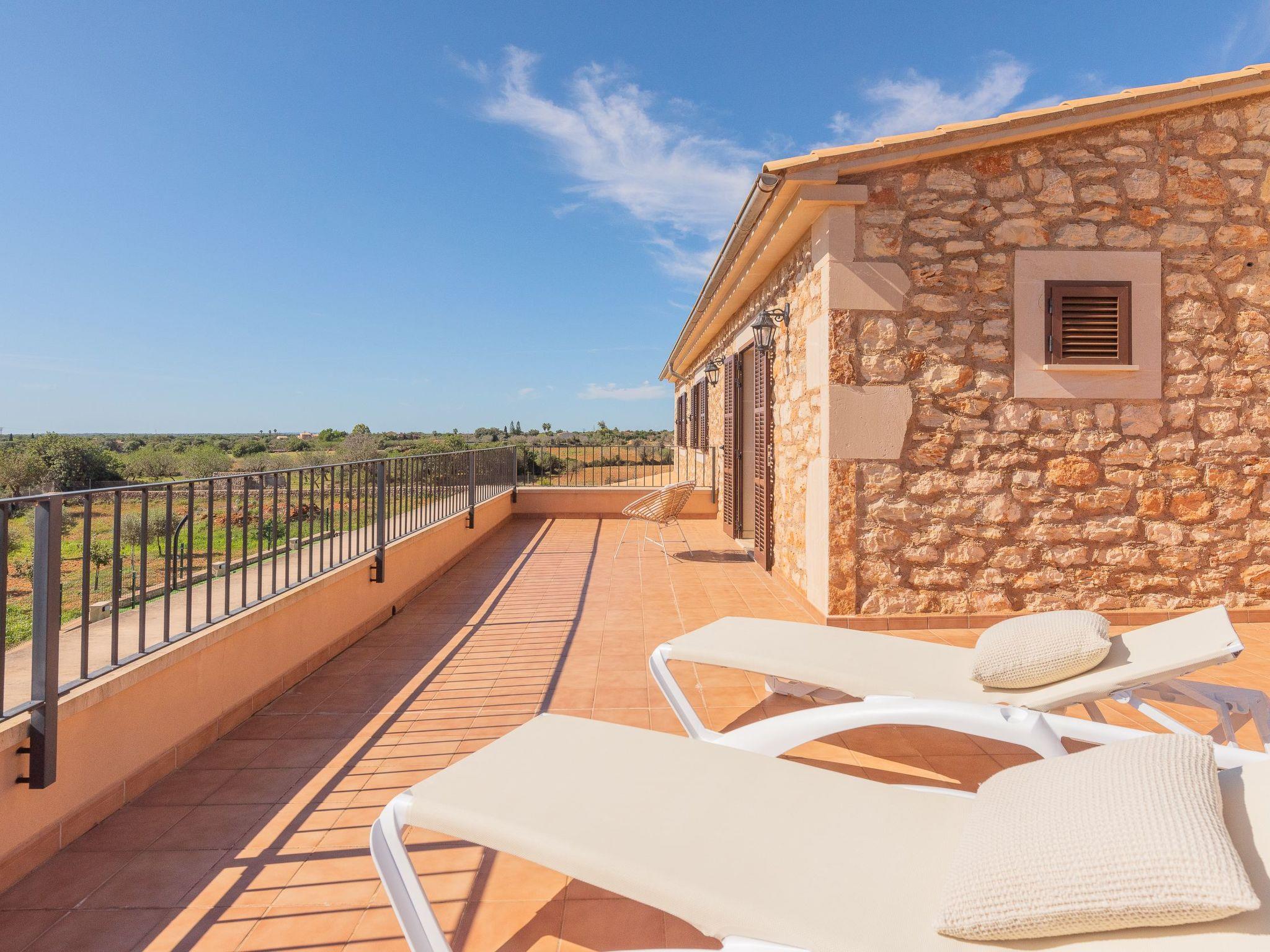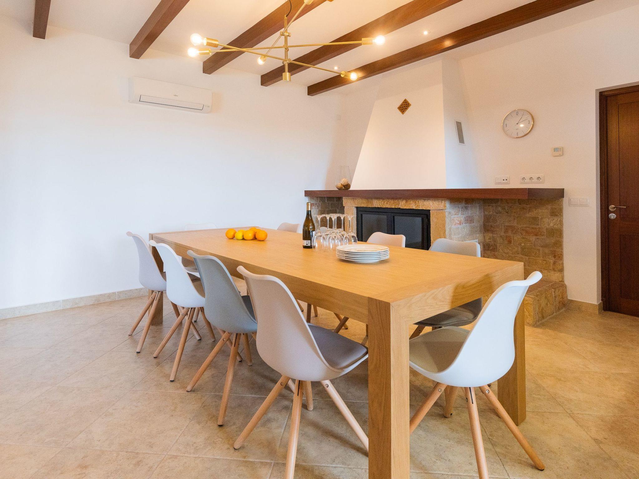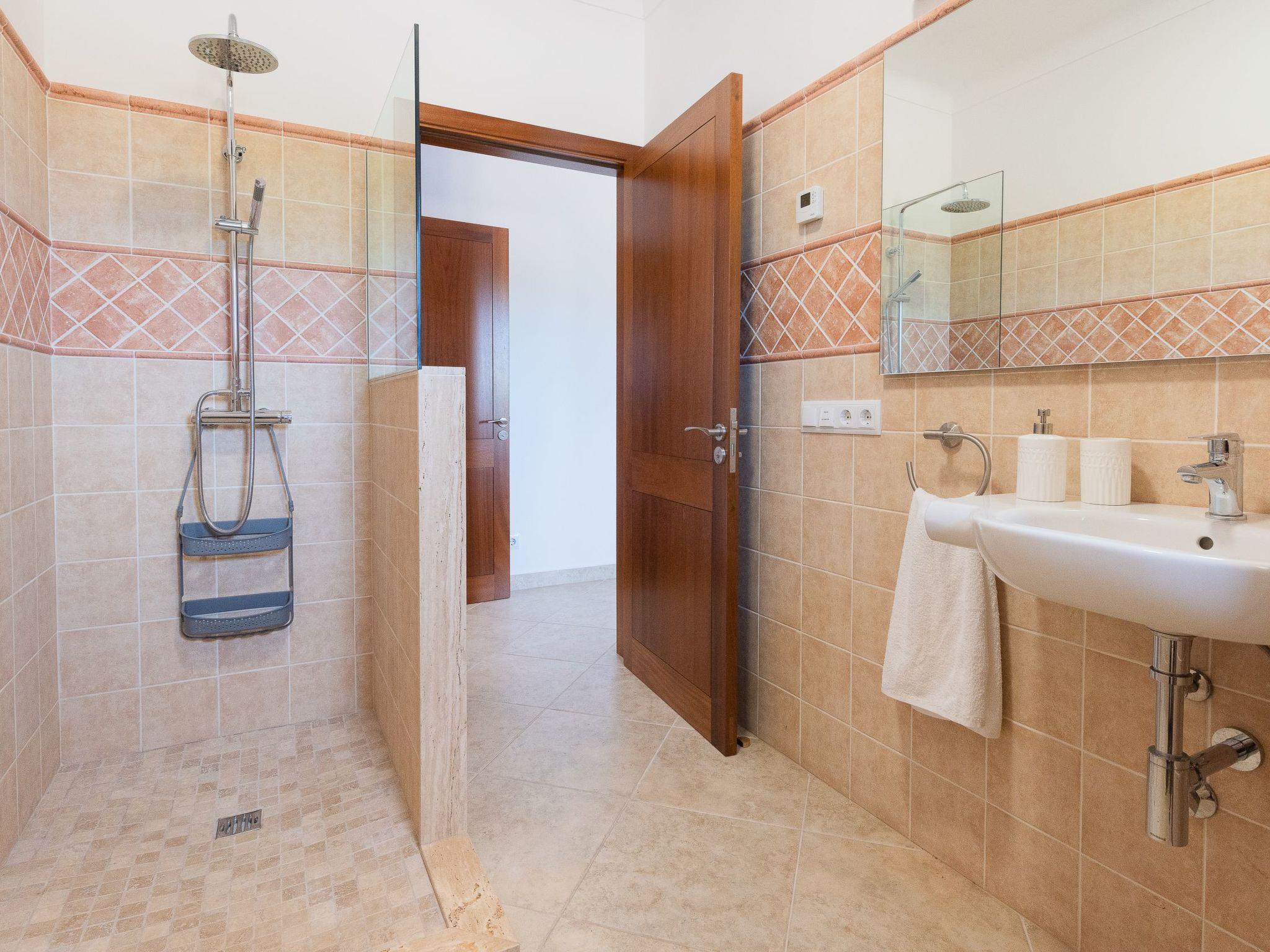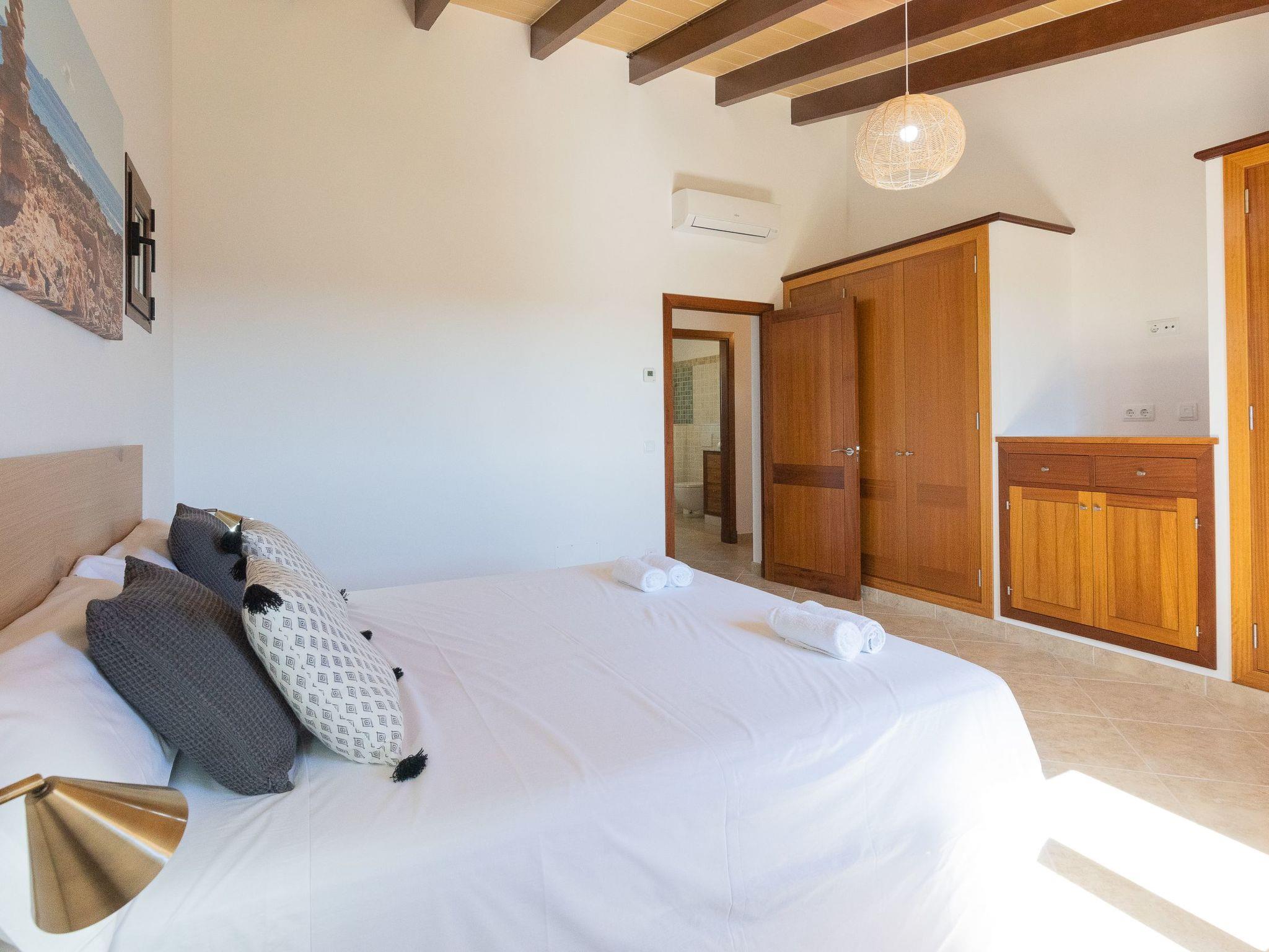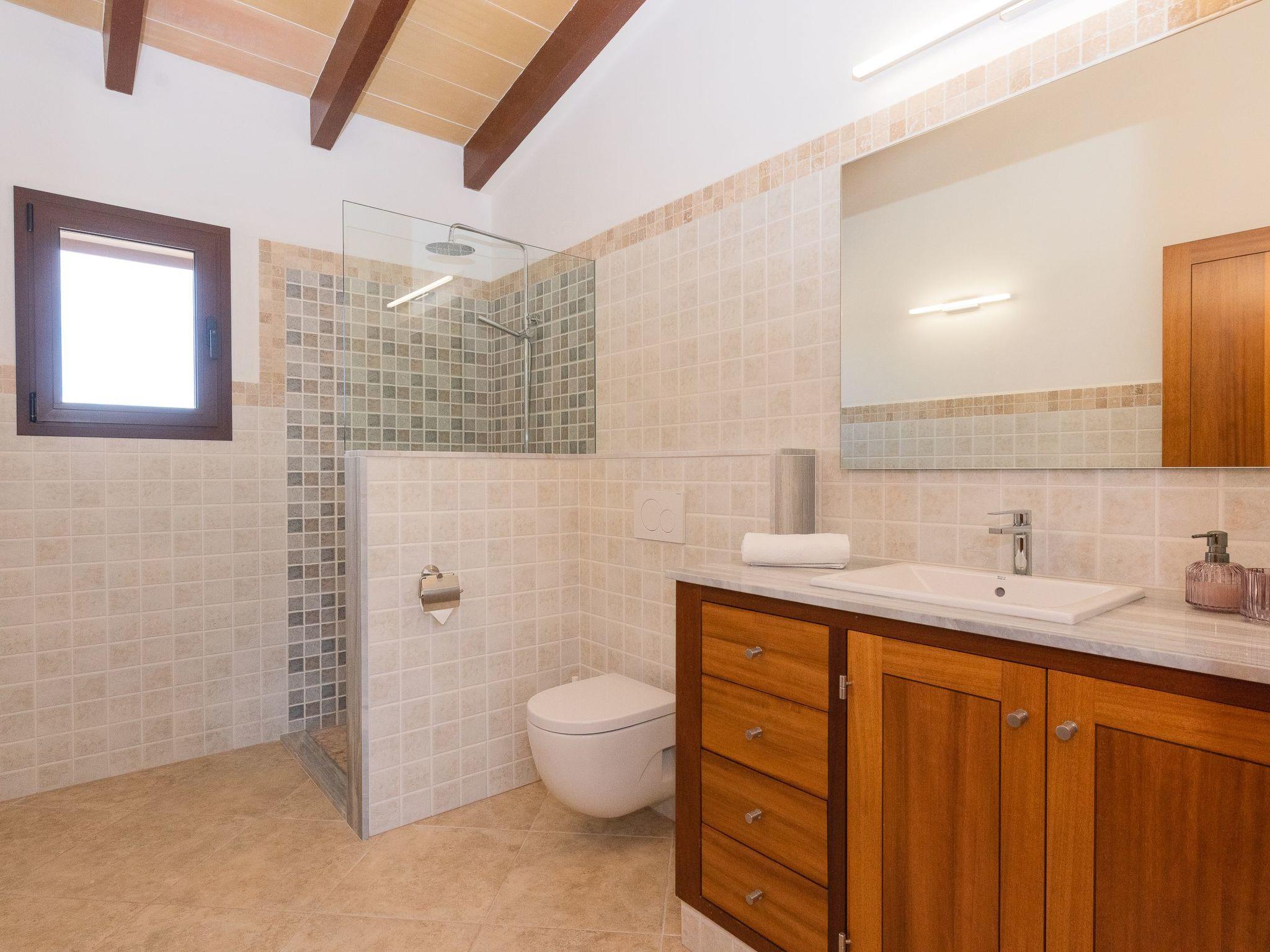 Dreamlike noble finca on two floors. On the ground floor is the living room and the open-plan kitchen with dining area. The furnishings are chic but not overloaded. There is also a bedroom with double bed and en suite shower room on the ground floor. There is also a utility room and a guest toilet. 4 further bedrooms are located on the first floor. There are two bedrooms with double beds and two bedrooms with two single beds each. These rooms share 2 bathrooms, one with separate bath and shower, the other with shower. Large sun terrace with views of the rural surroundings. Very nice outdoor area. Large long veranda with dining table. Lawned garden, with pool safely fenced for small children and artificial grass area. The magnificent pool has Roman steps. There is also an outdoor shower, outdoor barbecue and garden shed with outdoor bathroom. Air conditioning hot / cold with limited and fixed usage times of 10 hours/day.