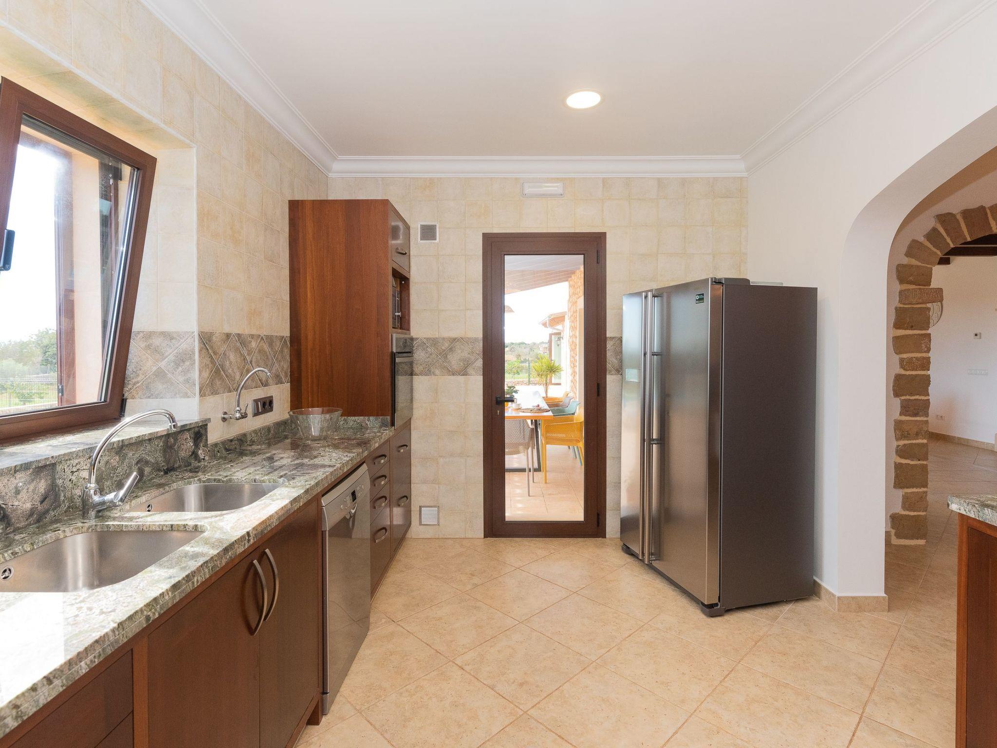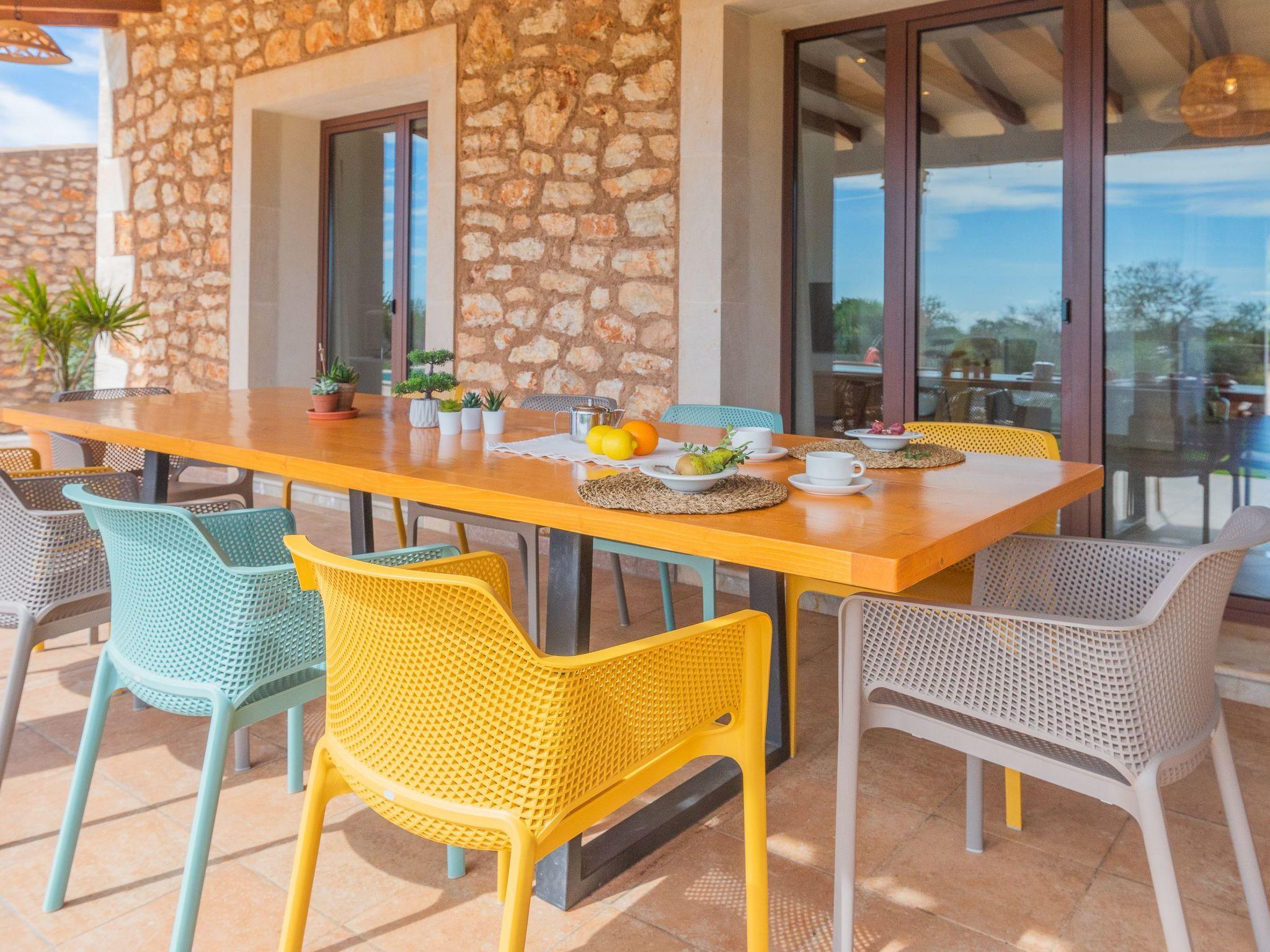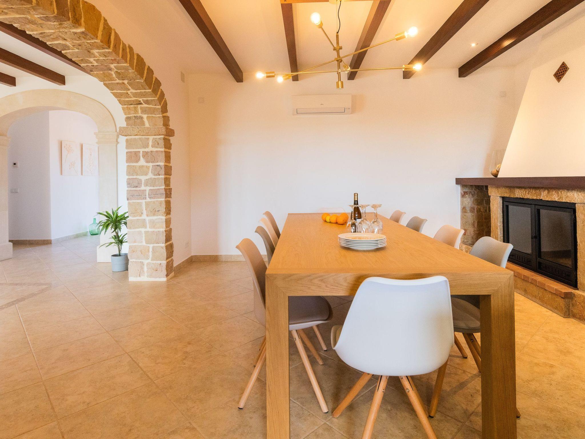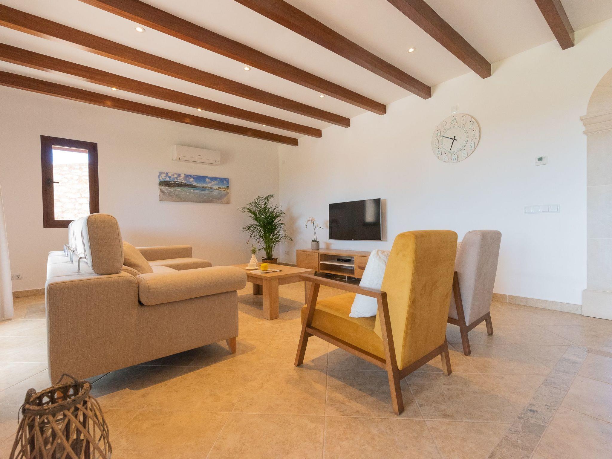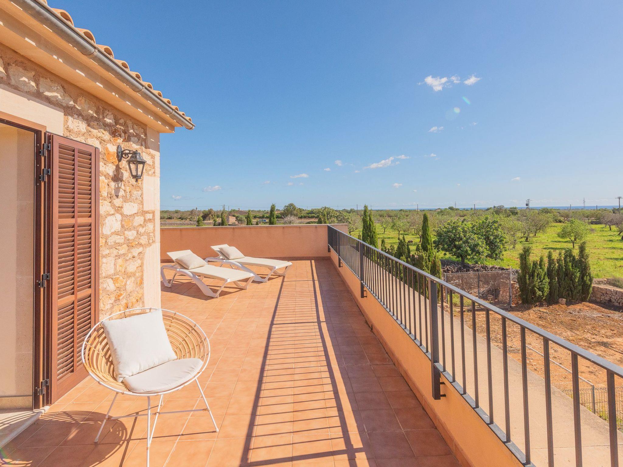 Dreamlike noble finca on two floors. On the ground floor is the living room and the open-plan kitchen with dining area. The furnishings are chic but not overloaded. There is also a bedroom with double bed and en suite shower room on the ground floor. There is also a utility room and a guest toilet. 4 further bedrooms are located on the first floor. There are two bedrooms with double beds and two bedrooms with two single beds each. These rooms share 2 bathrooms, one with separate bath and shower, the other with shower. Large sun terrace with views of the rural surroundings. Very nice outdoor area. Large long veranda with dining table. Lawned garden, with pool safely fenced for small children and artificial grass area. The magnificent pool has Roman steps. There is also an outdoor shower, outdoor barbecue and garden shed with outdoor bathroom. Air conditioning hot / cold with limited and fixed usage times of 10 hours/day.