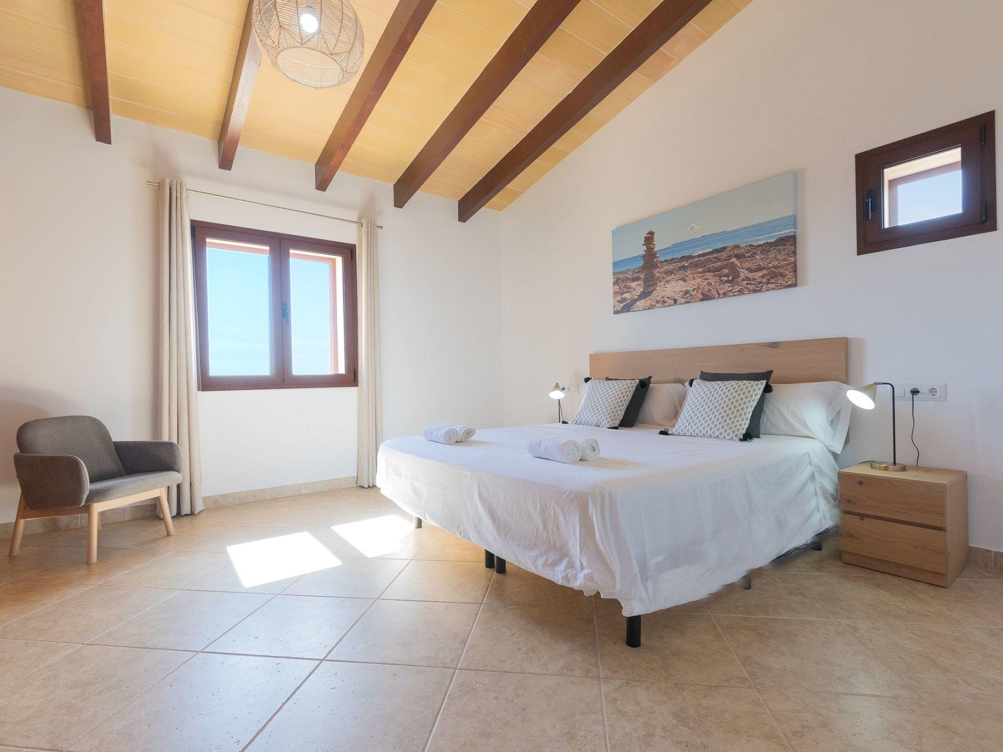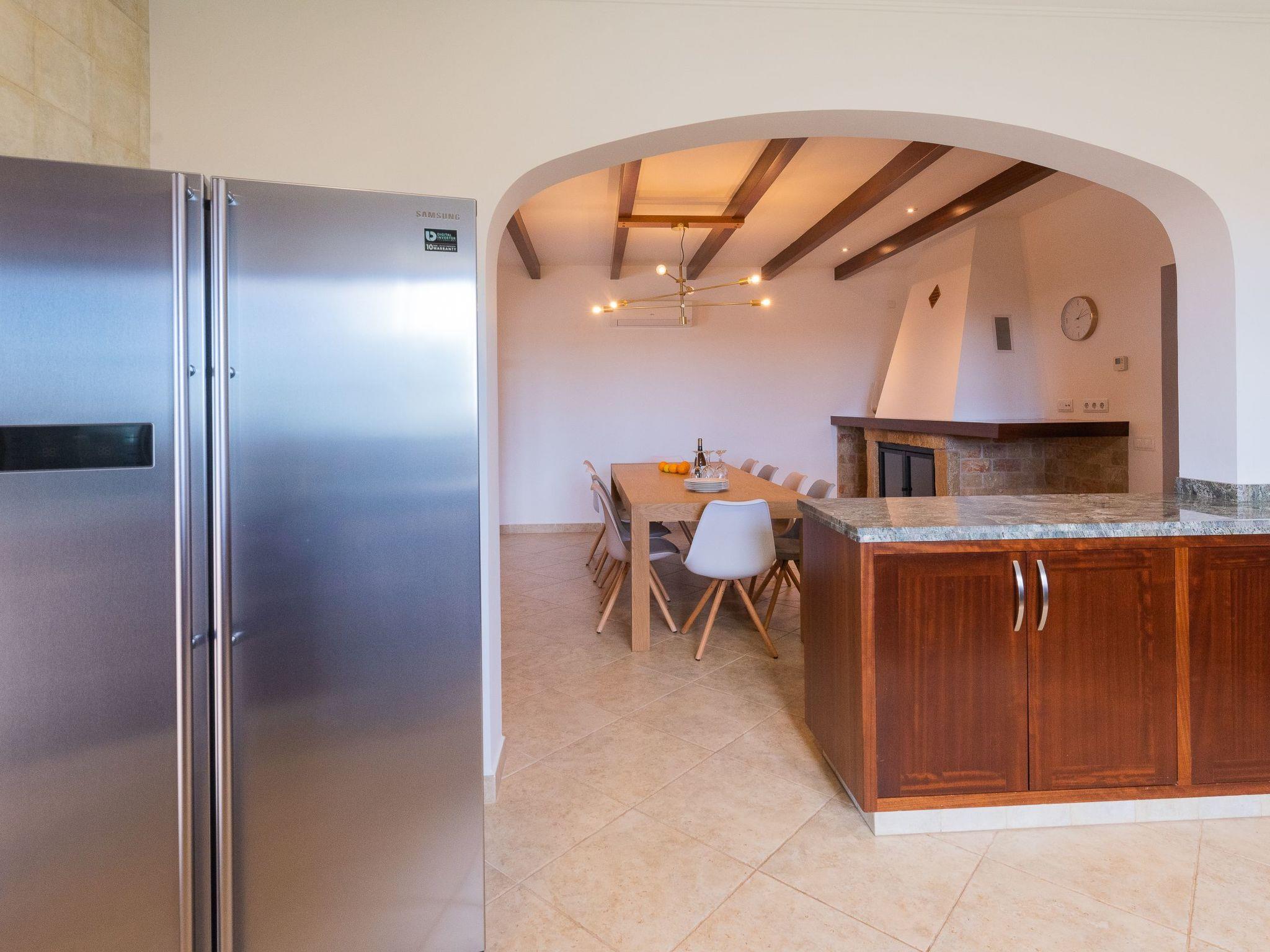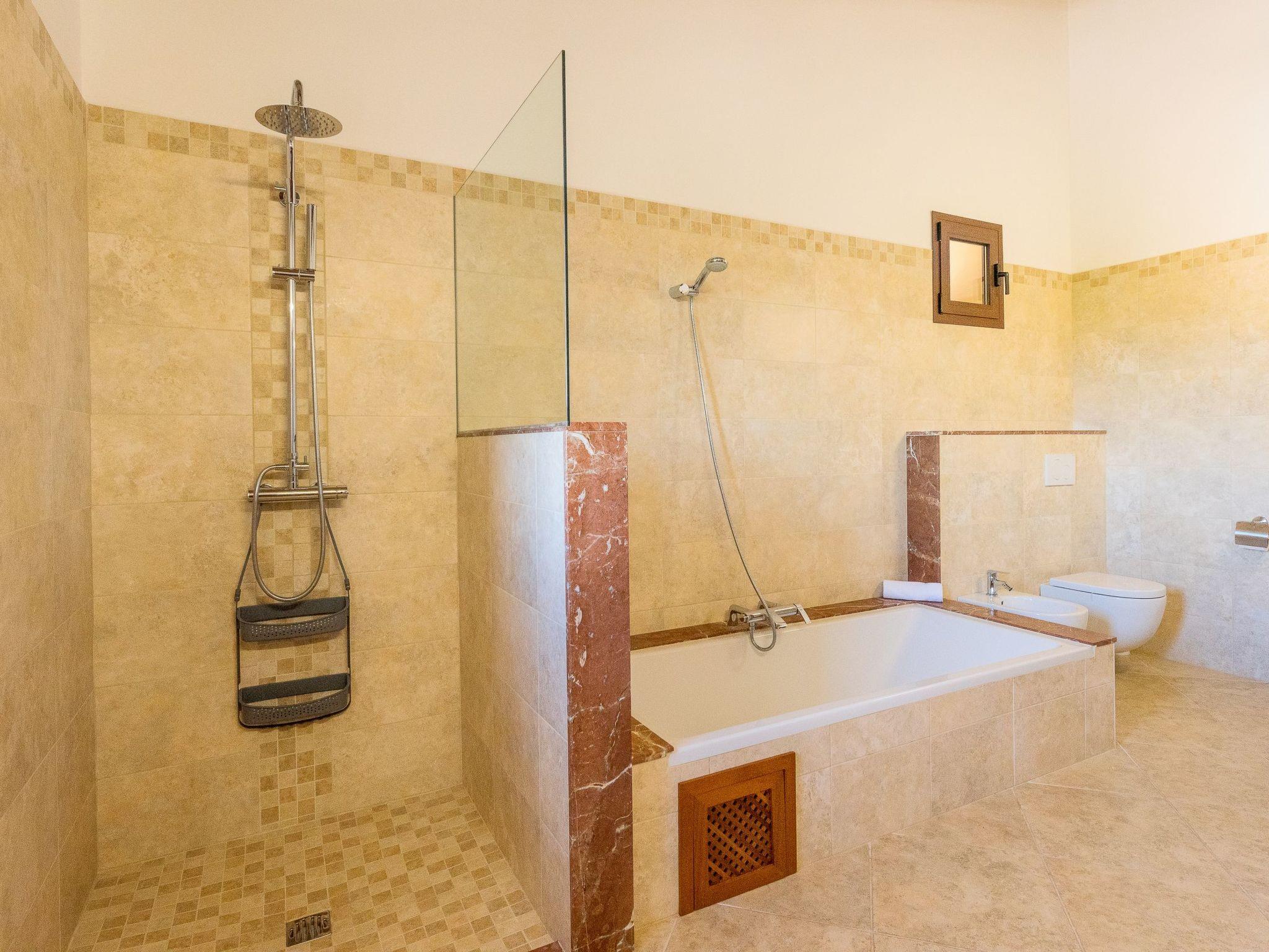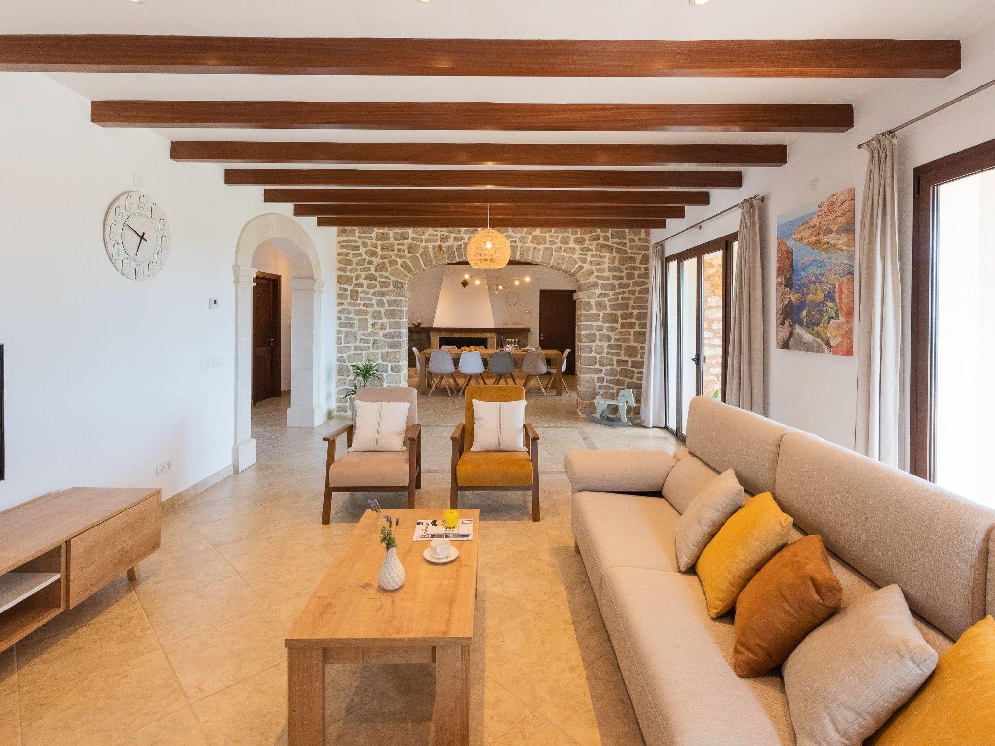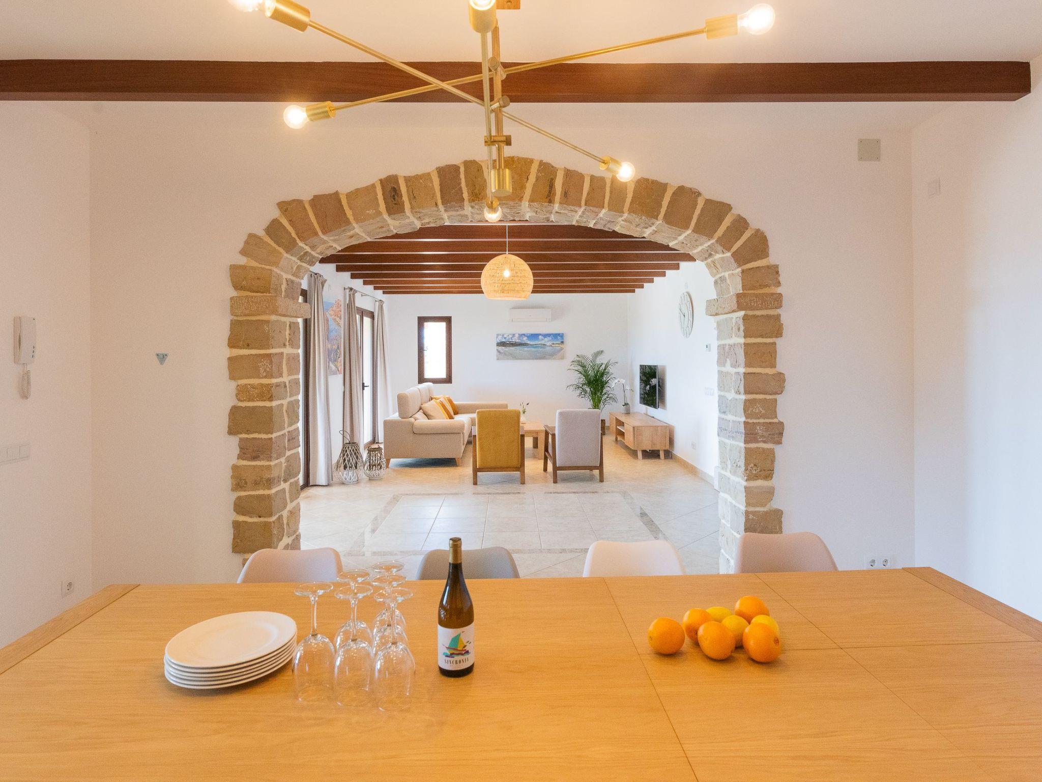 Dreamlike noble finca on two floors. On the ground floor is the living room and the open-plan kitchen with dining area. The furnishings are chic but not overloaded. There is also a bedroom with double bed and en suite shower room on the ground floor. There is also a utility room and a guest toilet. 4 further bedrooms are located on the first floor. There are two bedrooms with double beds and two bedrooms with two single beds each. These rooms share 2 bathrooms, one with separate bath and shower, the other with shower. Large sun terrace with views of the rural surroundings. Very nice outdoor area. Large long veranda with dining table. Lawned garden, with pool safely fenced for small children and artificial grass area. The magnificent pool has Roman steps. There is also an outdoor shower, outdoor barbecue and garden shed with outdoor bathroom. Air conditioning hot / cold with limited and fixed usage times of 10 hours/day.