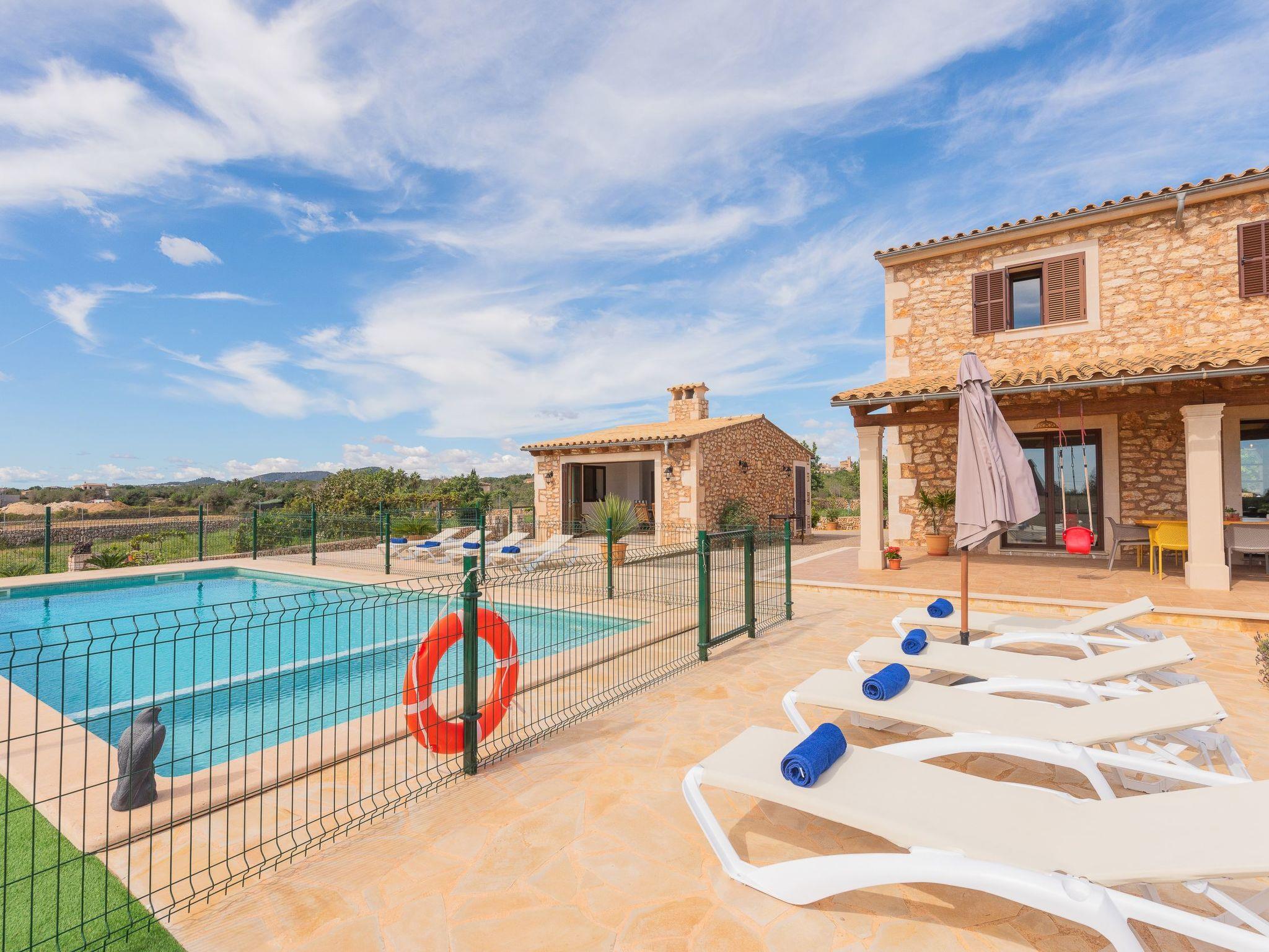 Large country house for 10 people, for rent near Cala D'Or, Mallorca. The house has a wonderful outdoor area with a fenced pool; ideal for families with small children. The house is not far from the beaches, restaurants and shops in Cala D'Or.