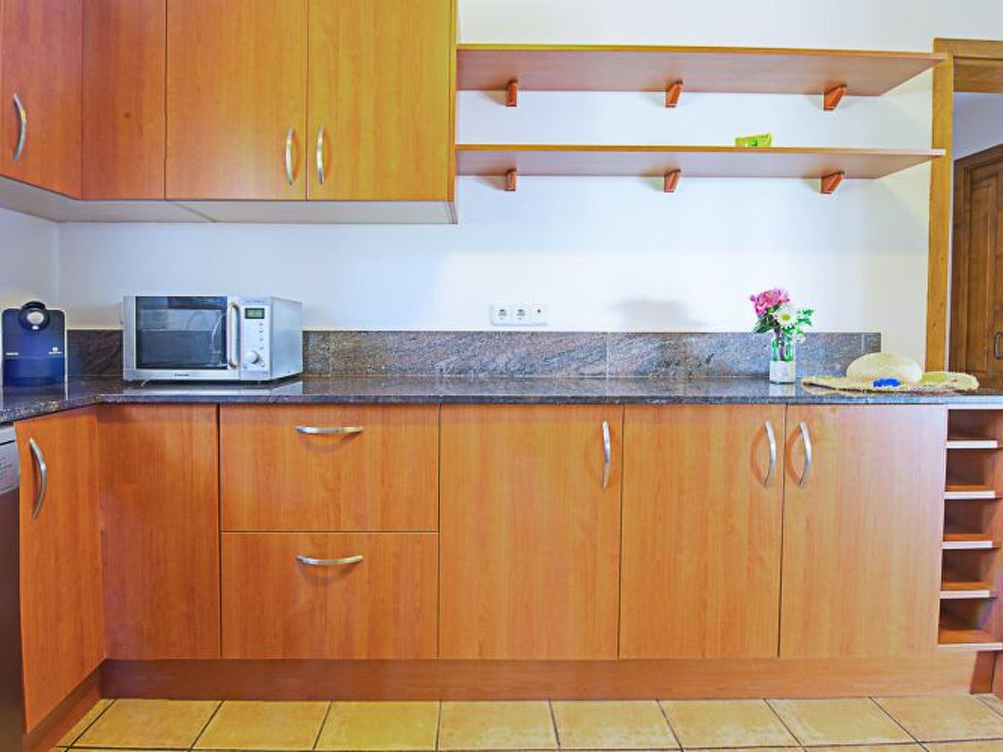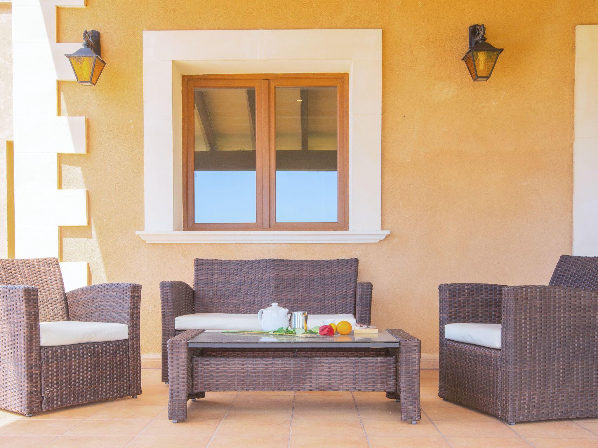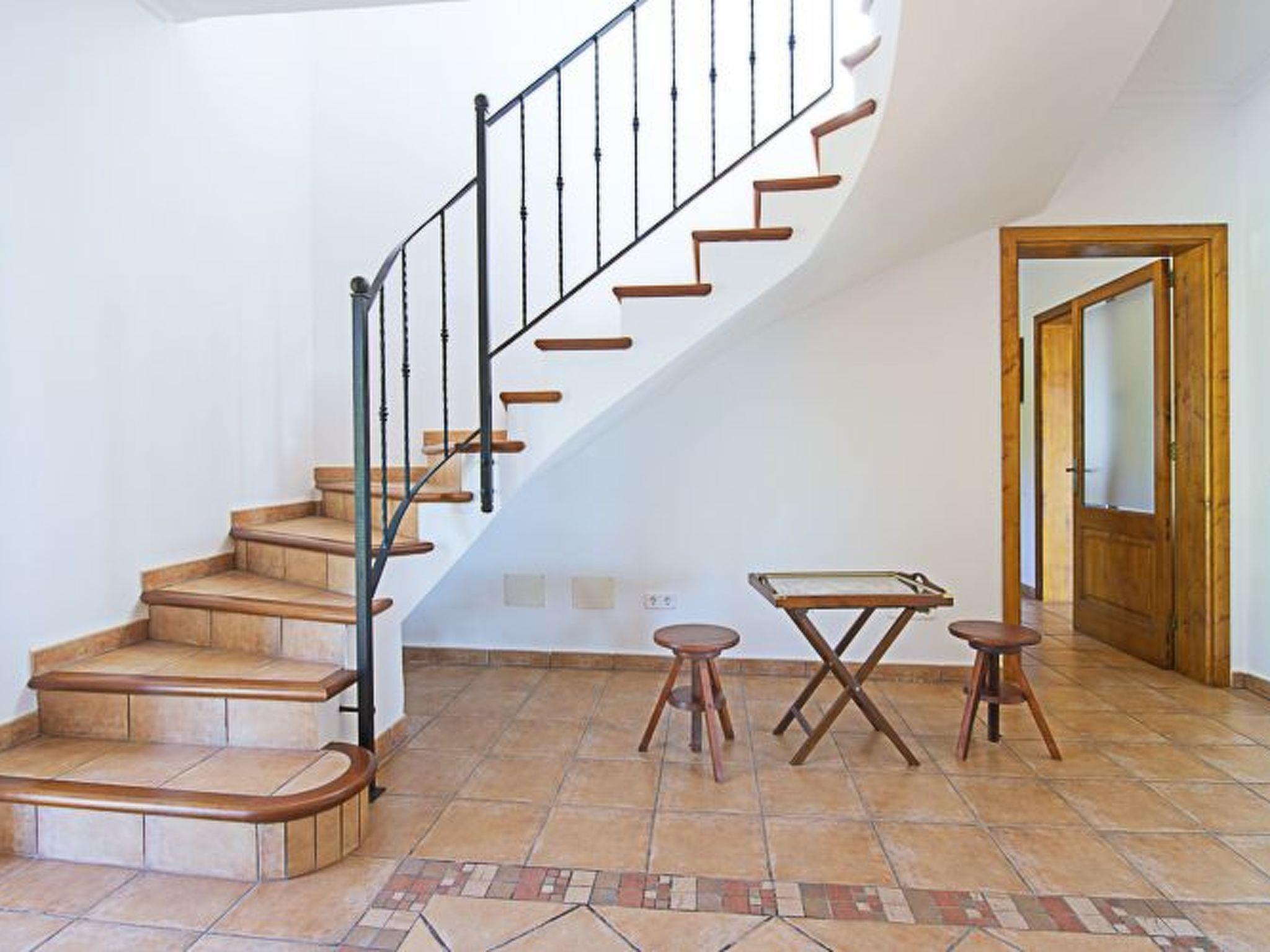 Spacious finca distributed over two levels. On the ground floor is the open-plan living/dining room with access to the porch and the pool and with views of the coast in the distance. The kitchen is spacious and has a pantry. Utility room next to the kitchen. There is also a bedroom with two single beds and a separate shower room on the ground floor. On the first floor there are three further bedrooms, all with en-suite bathrooms. A small bedroom with double bed and compact shower room, a second bedroom with twin beds and shower room and the master bedroom with double bed, dressing room, bathroom with whirlpool bath, separate shower and access to a terrace with views of the coast in the distance.