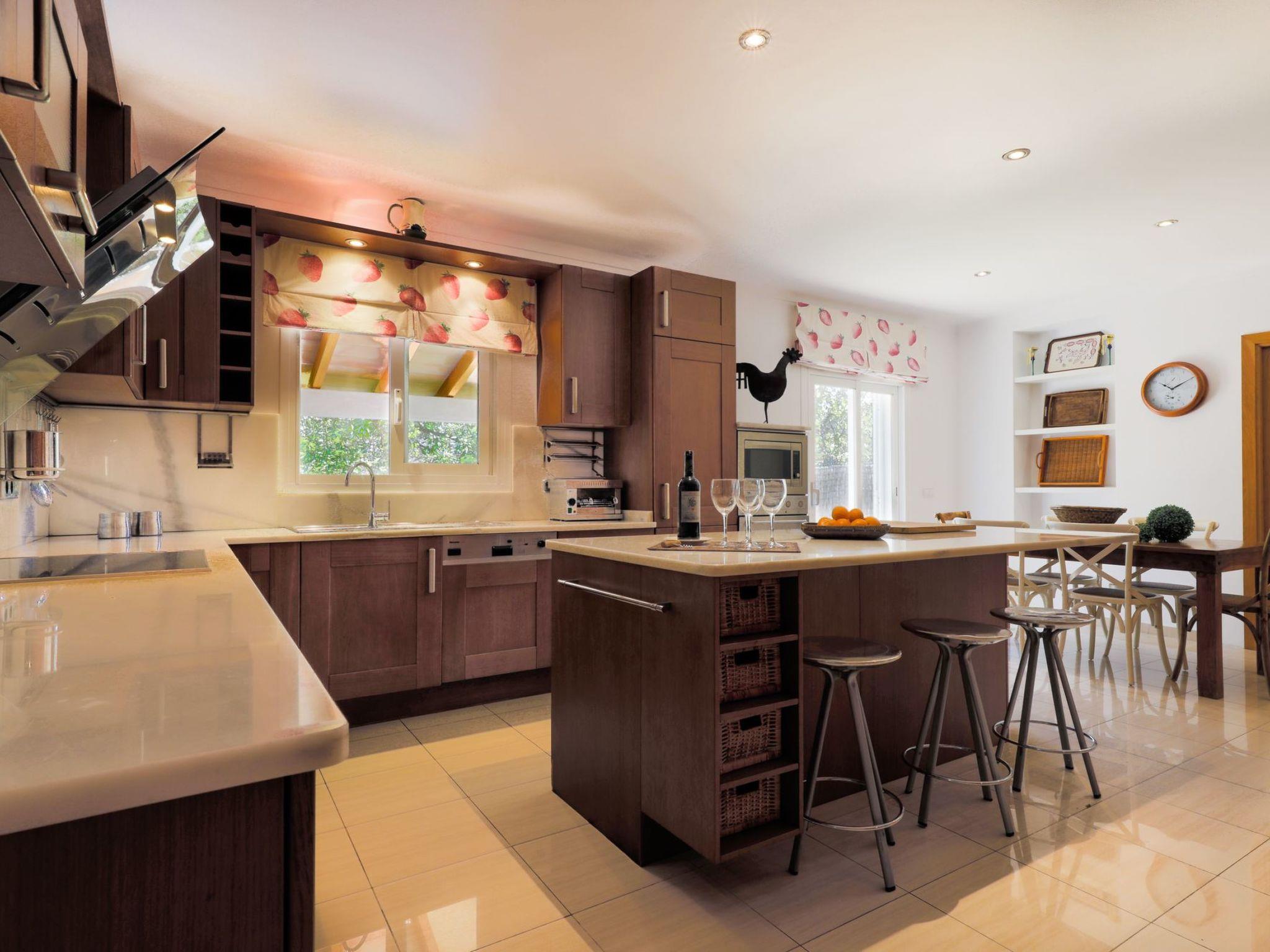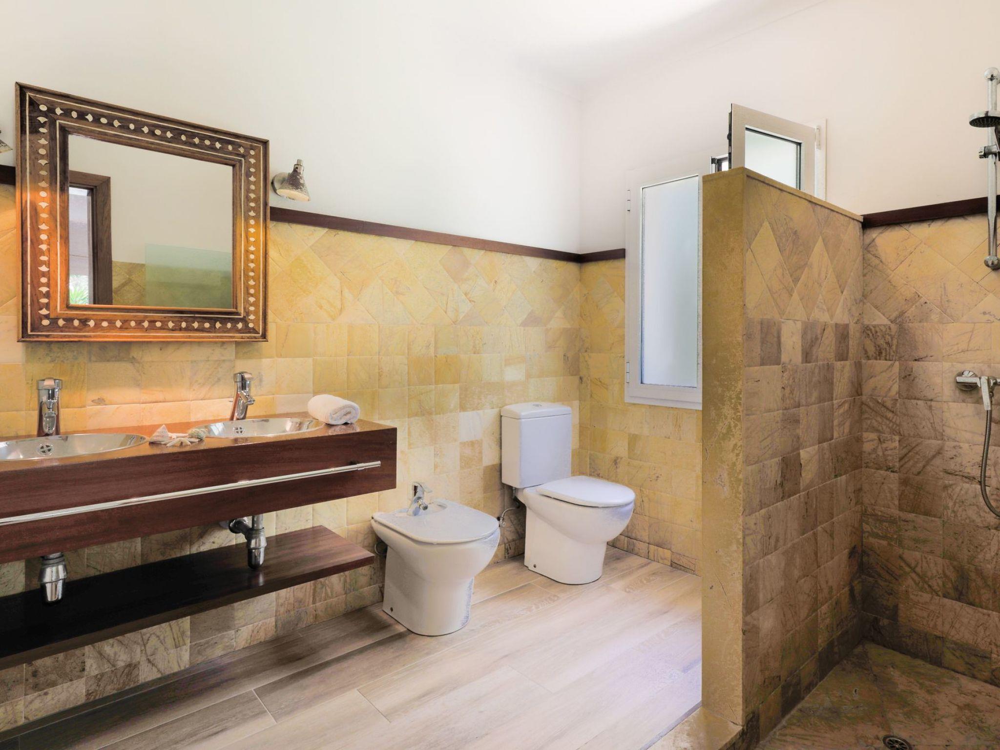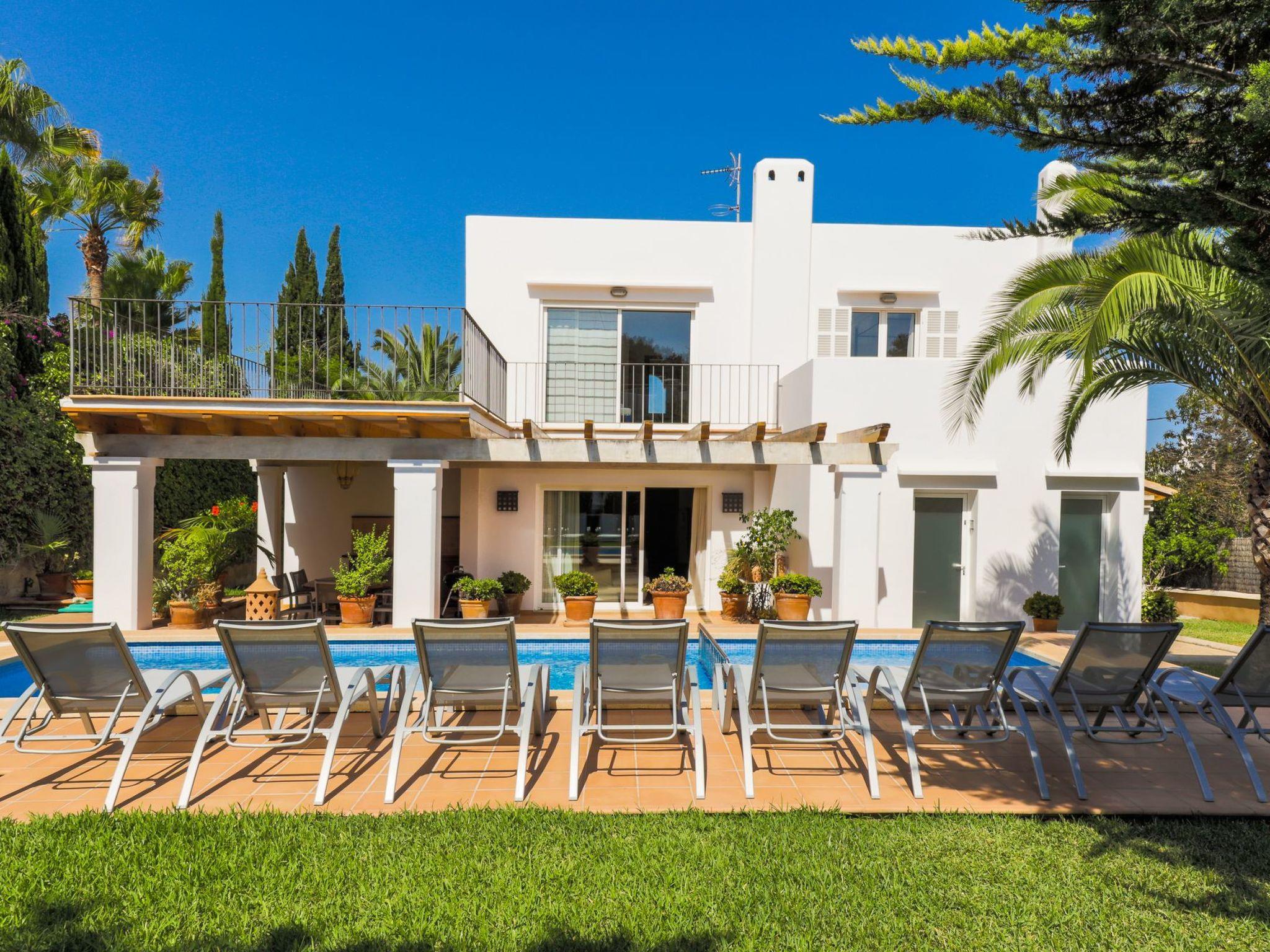 Villa Marques de Comillas 12 is a beautiful, detached villa over 2 floors. Large windows give the rooms plenty of natural light and an airy ambience. The ground floor has high-quality wooden laminate flooring and all rooms have both air conditioning and central heating. The ground floor has a spacious lounge with comfortable seating, TV, DVD and music system. Large sliding glass doors lead out onto the covered terrace, which is furnished with beautiful wooden outdoor furniture. The spacious dining room is very tastefully furnished, with a staircase connecting the ground floor with the upper floor. The modern kitchen with a large cooking island is equipped to a high standard and also offers ample seating. There is also a utility room with washing machine, tumble dryer, iron and ironing board as well as a guest toilet. A bedroom with two single beds as well as a full bathroom (shower and bath) en suite and access to the outside area complete the ground floor. Upstairs is the spacious master bedroom with two single beds joined together as a double bed, a dressing room and a fantastic en suite bathroom with a large Jacuzzi bath and a separate shower. The room has access to an outside terrace overlooking the garden and pool area. Furthermore, this floor offers another double bedroom with 2 single beds and one with a double bed. Both bedrooms have en suite bathrooms with a Jacuzzi bath and a small terrace.