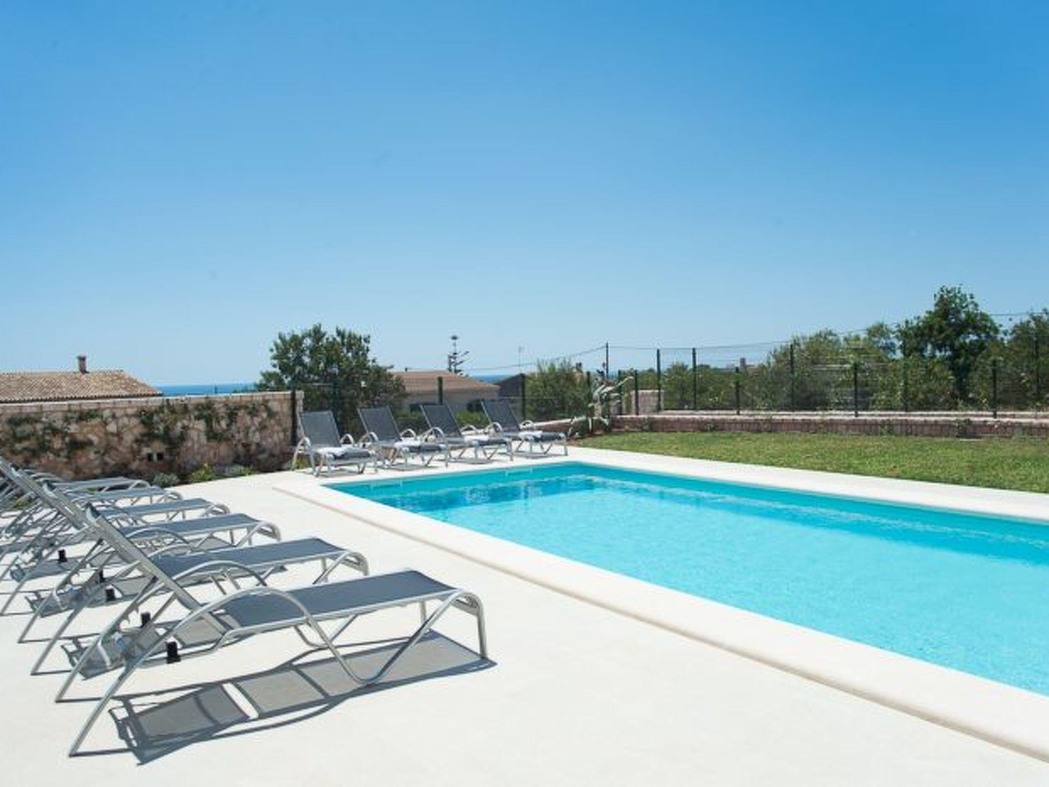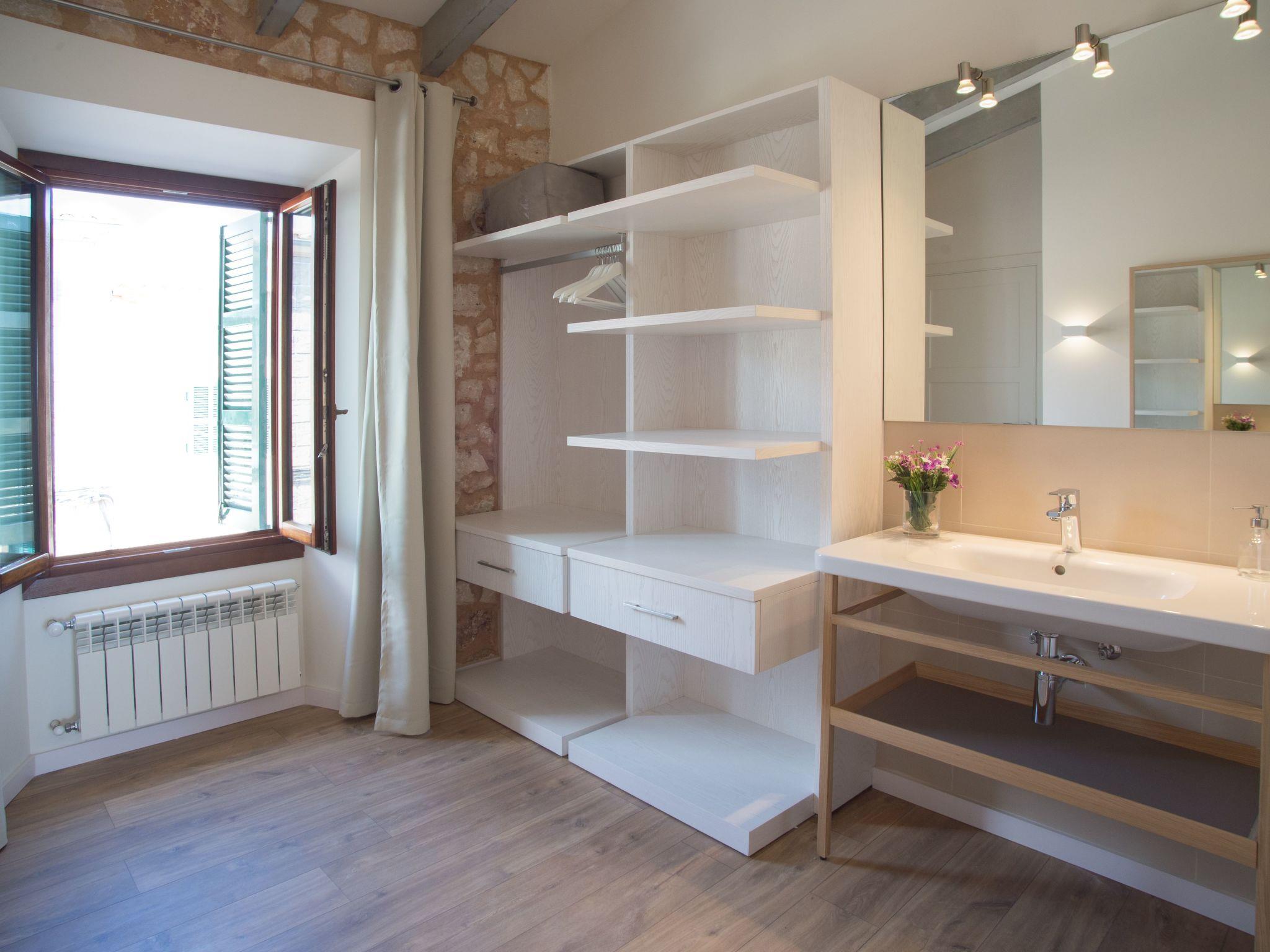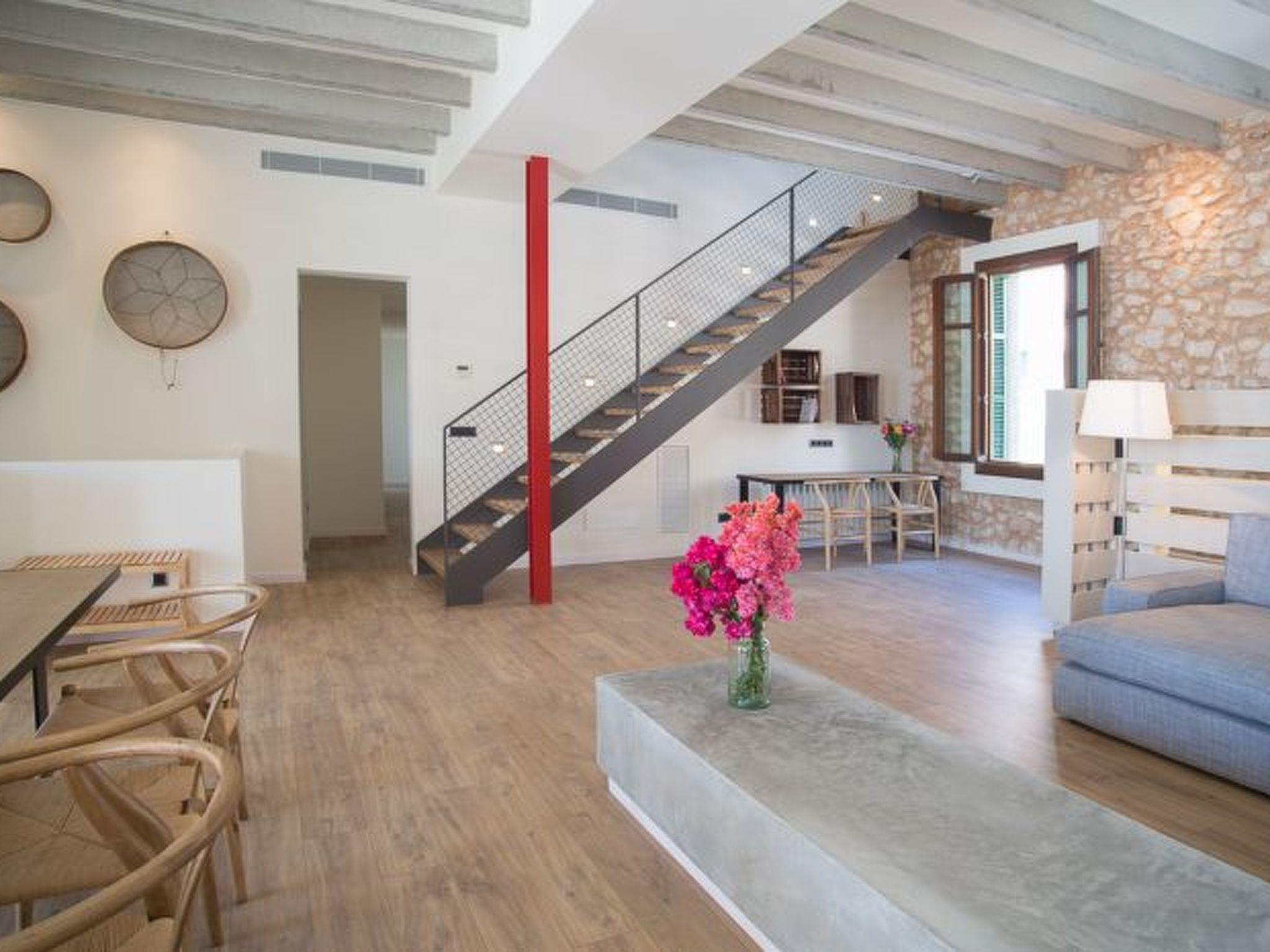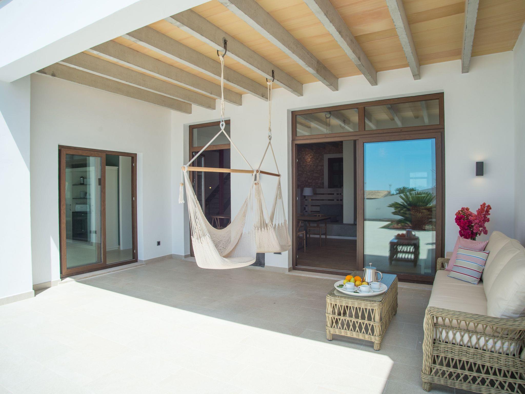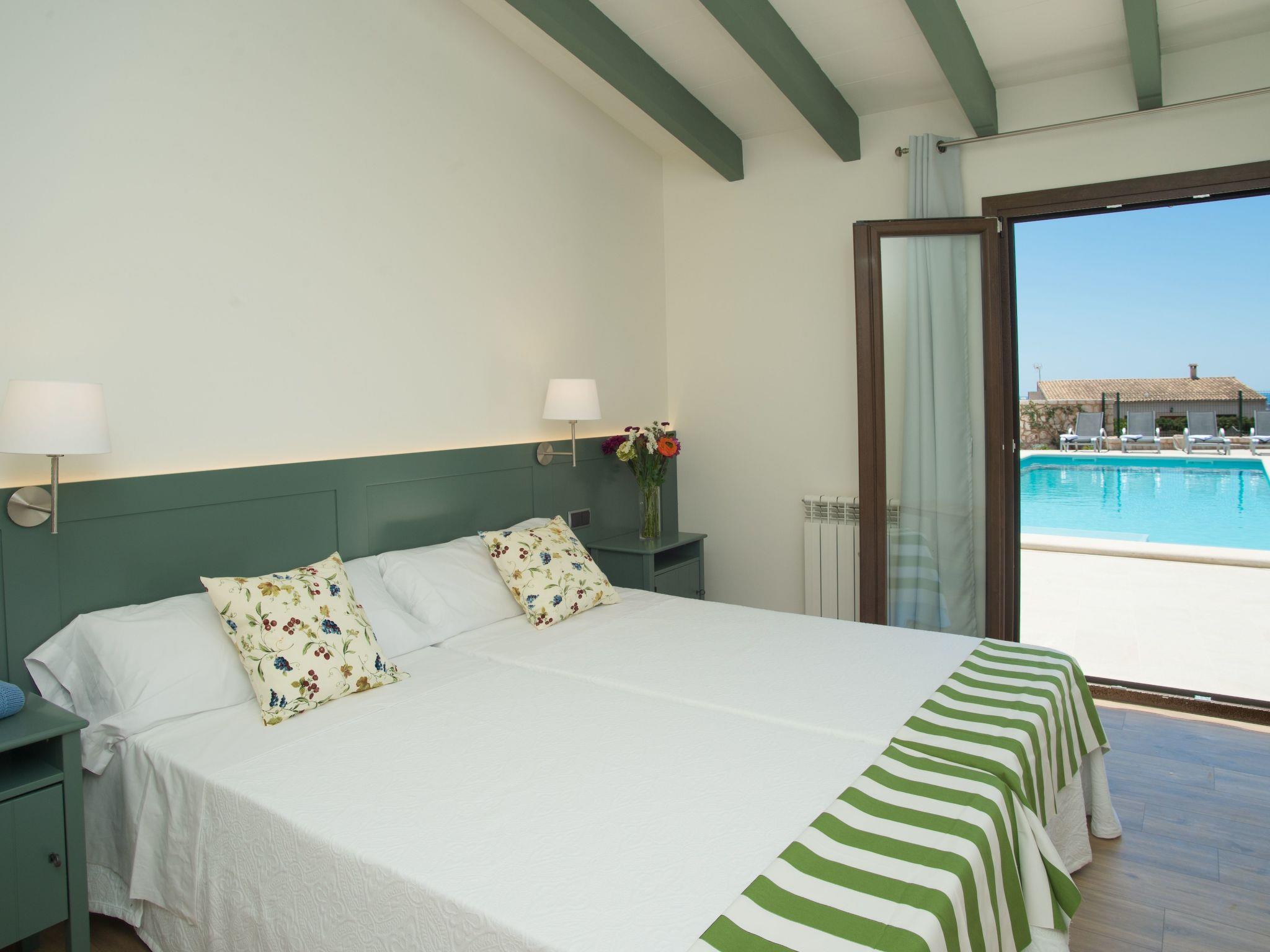 Ferrer de S'Horta is a spacious house, newly renovated and equipped to a high standard. Modern furniture and decoration are tastefully combined with high ceilings with exposed concrete beams and some walls clad with dry stone, giving the house a rustic ambience. The entrance is via the pool area. Sliding glass doors lead into the open, well-equipped, bright kitchen with cooking island. From here we reach the spacious, bright and open-plan living/dining area. Two areas have cosy sofas and a long wooden table invites you to enjoy meals together. Sliding glass doors lead out onto the terrace. Two bedrooms with access to the pool, each with 2 single beds and en suite shower rooms are located on the ground floor, which is completed by a guest toilet and service room. A staircase leads from the living/dining area to the first floor. Here there are three further bedrooms, each with two single beds and en suite shower room and access to a terrace with sun loungers and parasols, the perfect place to relax and enjoy the views of the countryside and the sea in the distance. Heating and air conditioning in the bedrooms with fixed hours of use from 21.00 h - 09.00 h.