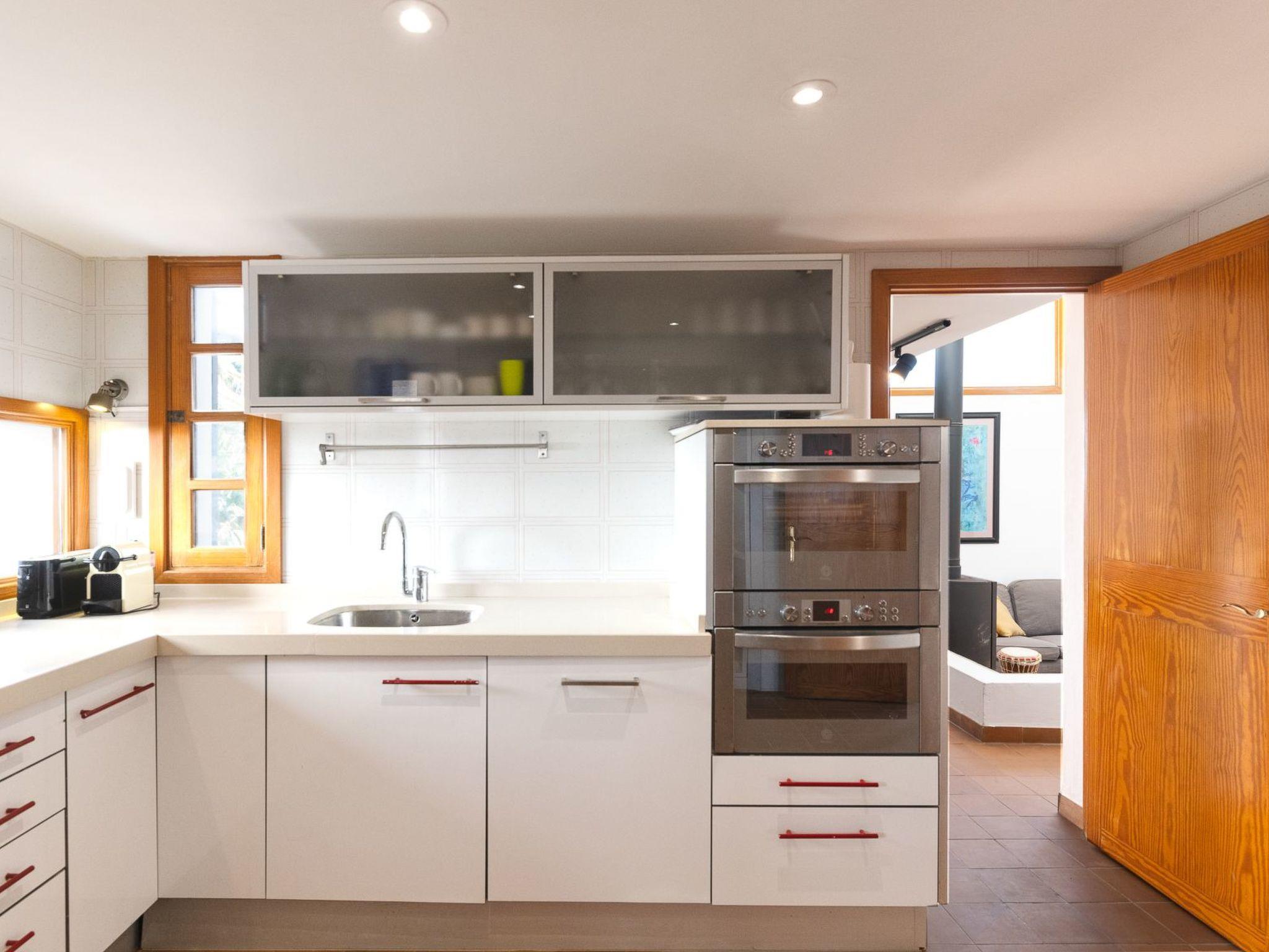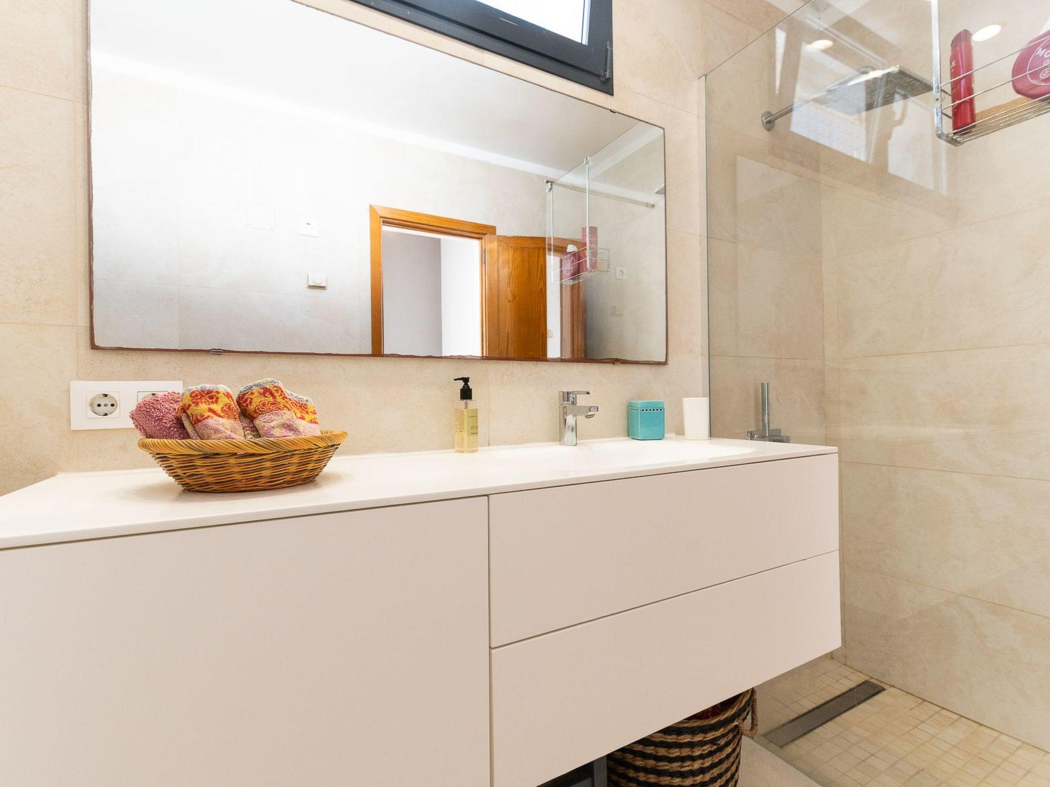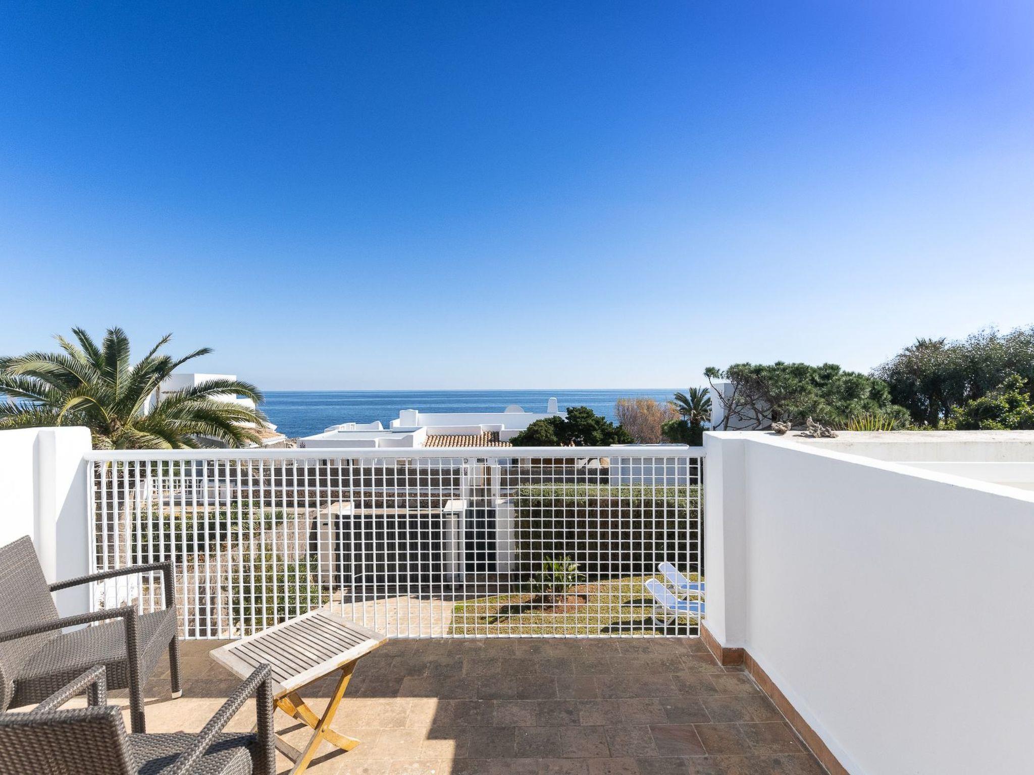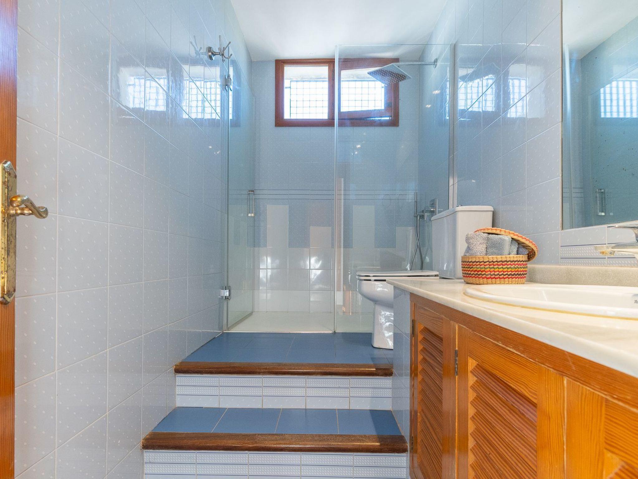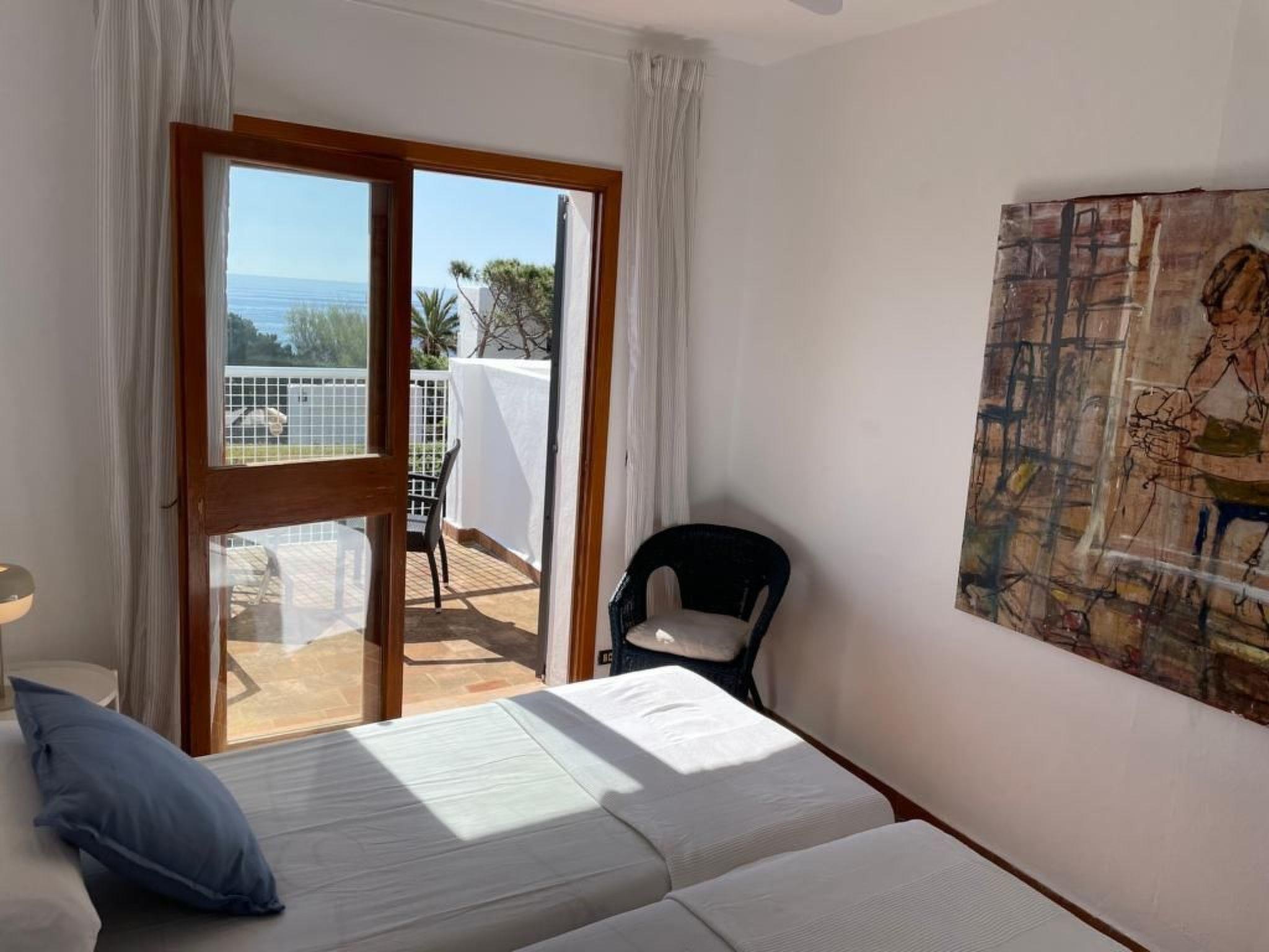 Villa on two floors with lots of natural light. On the ground floor is the living room with dining area. Exit to the terrace and pool area. Spacious kitchen next to the dining room. On this floor there is a bedroom with two single beds and a bathroom with shower. There are 2 bedrooms on the first floor. One bedroom with two single beds with access to the private terrace with unobstructed views of the sea. And a bedroom with a double bed with access to the balcony with partial views of the sea. These bedrooms share a separate bathroom with shower.