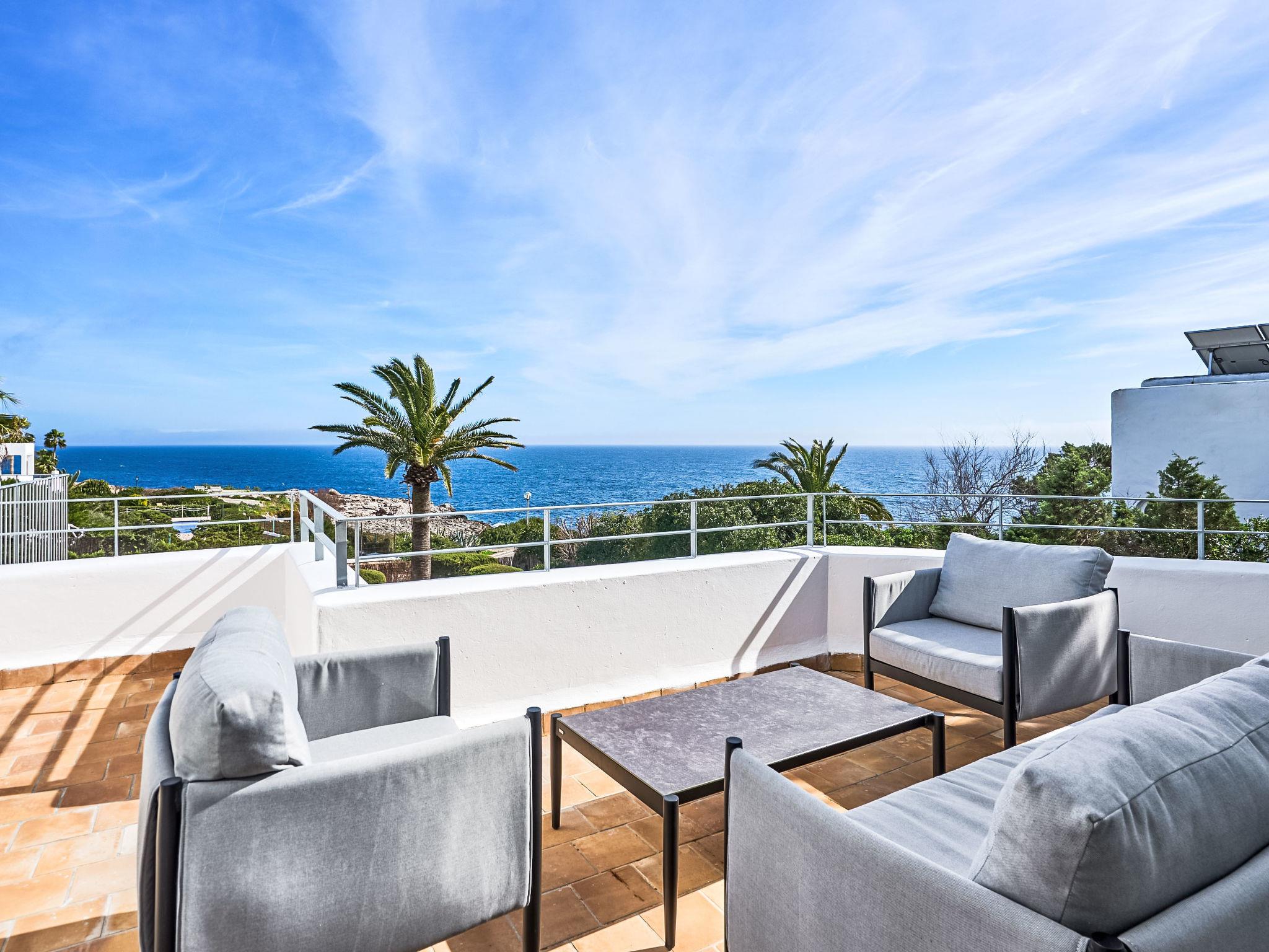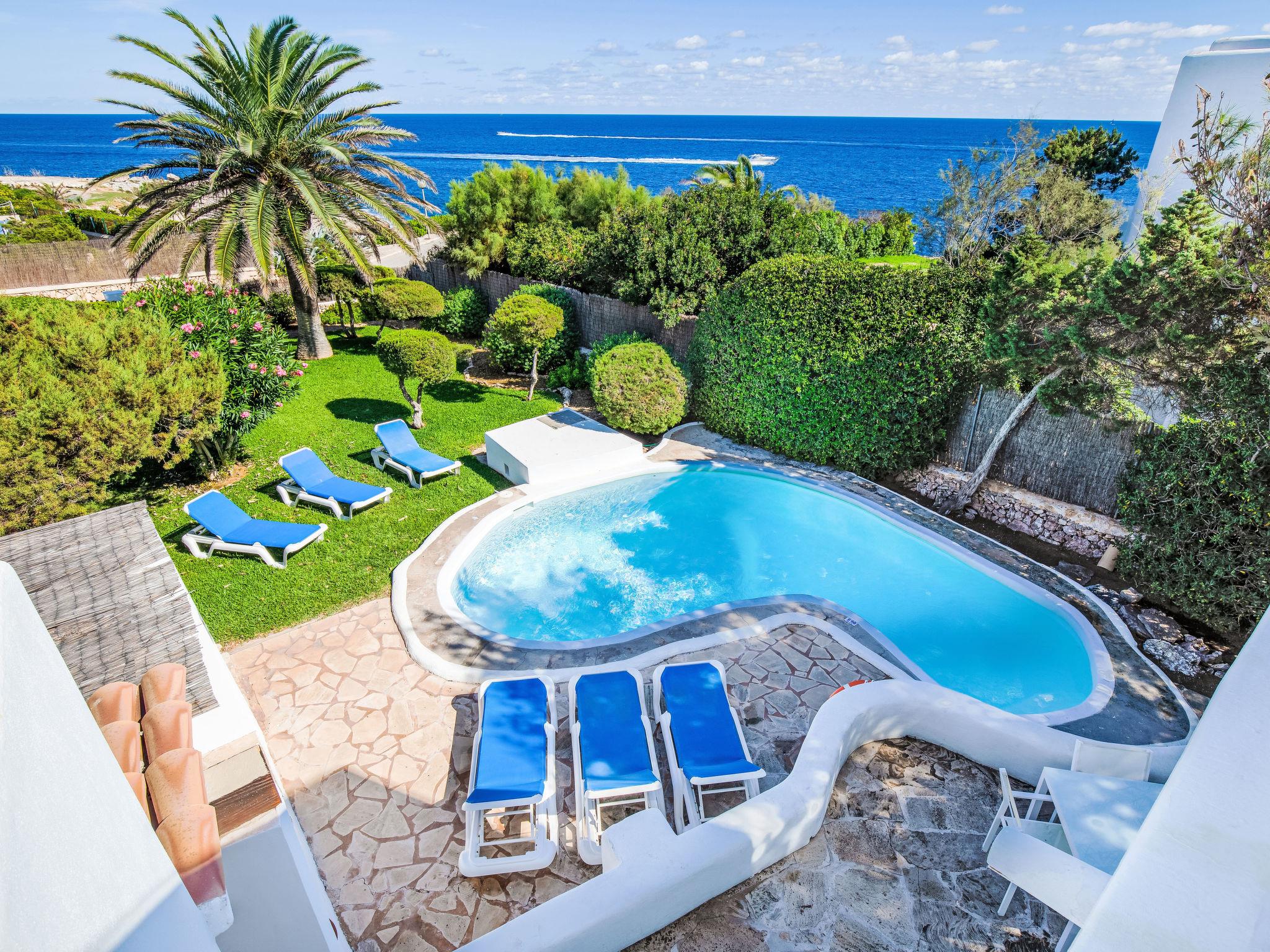 The terrace is divided into two levels and is equipped with sun loungers and dining areas. The beautiful kidney-shaped pool has a shallow end and child-friendly steps. From here you can reach the sun terrace with fantastic sea views, an ideal place to enjoy your private sunbathing.