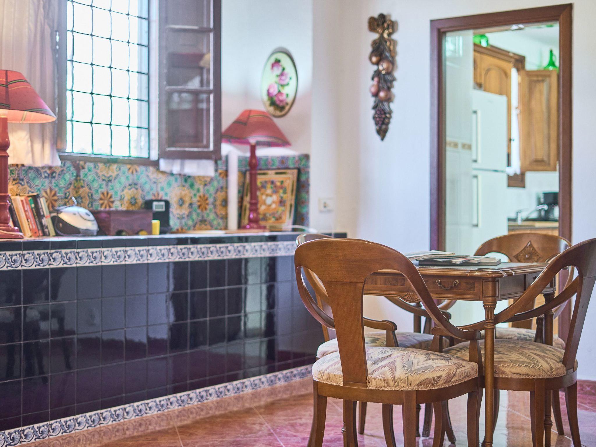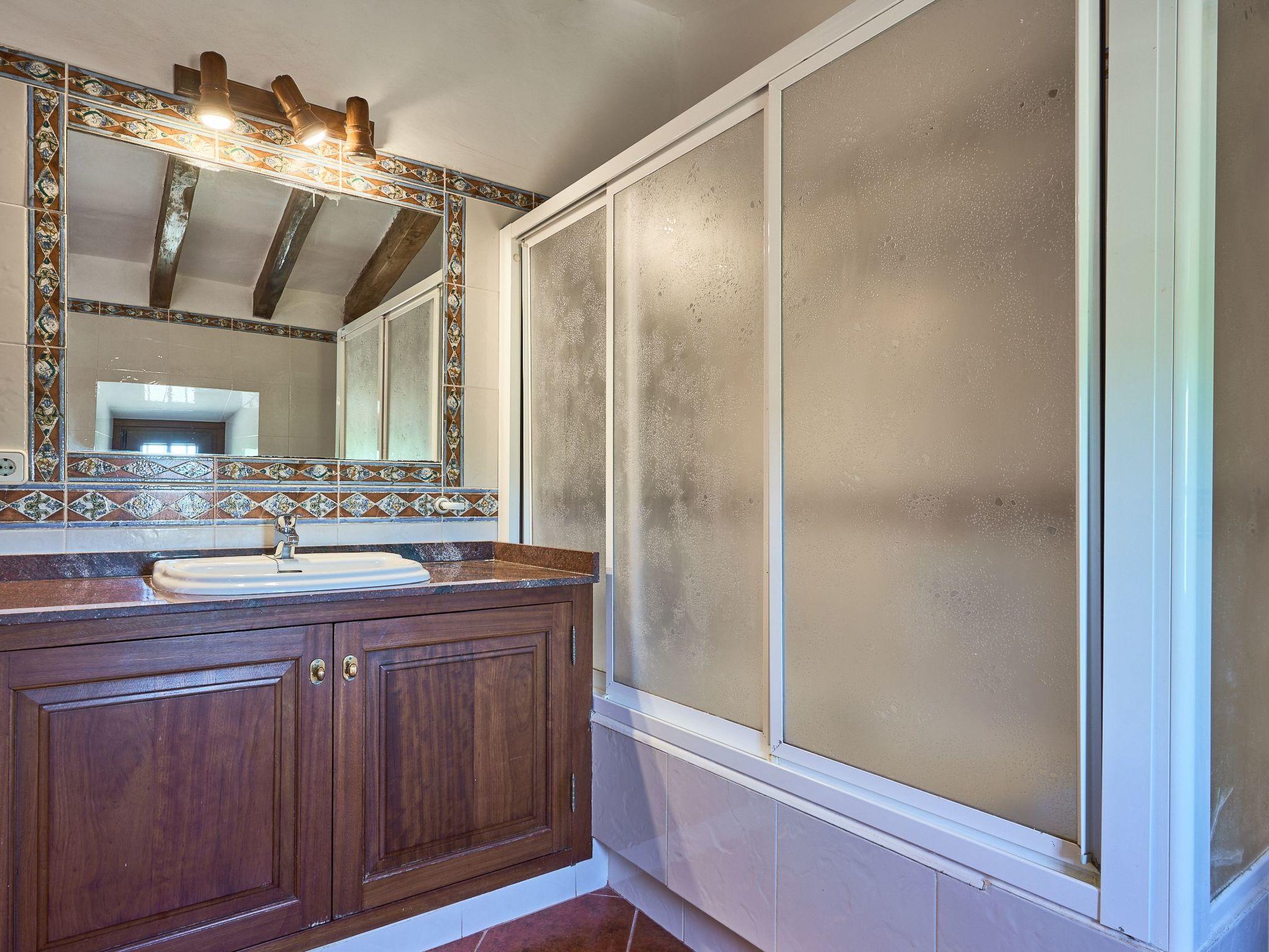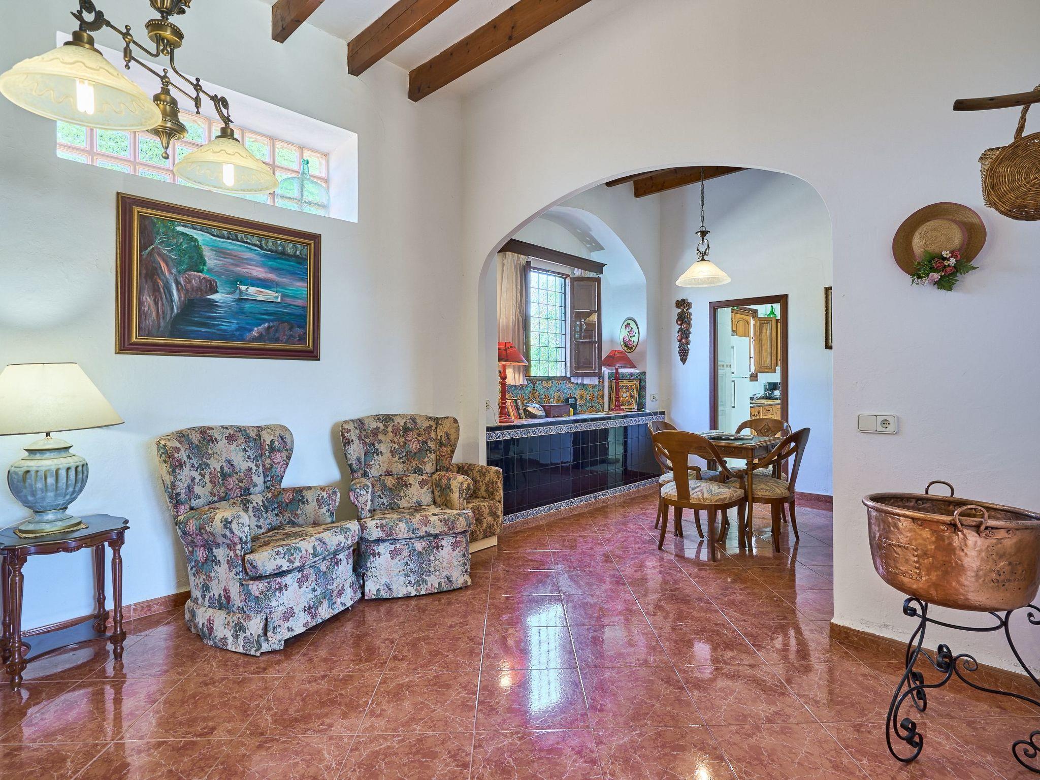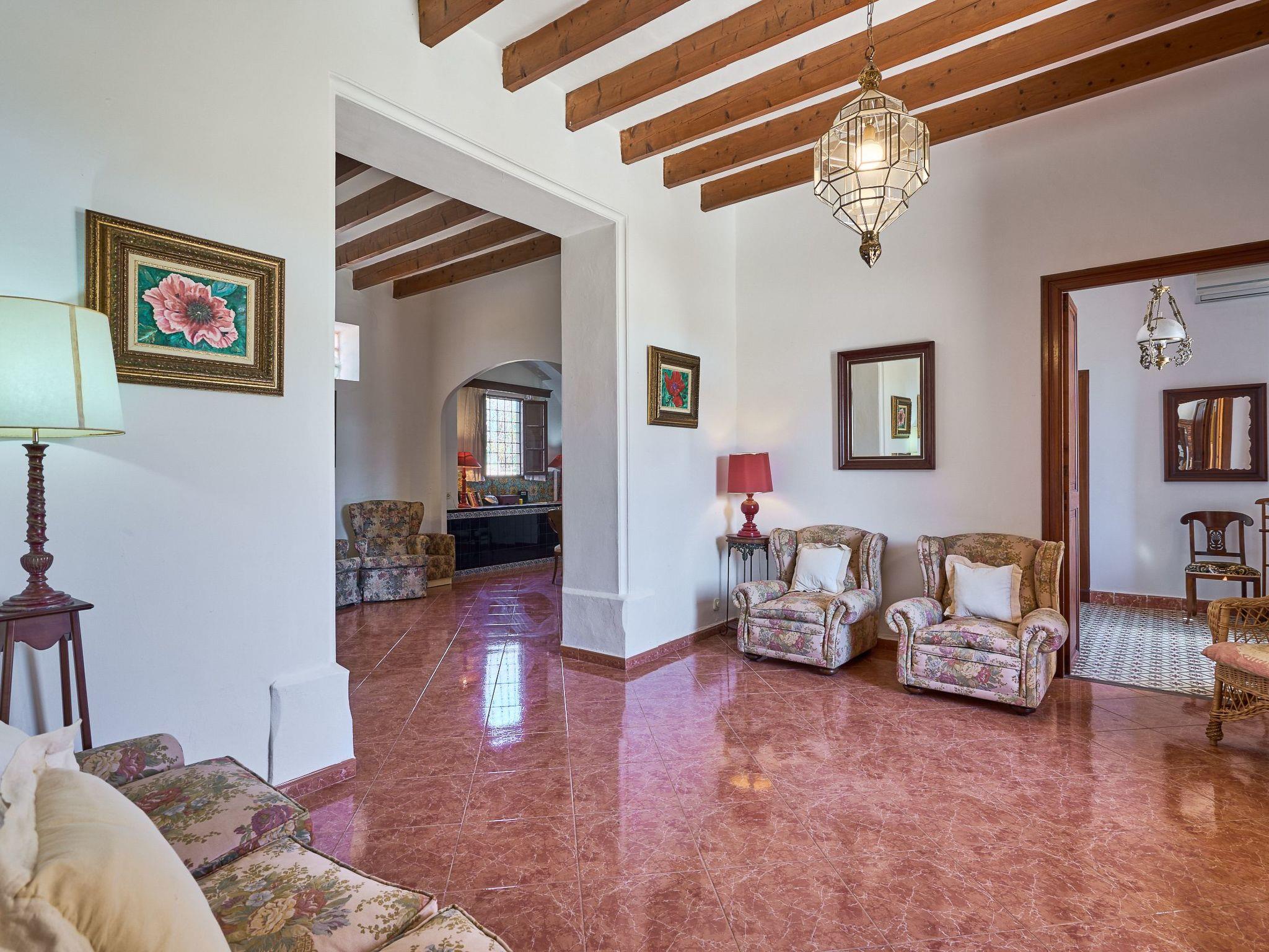 Can Tanca is a typical Mallorcan country house that has retained its traditional ambience, with high ceilings, rustic wooden beams and the dark, antique wooden furniture so typical of the island. The entrance leads into a spacious reception room, off which are 2 double bedrooms and the kitchen. The very spacious kitchen also serves as a dining area and has access to the outside terrace and the garden/pool area. Both bedrooms on the ground floor are furnished with double beds and antique Mallorcan furniture. Both rooms have en suite bathrooms. The upper floor offers a living area with sofas, satellite TV and beautiful views of the garden. There are also two further double bedrooms, each with 2 single beds. Both bedrooms share a bathroom with bath and shower. A small sun terrace with fantastic distant sea views completes the upper floor.