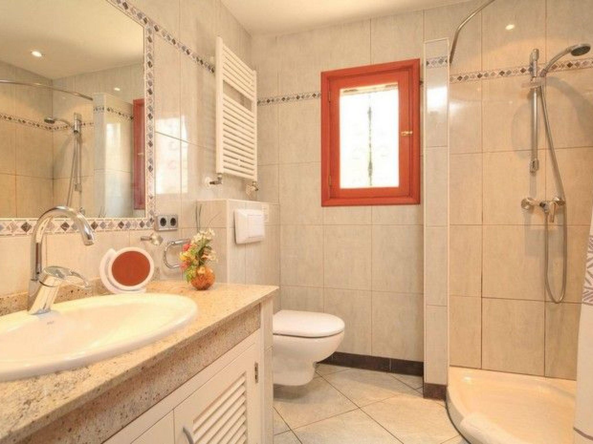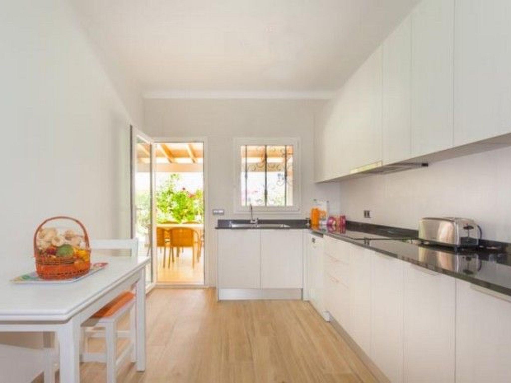 Villa on 2 floors. On the ground floor there is a spacious, open-plan living/dining room with access to the covered terrace. The dining area leads to the kitchen, also with access to the outside. The villa has 4 bedrooms. Two with 2 single beds each, which share a shower room. Guest toilet. The master bedroom with a double bed has an en-suite shower room. From the rear terrace, external stairs lead to the fourth bedroom with two single beds, an en-suite shower room and access to a roof terrace, the walls on the roof terrace are very low, so children should not have access to this roof terrace.