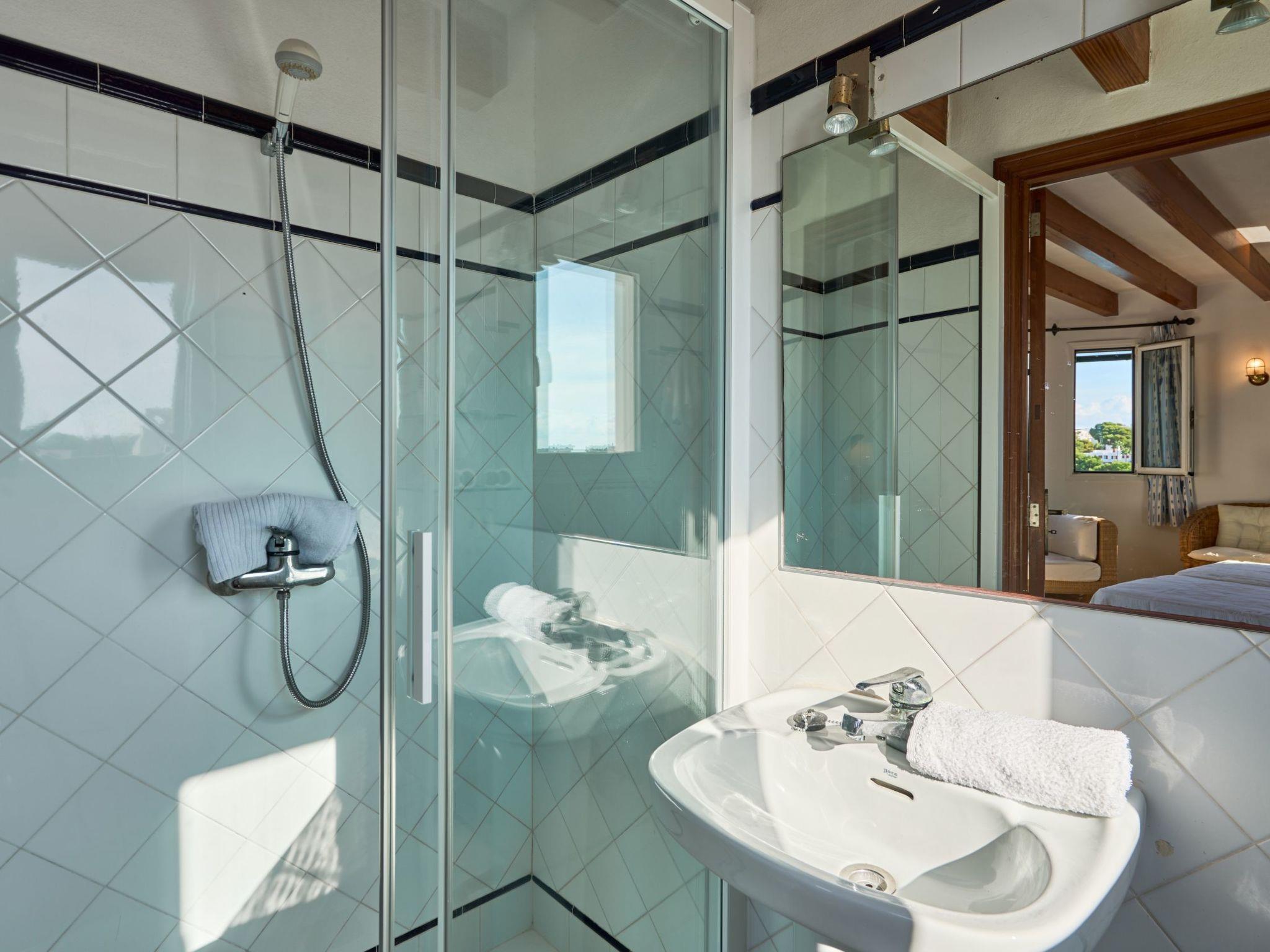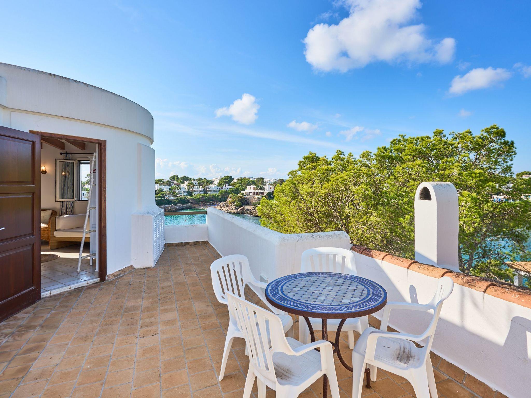 From this terrace, an external staircase leads to the top floor area with a terrace with spectacular views of the sea and Cala D'Or as well as a bedroom with two single beds and an en-suite bathroom.