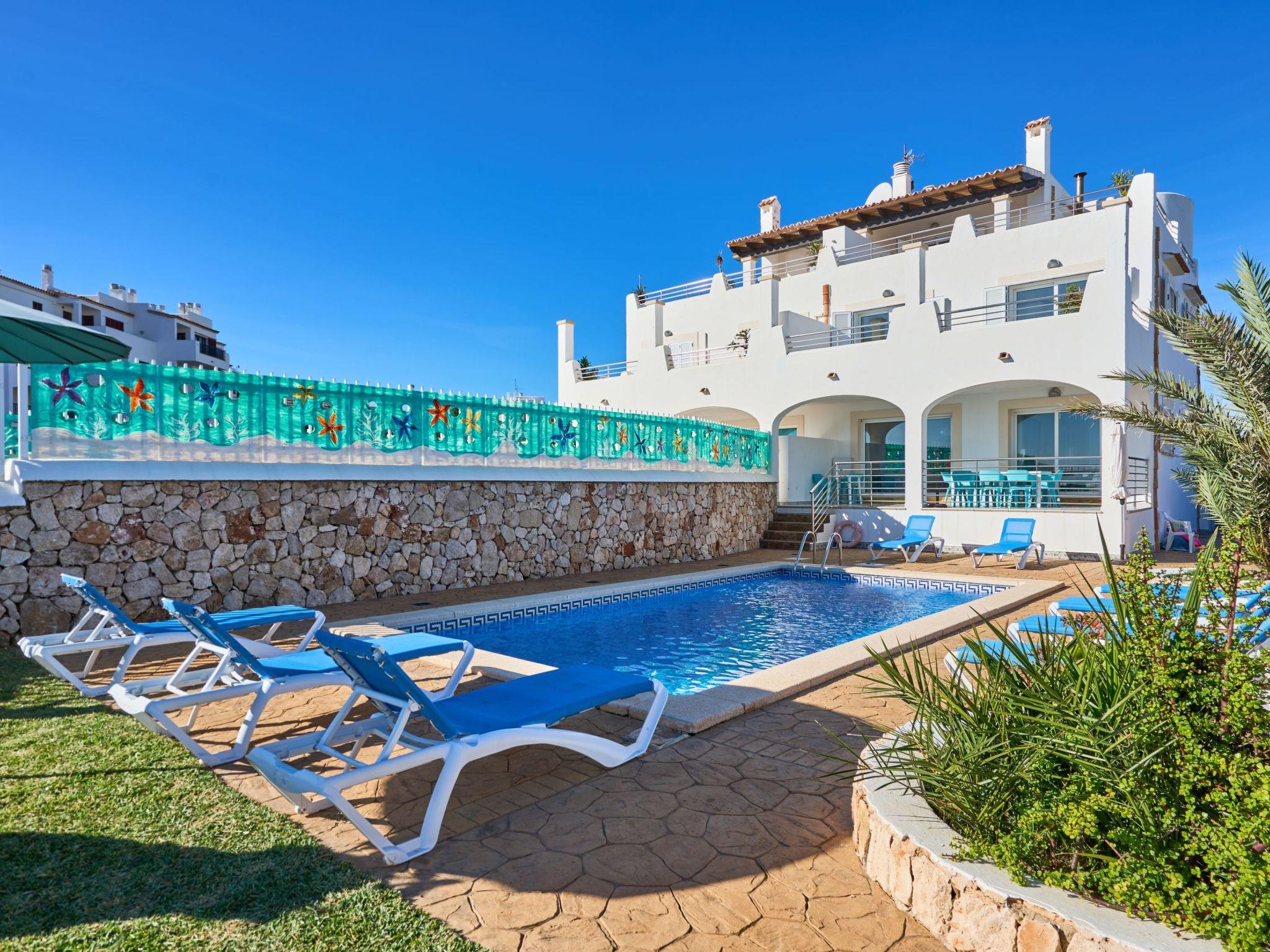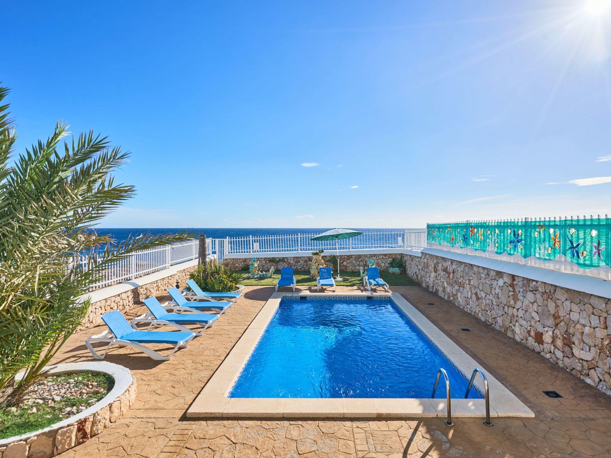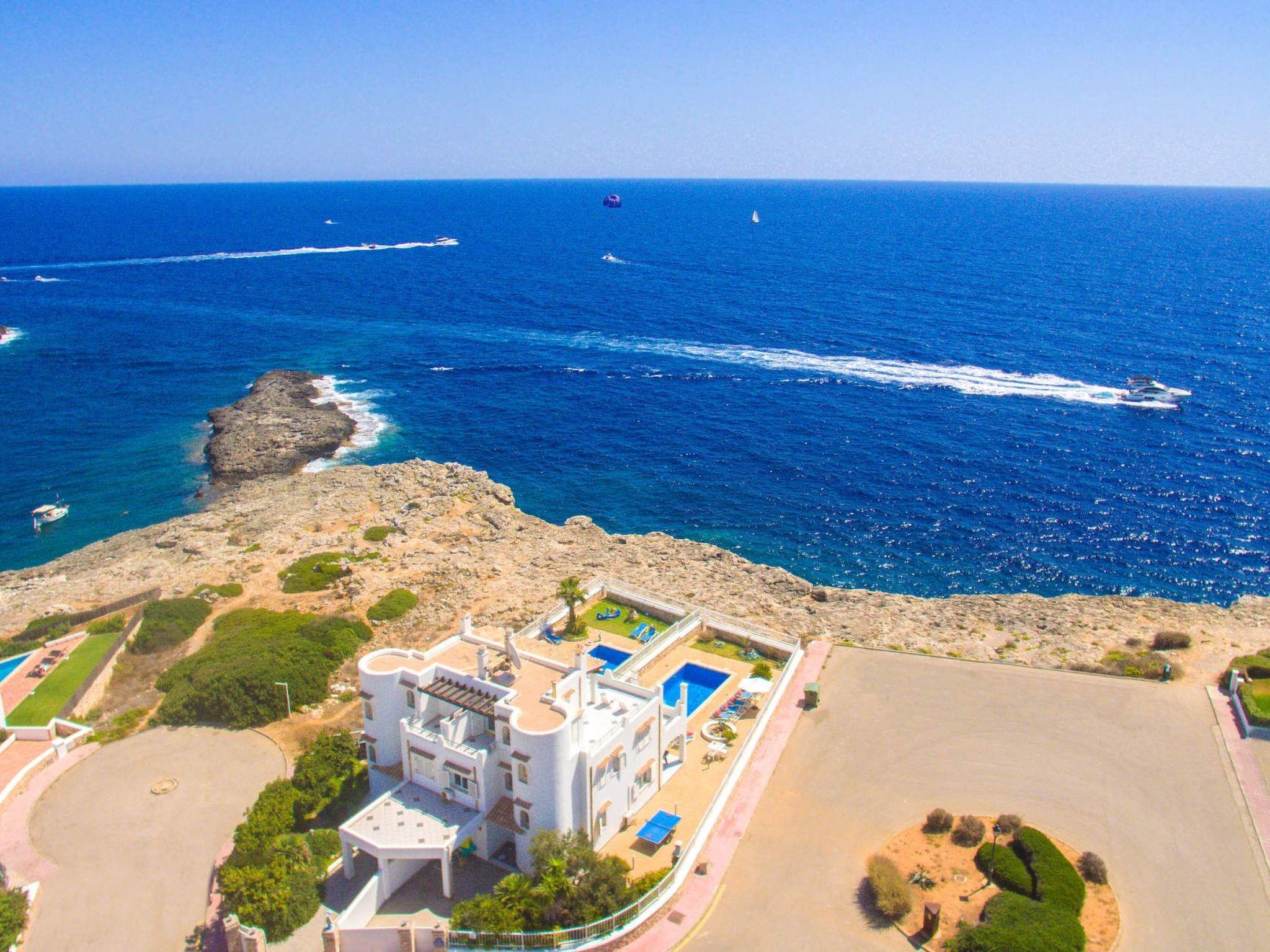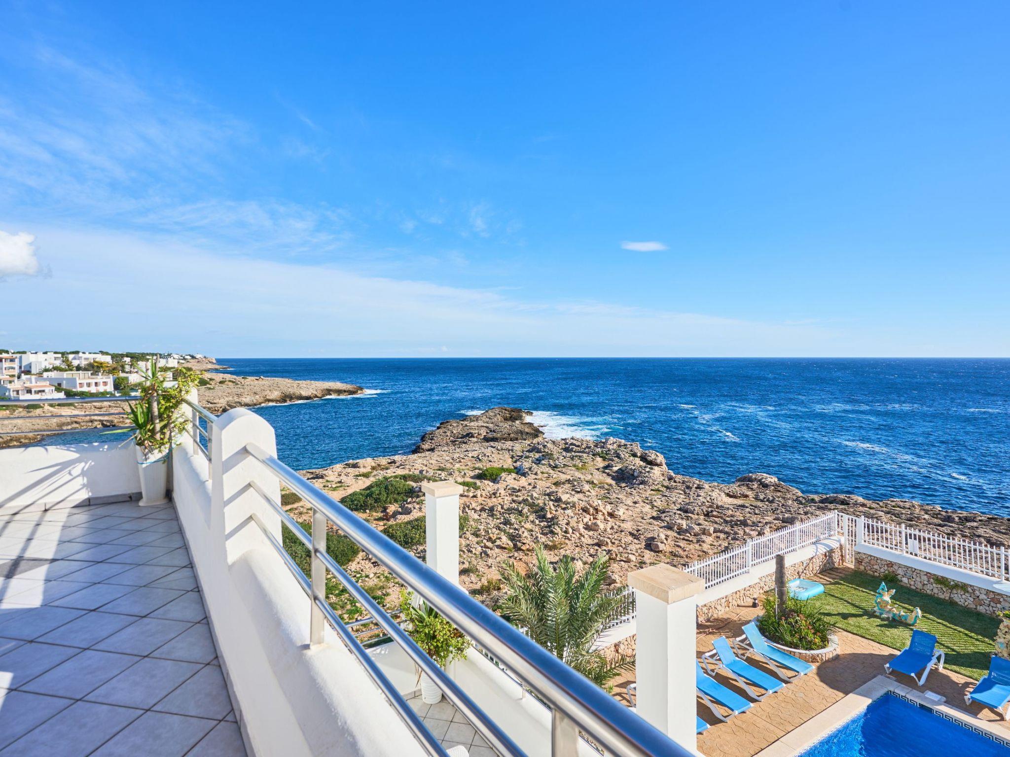 Semi-detached house in 1st sea line with fantastic views of the open sea. The villa is located in the neighbourhood of Es Fortí, not far from Cala Egos, Cala D'Or, Mallorca. The sandy bay of Caló des Pou is 400 metres away on foot and Cala Egos is 950 metres away. The centre of Cala d'Or can be reached in 3 km and offers a pedestrian area with shops, cafés, pubs with live music and a variety of restaurants as well as a lively nightlife. The Cala Dor marina is 1.3 km away. You can stroll along the dock or dine on the terrace of a lovely restaurant overlooking the yachts moored at the dock.