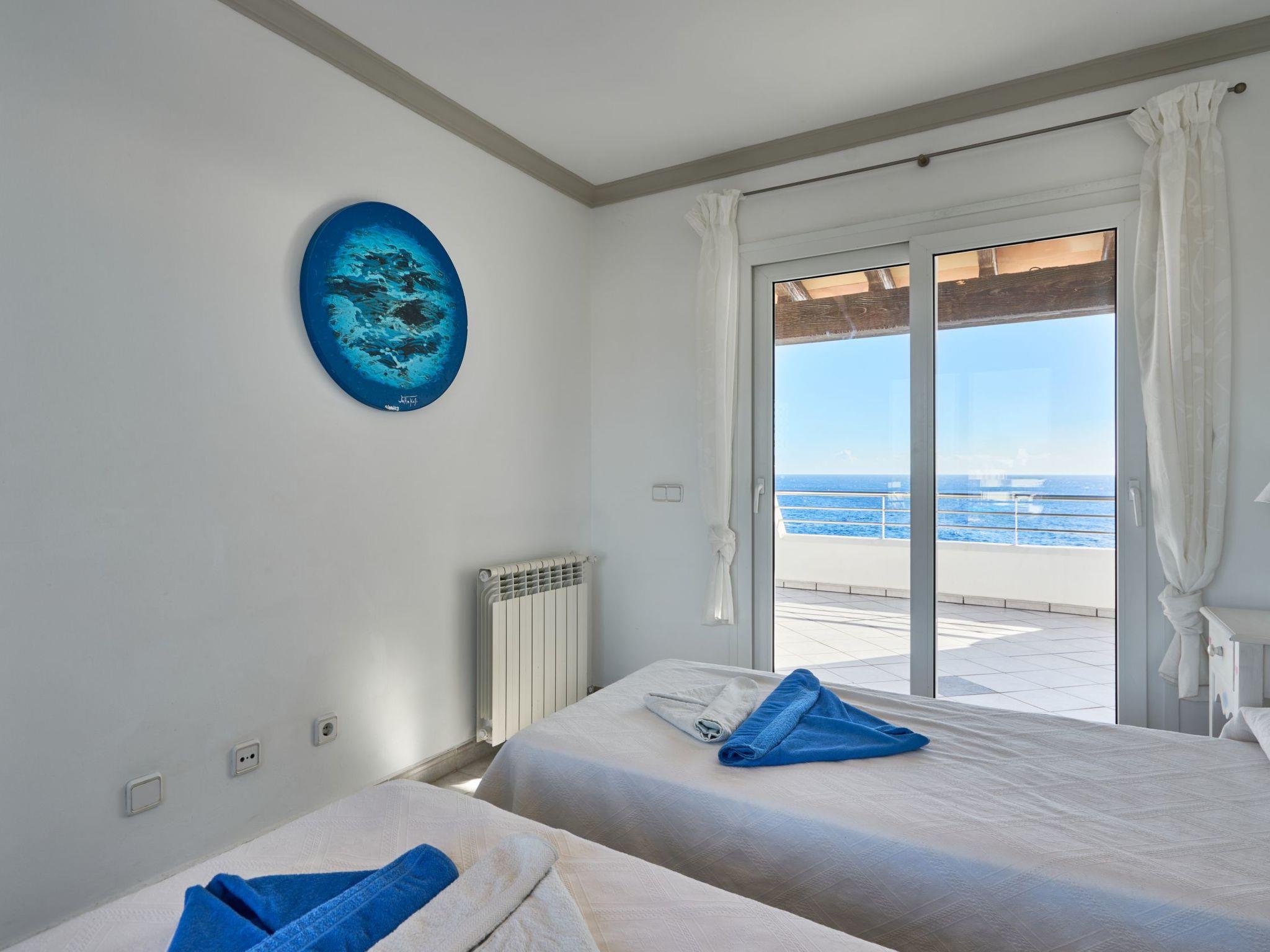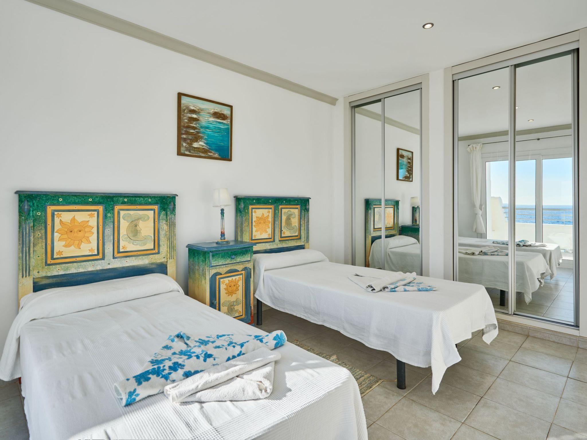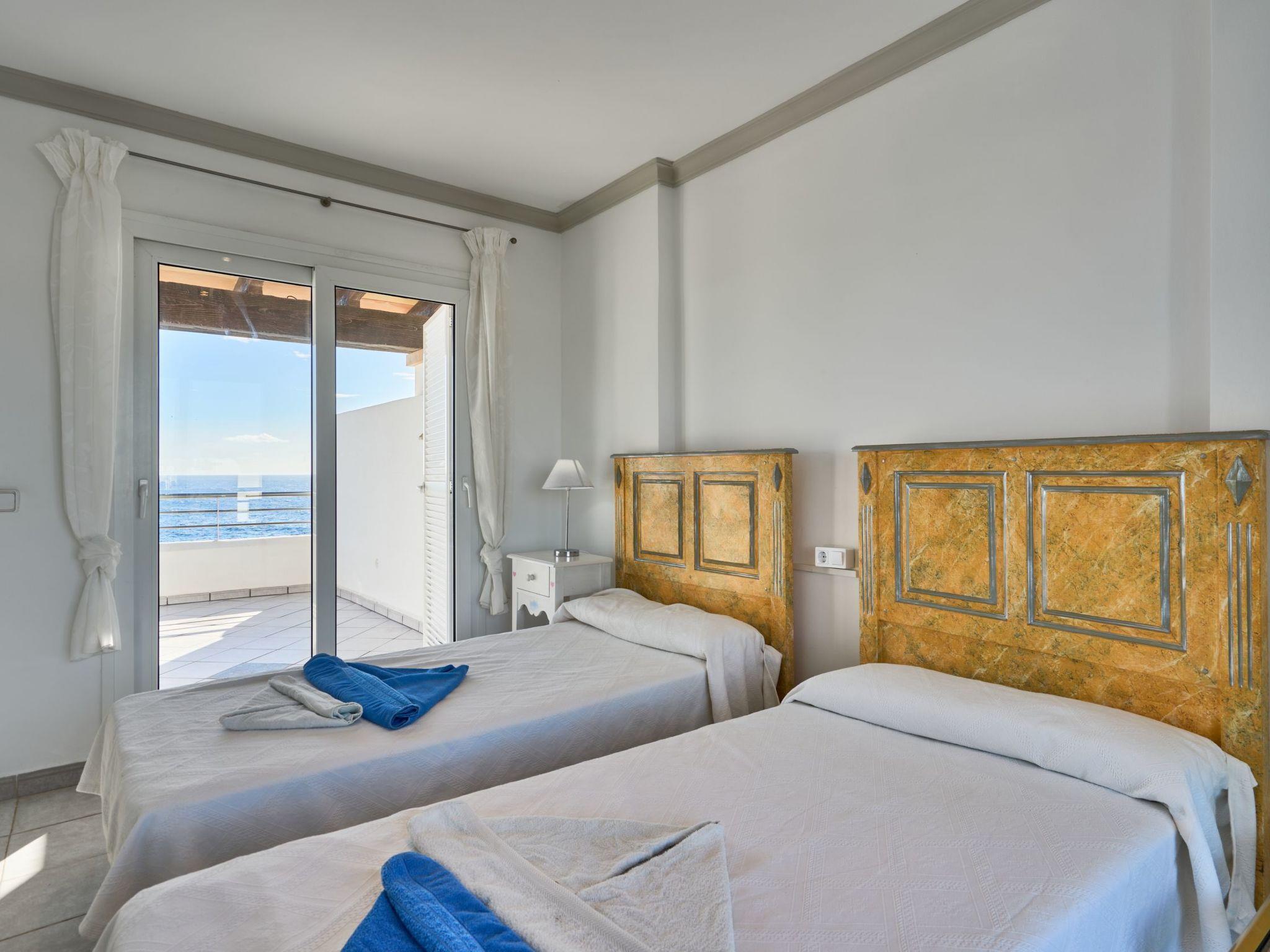 Estella Matutina is a beautiful semi-detached house on 3 floors. On the ground floor are the kitchen and the living/dining room with access to the pool area. There is also a bedroom with two single beds, access to the covered terrace and a bathroom. There are a further 3 bedrooms on the first floor. Two of them share a bathroom. One bedroom has an en suite bathroom. Two of the bedrooms have access to a beautiful terrace with breathtaking sea views. On the second floor is the 5th bedroom with two single beds, en-suite shower room and private terrace with equally spectacular sea views.