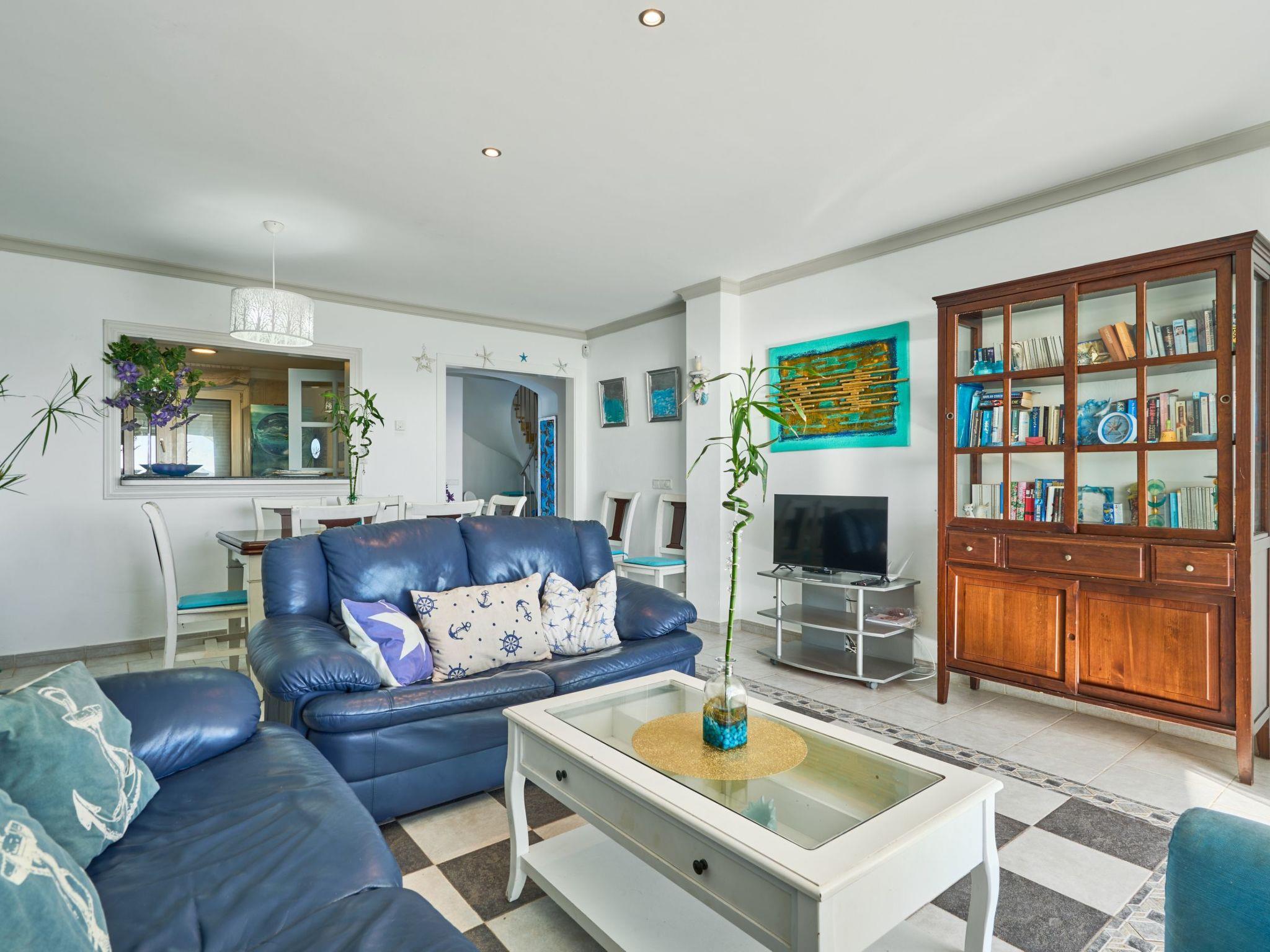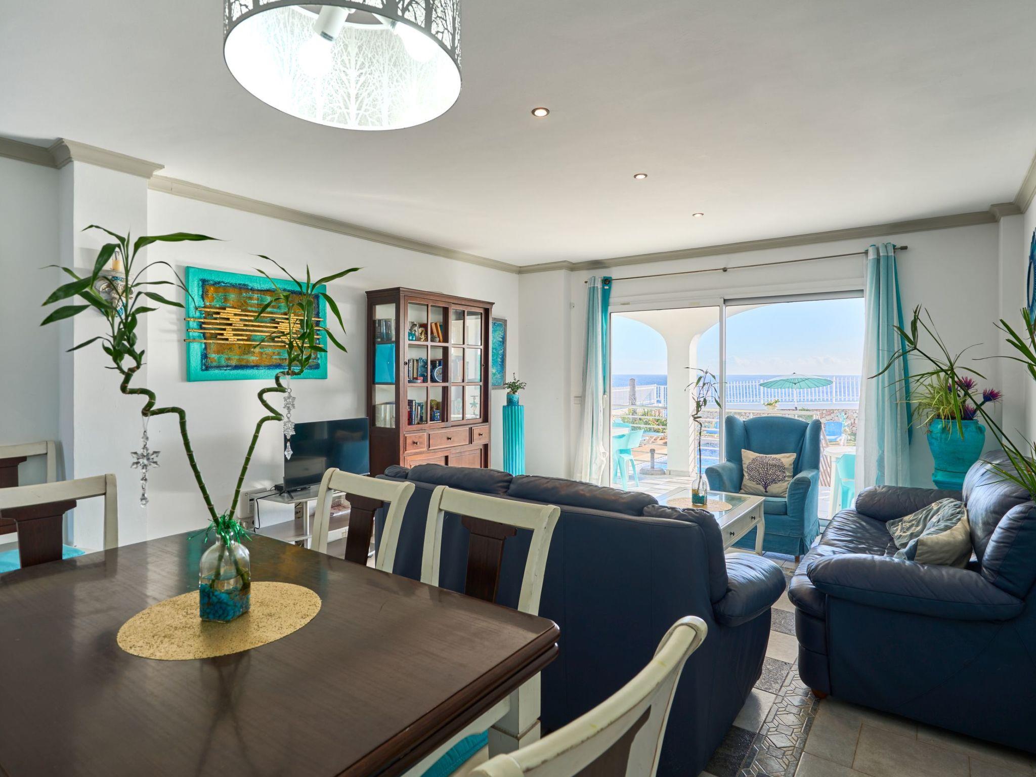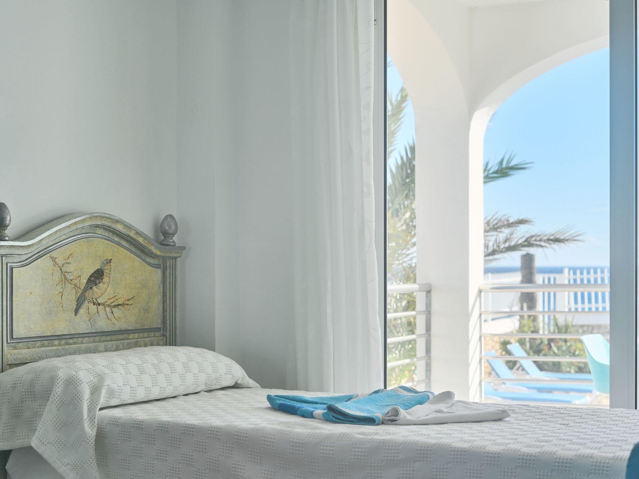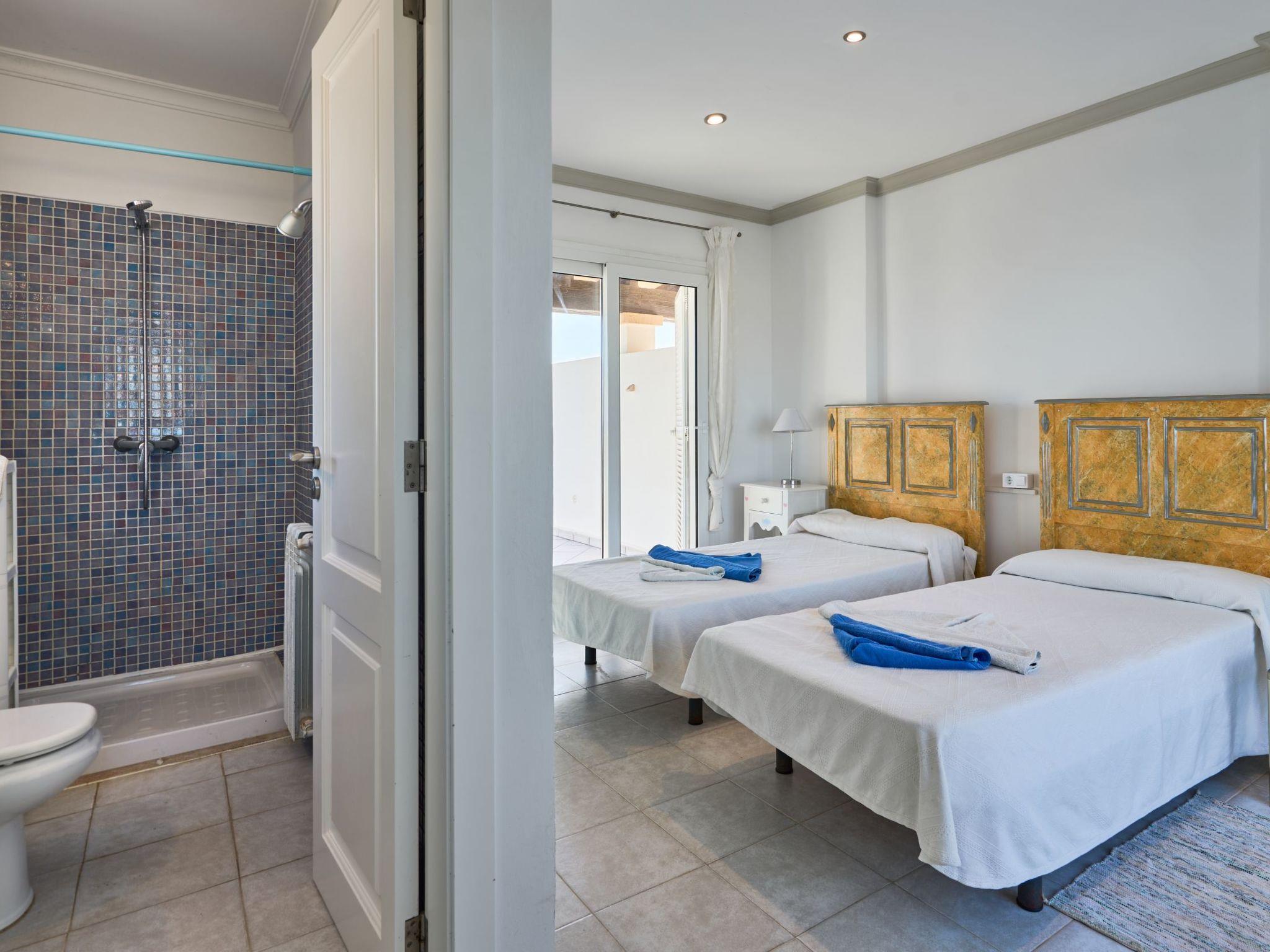 Estella Matutina is a beautiful semi-detached house on 3 floors. On the ground floor are the kitchen and the living/dining room with access to the pool area. There is also a bedroom with two single beds, access to the covered terrace and a bathroom. There are a further 3 bedrooms on the first floor. Two of them share a bathroom. One bedroom has an en suite bathroom. Two of the bedrooms have access to a beautiful terrace with breathtaking sea views. On the second floor is the 5th bedroom with two single beds, en-suite shower room and private terrace with equally spectacular sea views.