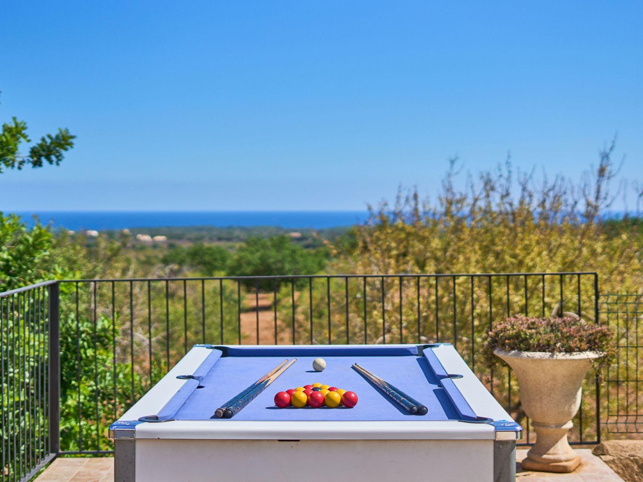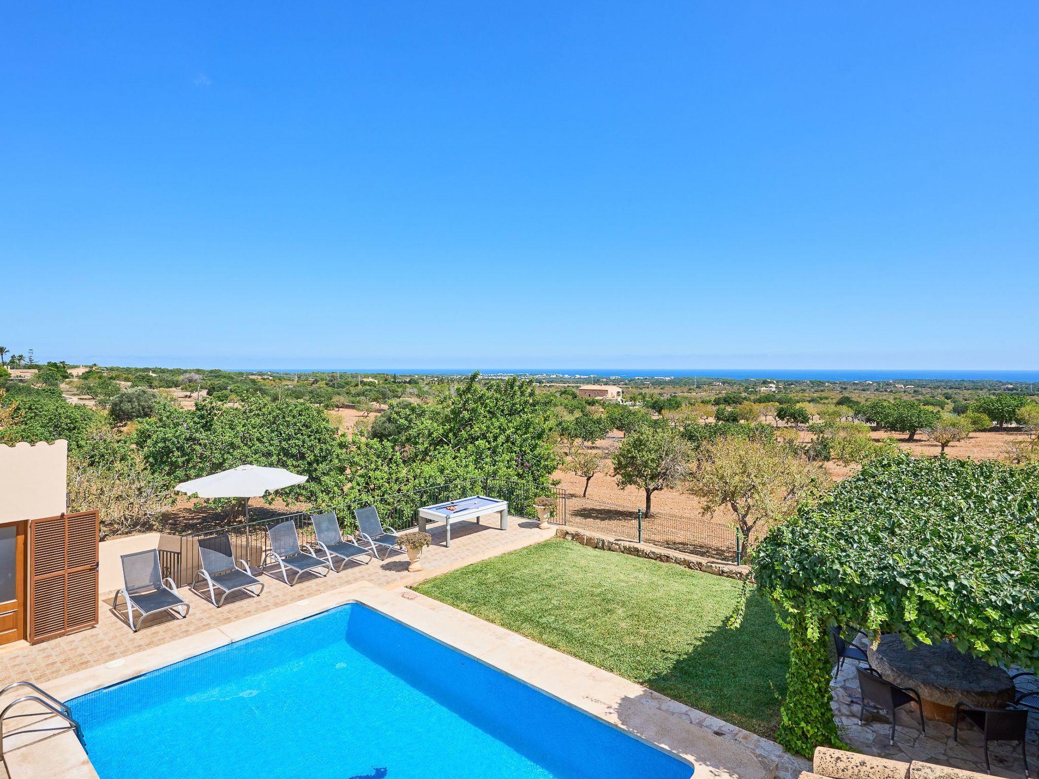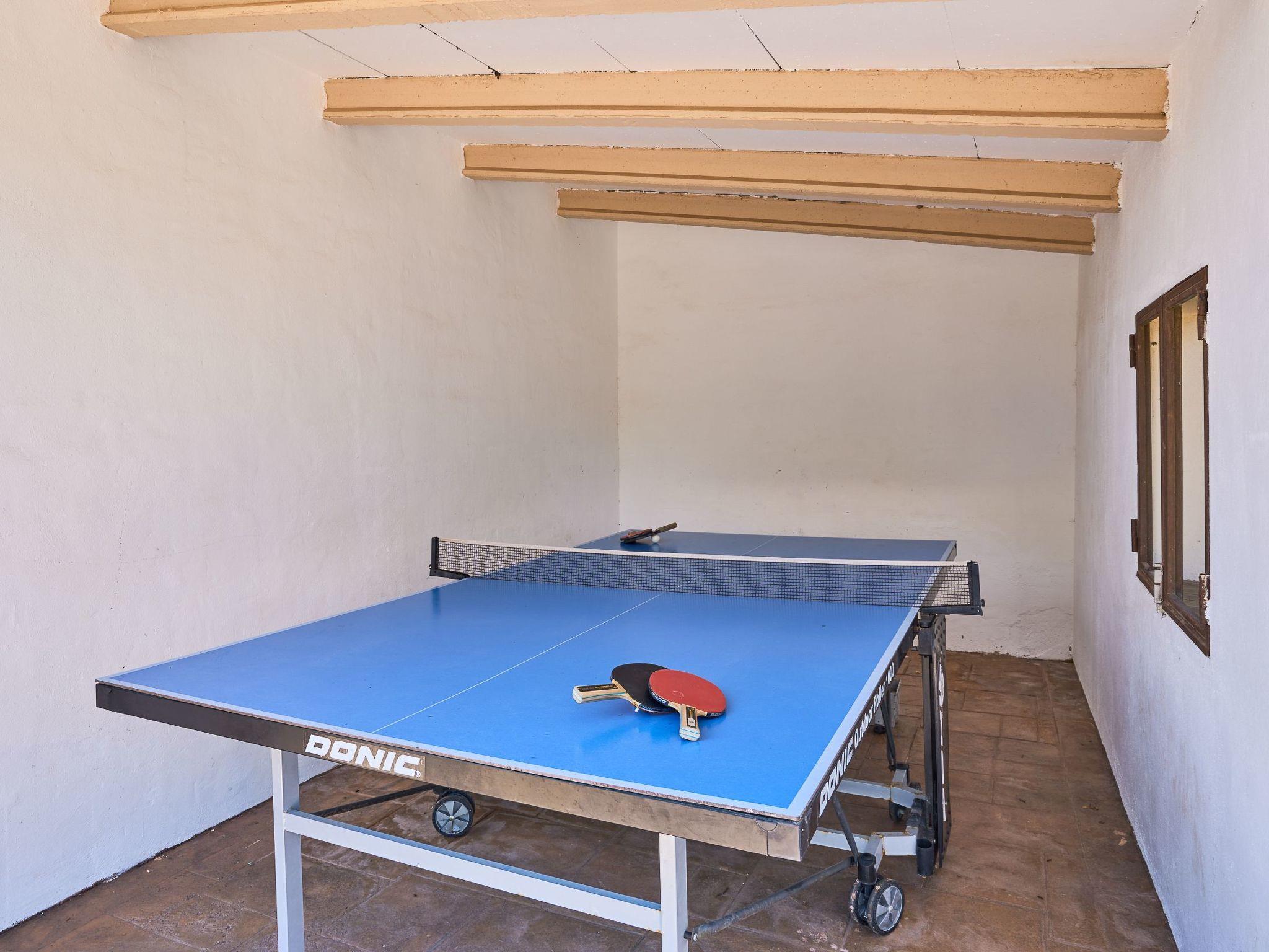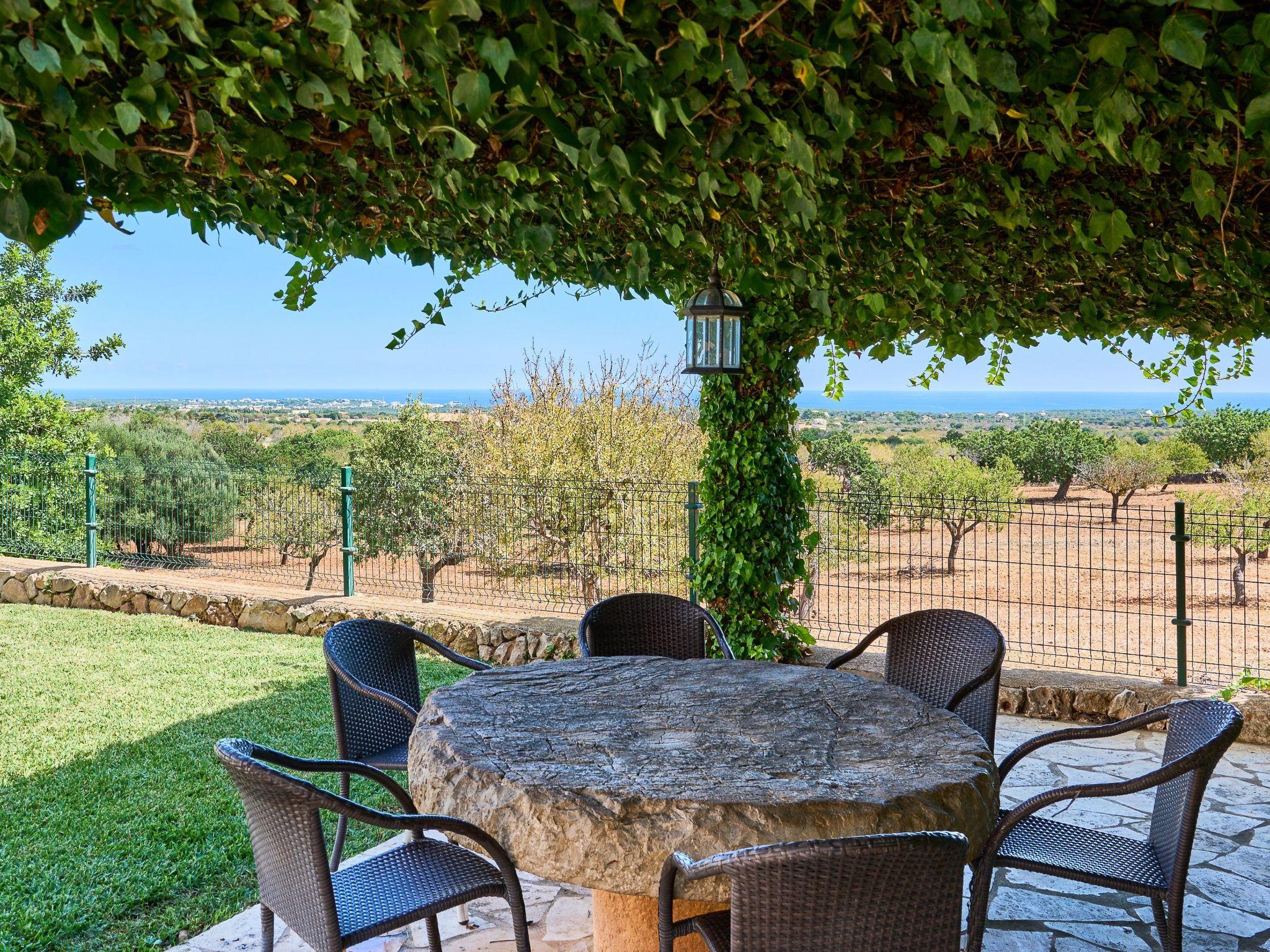 The outside area is spacious and well maintained. The entrance area has charming green areas, a small fish pond and Mediterranean plants. At the rear of the house, the view stretches past fields with almond trees to the sea in the distance. The pool with sun terrace is located here and a beautiful brick barbecue area makes barbecue dreams come true. A table tennis table completes the offer.