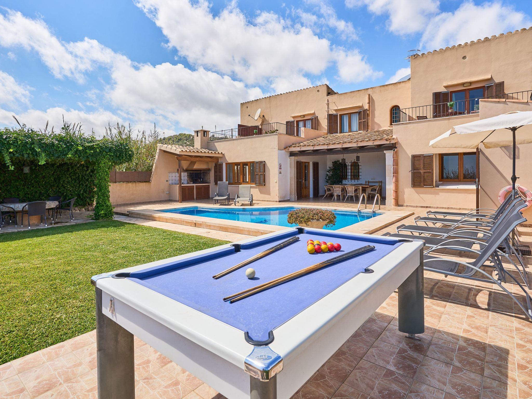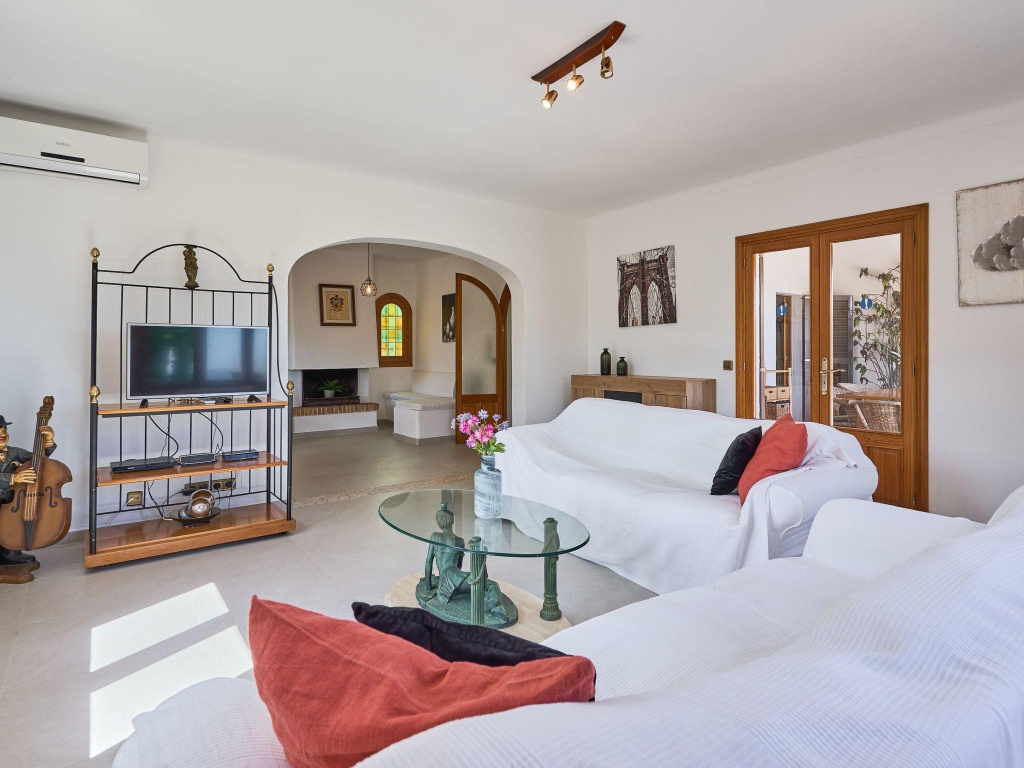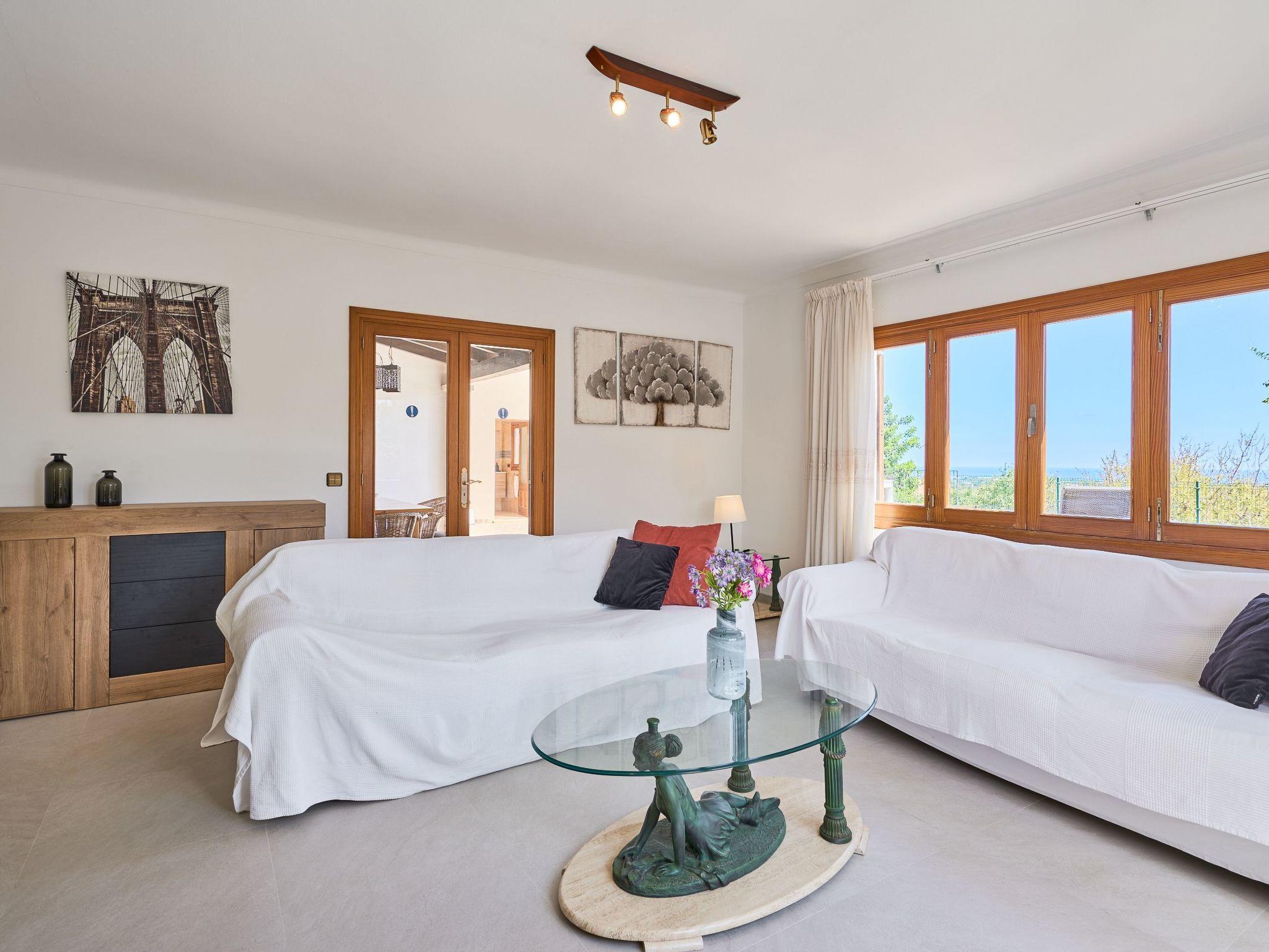 The outside area is spacious and well maintained. The entrance area has charming green areas, a small fish pond and Mediterranean plants. At the rear of the house, the view stretches past fields with almond trees to the sea in the distance. The pool with sun terrace is located here and a beautiful brick barbecue area makes barbecue dreams come true. A table tennis table completes the offer.