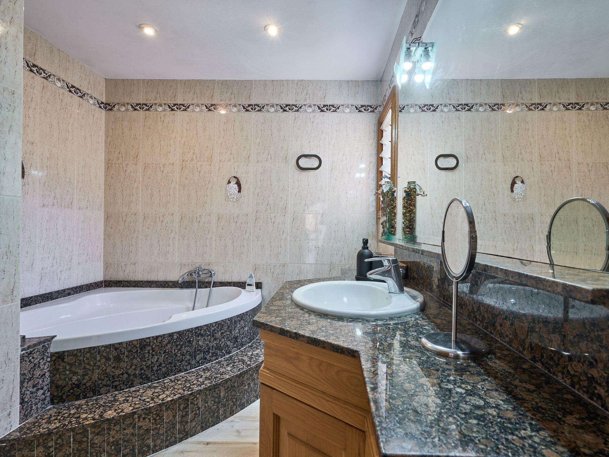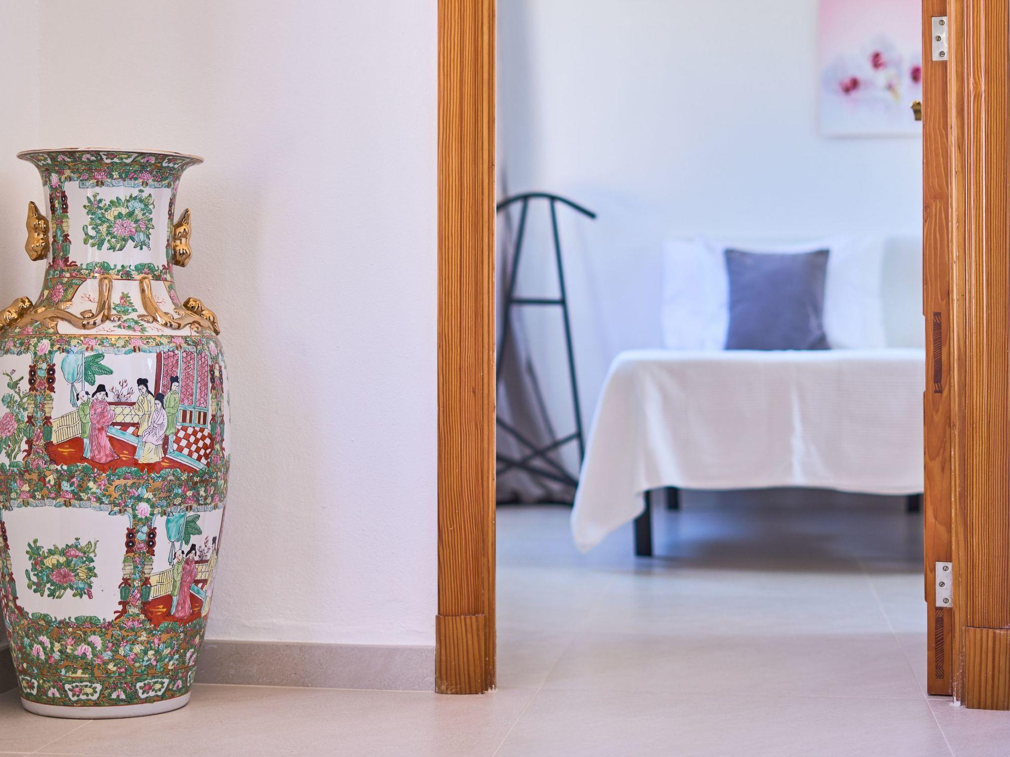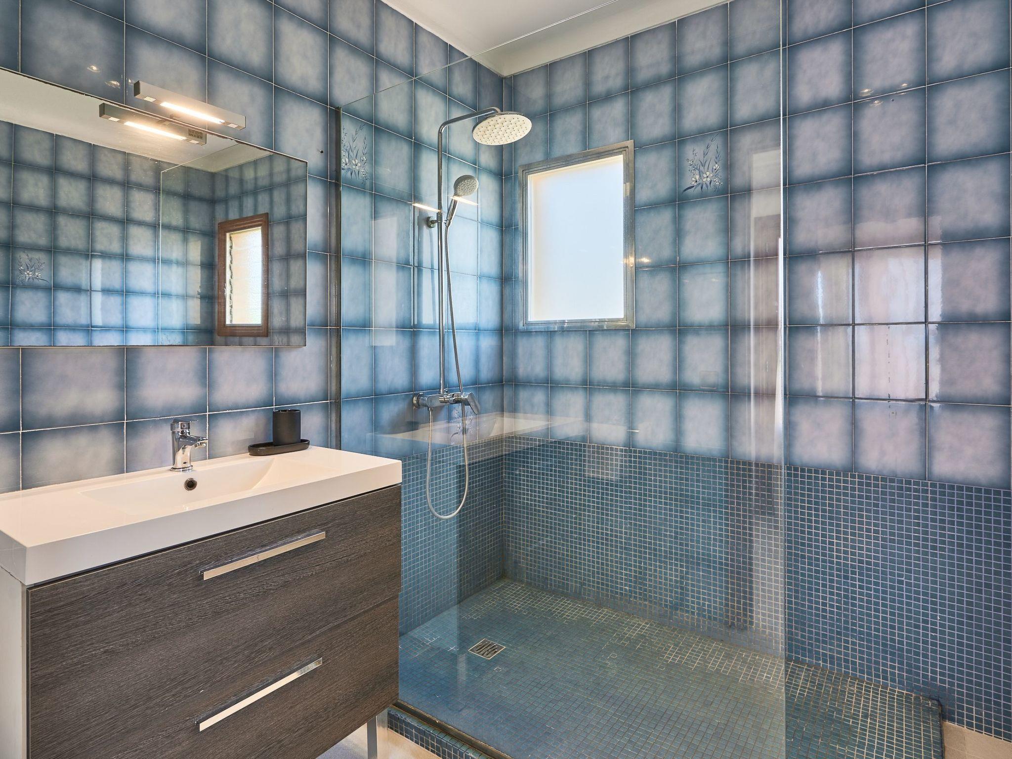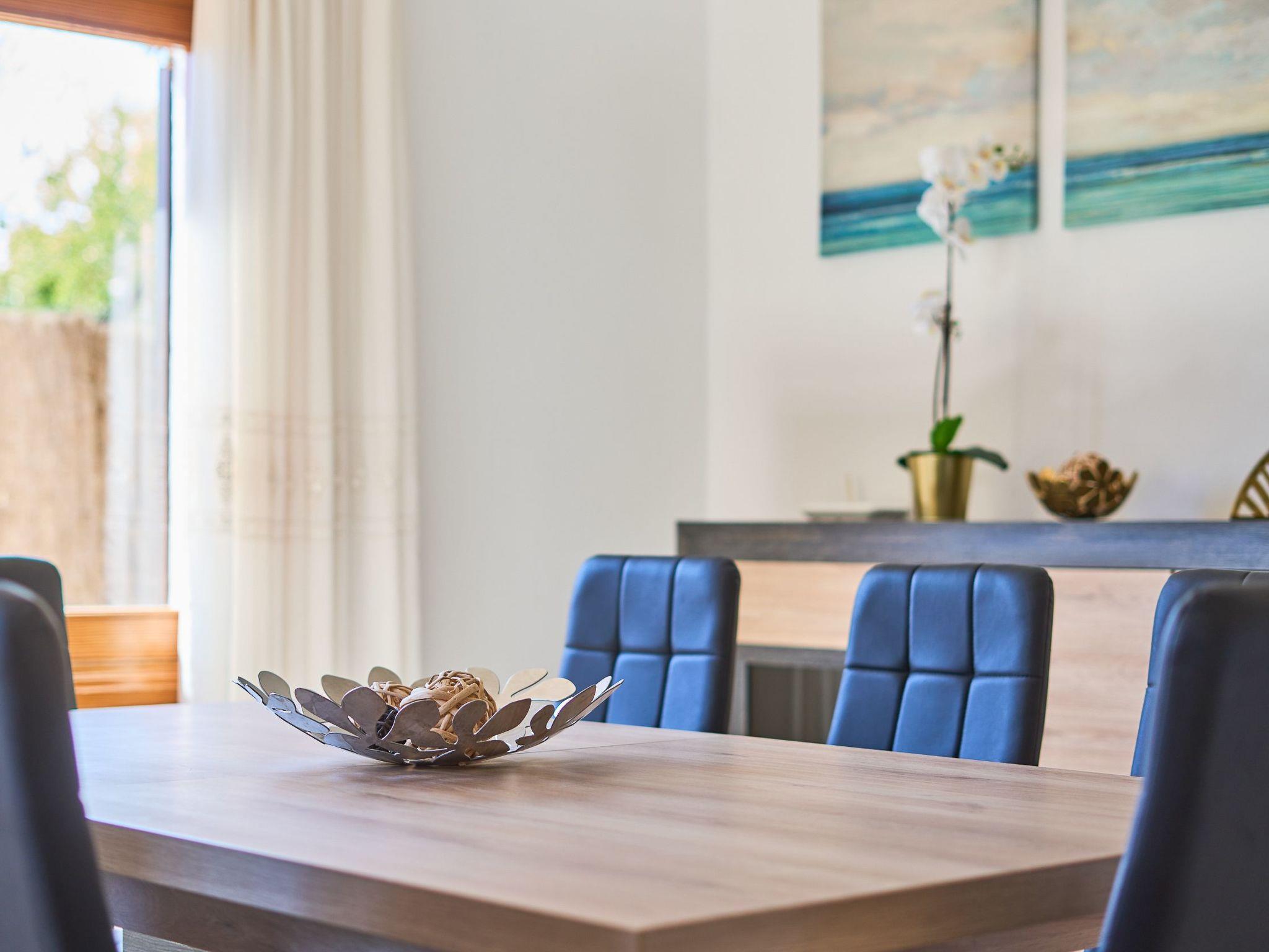 The outside area is spacious and well maintained. The entrance area has charming green areas, a small fish pond and Mediterranean plants. At the rear of the house, the view stretches past fields with almond trees to the sea in the distance. The pool with sun terrace is located here and a beautiful brick barbecue area makes barbecue dreams come true. A table tennis table completes the offer.
