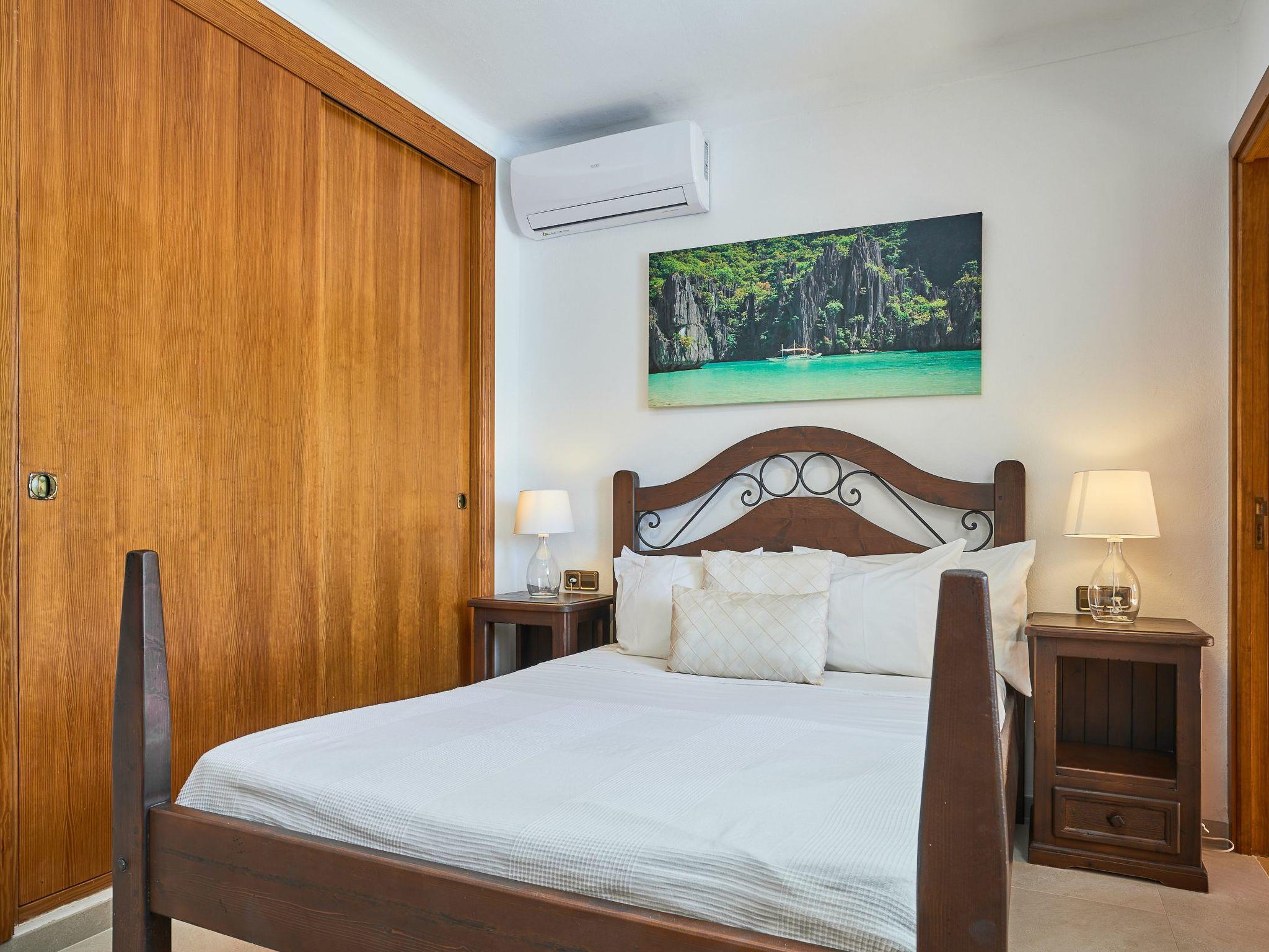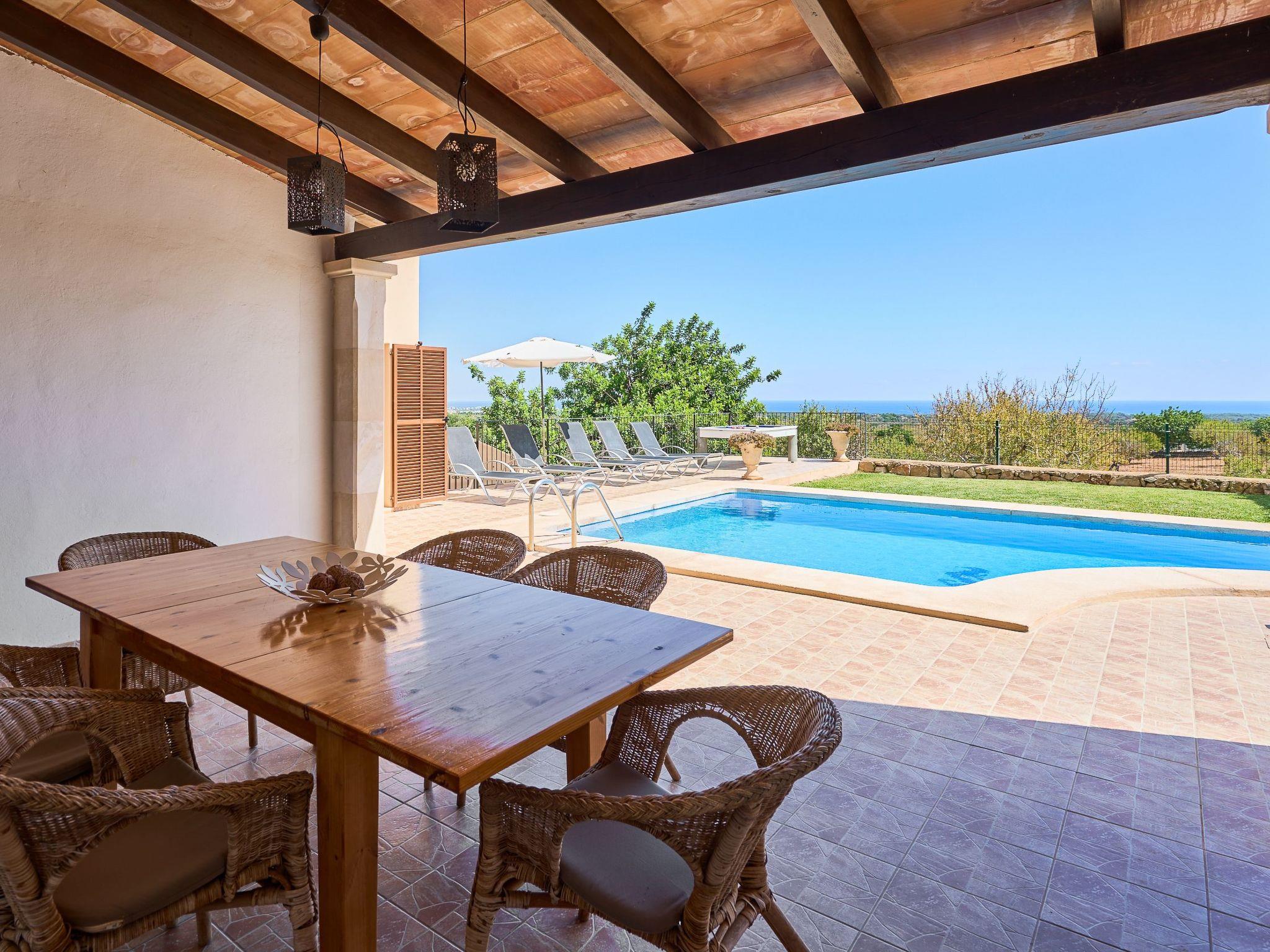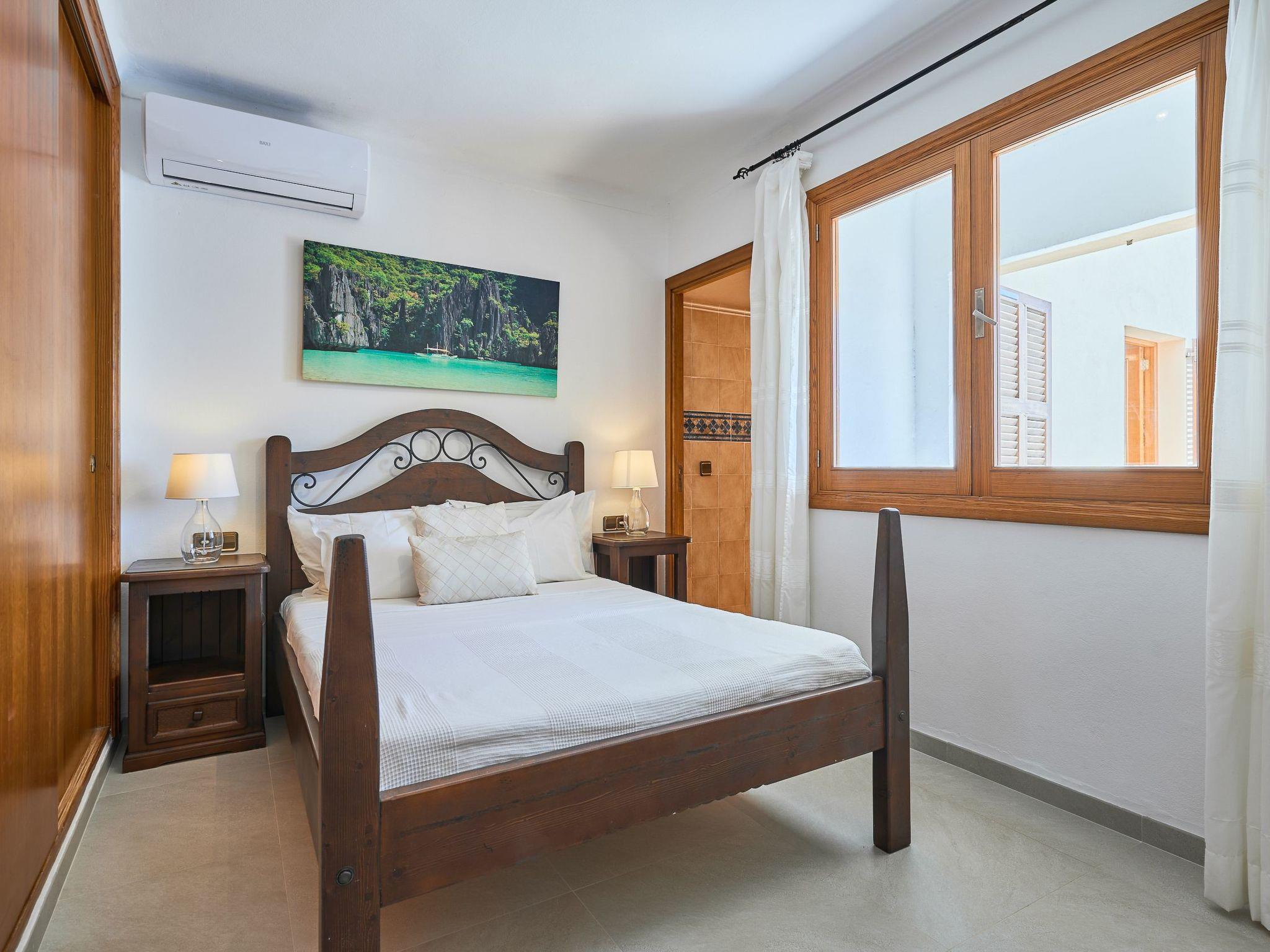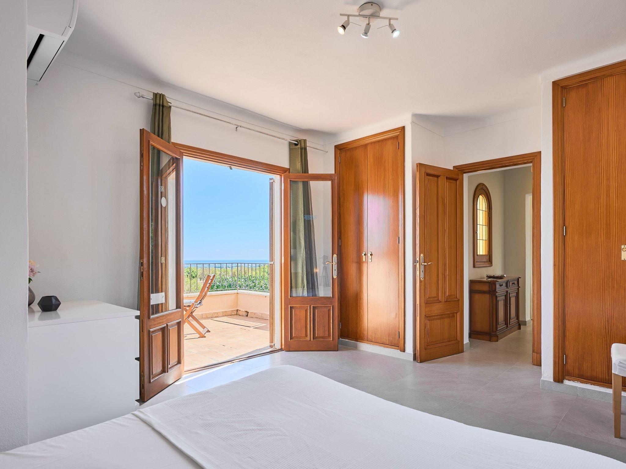 Die Garrovers de S'Horta, a two-storey, spacious house in the countryside. On the ground floor is the open-plan living and dining area with a charming corner fireplace. From the living area there is access to a terrace with marvellous views over the fields to the sea on the horizon. The kitchen is spacious, with a breakfast table and access to the outside area. On the ground floor there are two double bedrooms, one with an en-suite shower room, the other has a separate bathroom with a corner Jacuzzi bath. One of the bedrooms leads to a utility room with washing machine. On the upper floor there is a further double bedroom and a shower room. Each has its own terrace overlooking the pool.