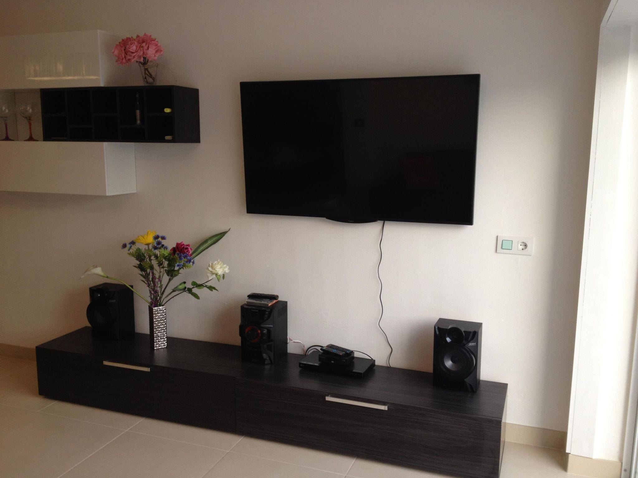 The entire 79 m2 apartment was renovated in 2015; the kitchen, tiles and floors, toilets, sinks, television, three air conditioning units and furniture were replaced. One bedroom has parquet floors, all others have new tiled floors. The apartment offers a living room, an open spaced kitchen, two bedrooms and two bathrooms and a large balcony (32 m2). Wi-Fi is available free of charge. The first bedroom measures 16.5 m2. It has access to a balcony (one can hear the sea when the balcony door is open) and a 1.80 m x 2.00 m double bed, an ensuite bathroom with a bathtub, a toilet and a sink and a huge 50" flat screen, full HD satellite television. It has new oak parquet flooring and air conditioning. The second bedroom measures 13 m2 and is furnished with a desk with views of the beach and a 1.50 m x 1.90 m French double bed. Its own bathroom boasts a washbasin, a shower and a toilet. The room also has air conditioning. Please note that the second bedroom is separated from the living room by a curtain. The 18 m2 living room is equipped with a 55" flat screen, full HD satellite television with a DVD player. There is also a comfortable sofa bed, which can accommodate up to two guests (1.40 m x 2.00 m). The house also offers a large dining table, a stereo with a radio, CD player and Bluetooth and air conditioning. The 9 m2 kitchen is furnished with a ceran stove, an oven, a dishwasher, a 2 m refrigerator with a freezer compartment, a toaster, a coffee maker and a blender. The laundry room is equipped with a washer and a dryer. There is also a baby bed, a high chair, an iron, a safe, a hairdryer and a vacuum cleaner. The air conditioning unit can also be used to heat the rooms. During the winter, a mobile heating unit is available for the bedroom.
