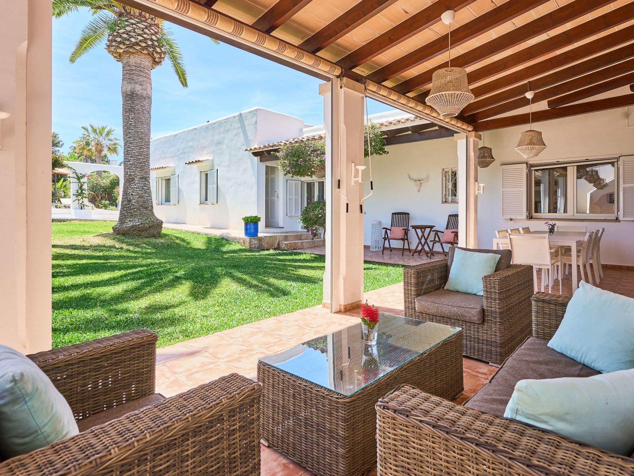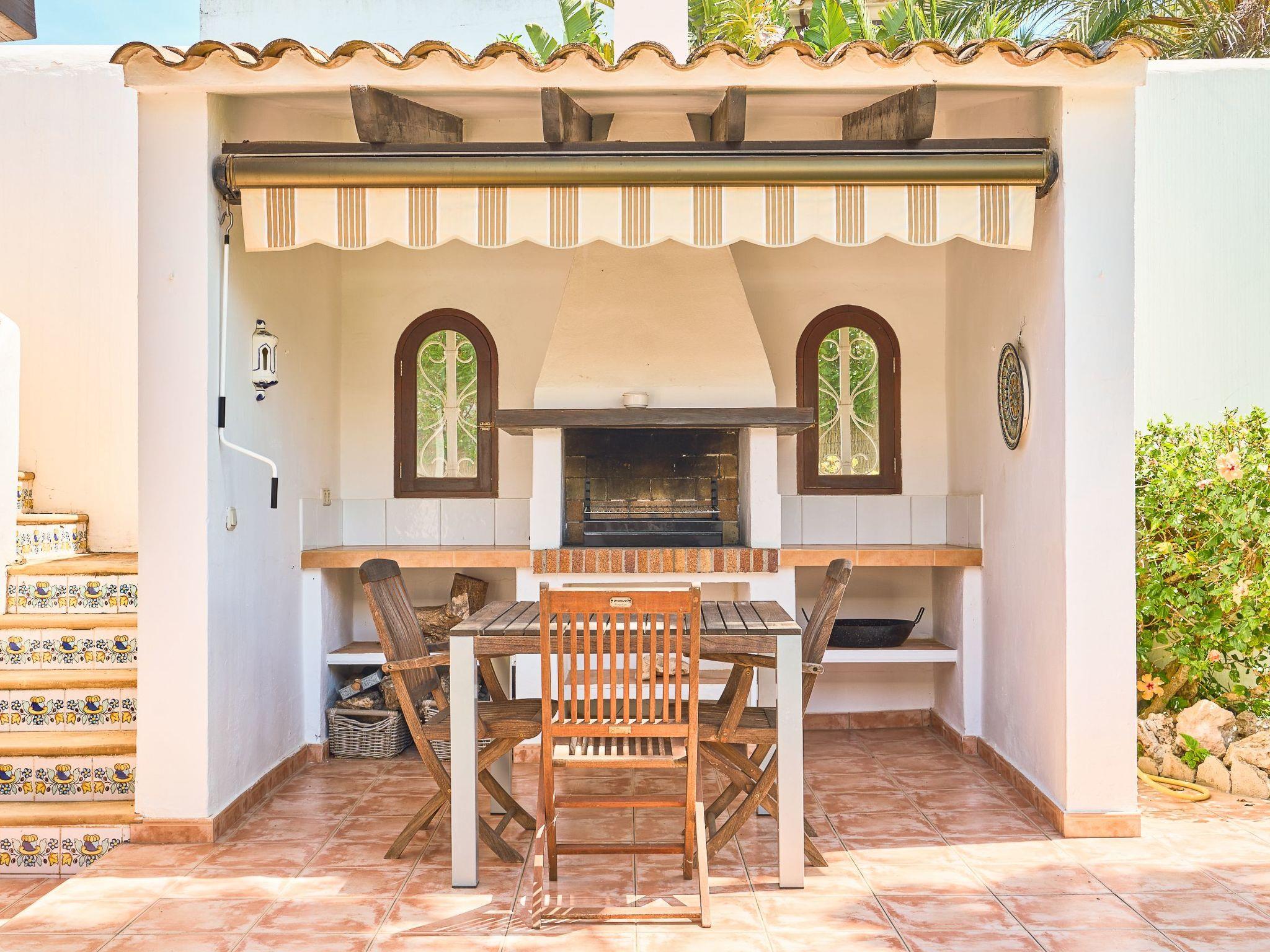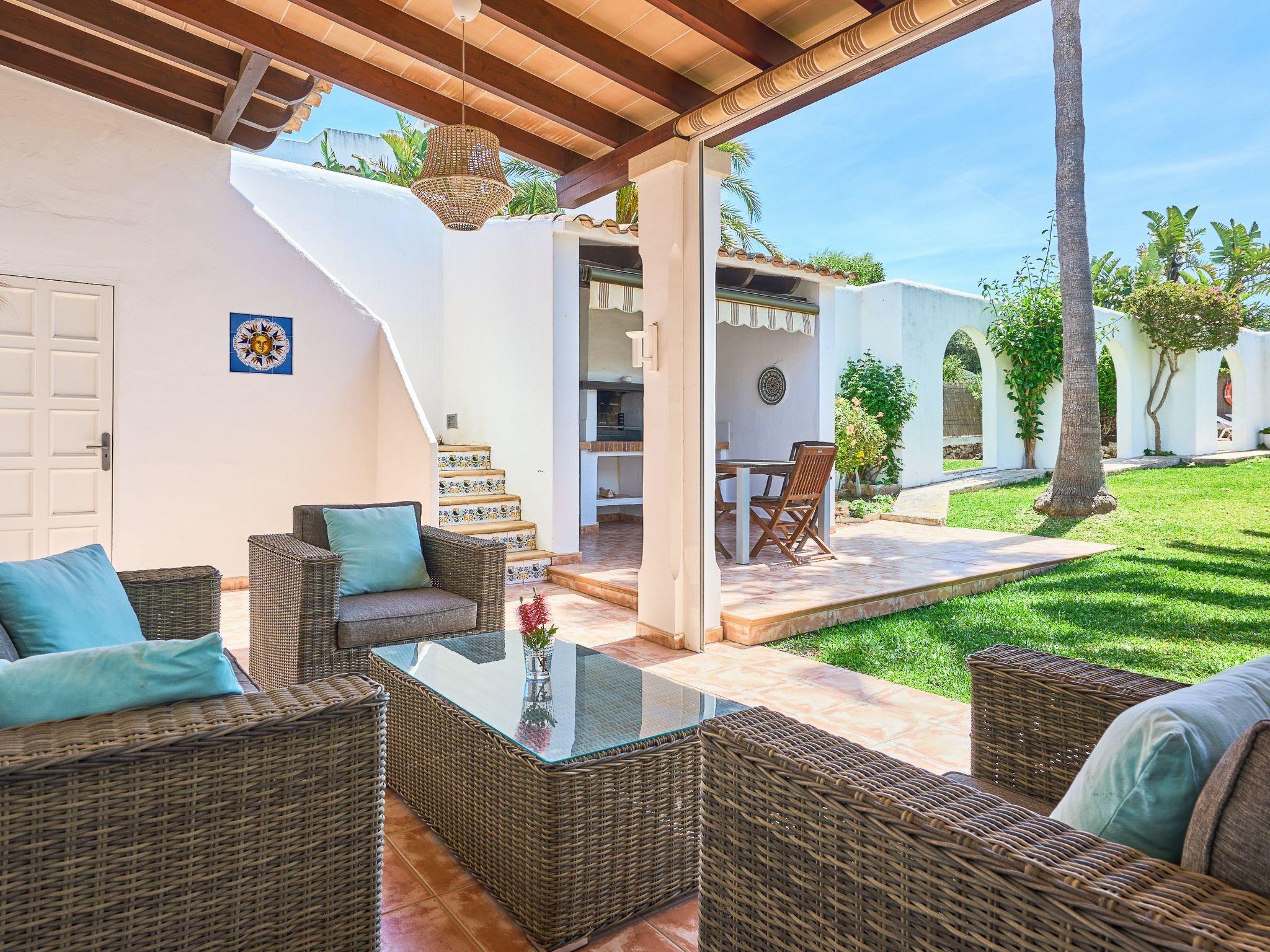 The outdoor area of this holiday home is a real highlight. The terrace with a brick barbecue invites you to enjoy al fresco meals together, while the adjoining lawned garden leads to the pool area, which is exclusively for your use. Here you can relax in complete privacy and enjoy the Mallorcan sunshine.