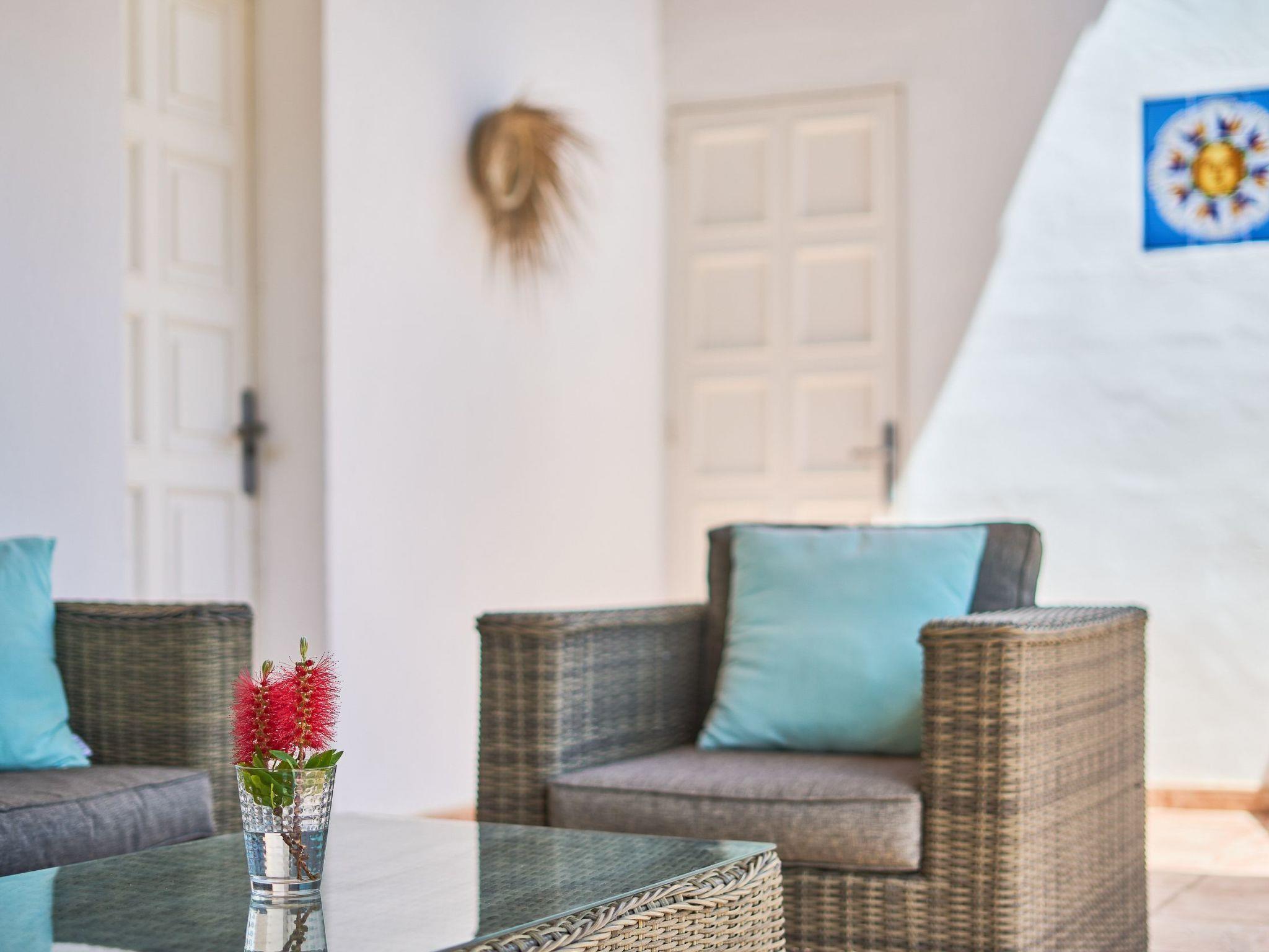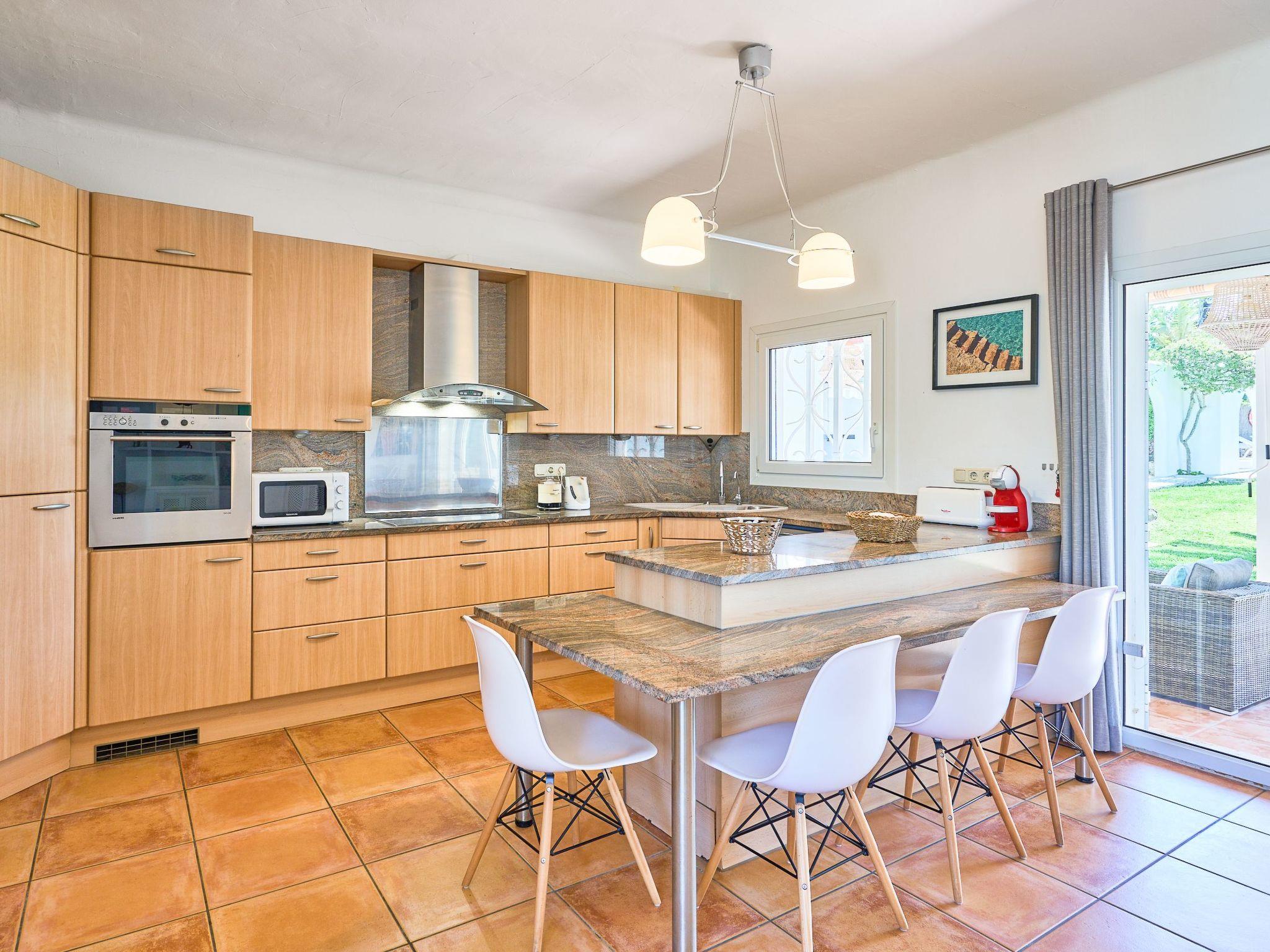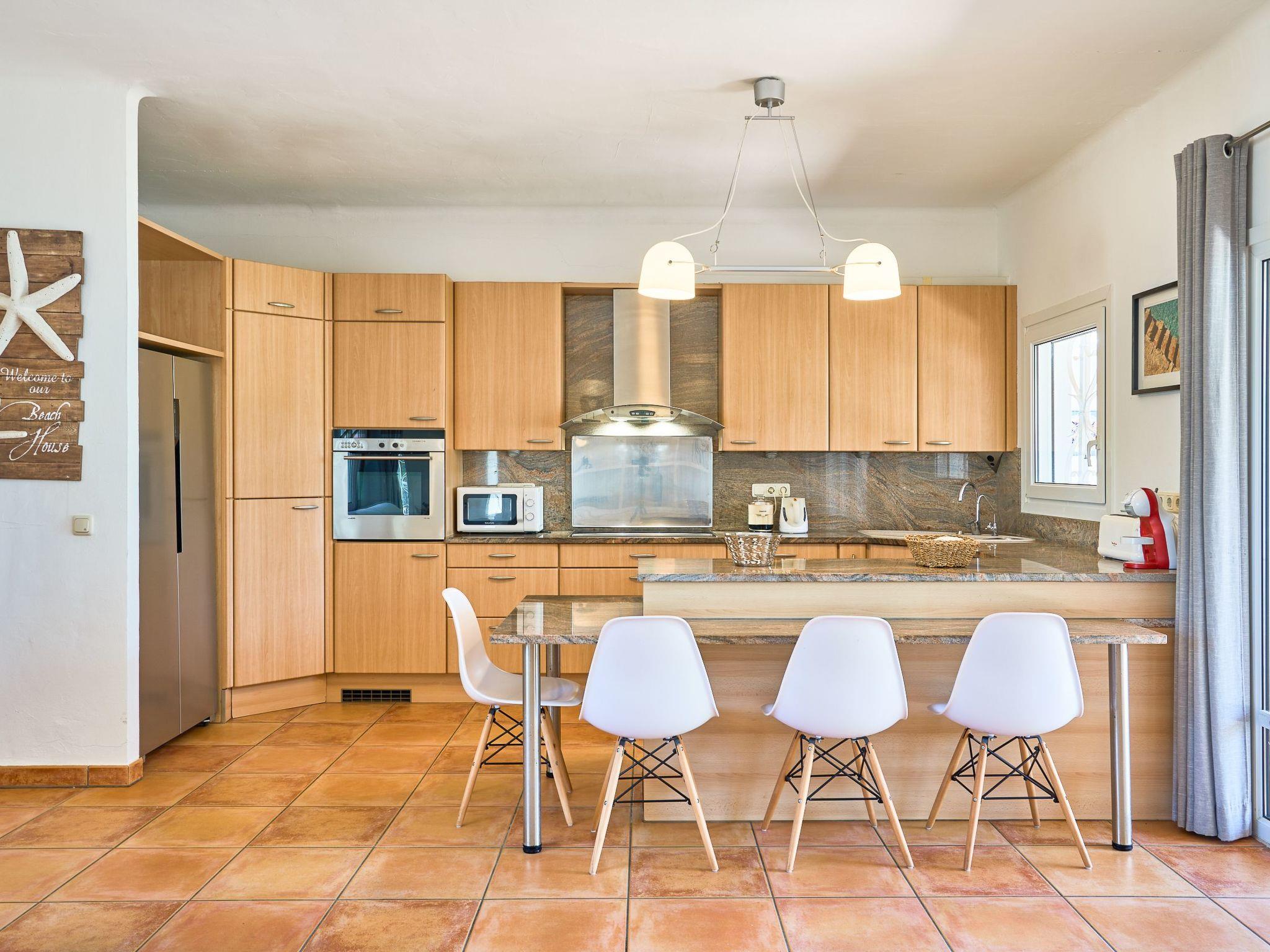 The outdoor area of this holiday home is a real highlight. The terrace with a brick barbecue invites you to enjoy al fresco meals together, while the adjoining lawned garden leads to the pool area, which is exclusively for your use. Here you can relax in complete privacy and enjoy the Mallorcan sunshine.