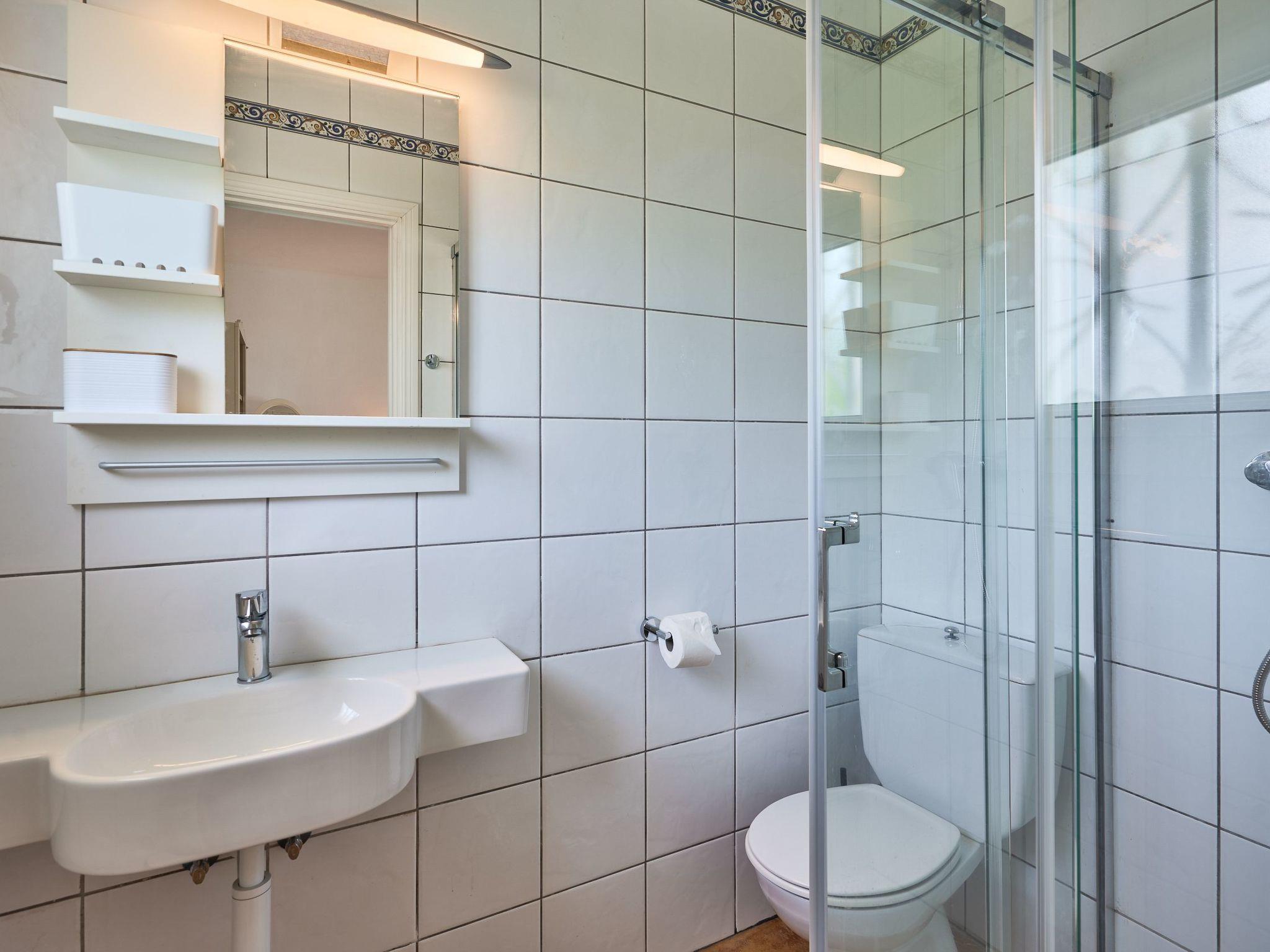 The interior of the holiday home is spacious and offers a unique combination of comfort and functionality. The hall opens onto a large room with a relaxation area and an open-plan kitchen with dining area. The kitchen is equipped with a ceramic hob, an espresso pot, a kettle and a dishwasher, making self-catering a pleasure. A bedroom with double bed and en suite bathroom, including separate bath and shower, completes the interior.