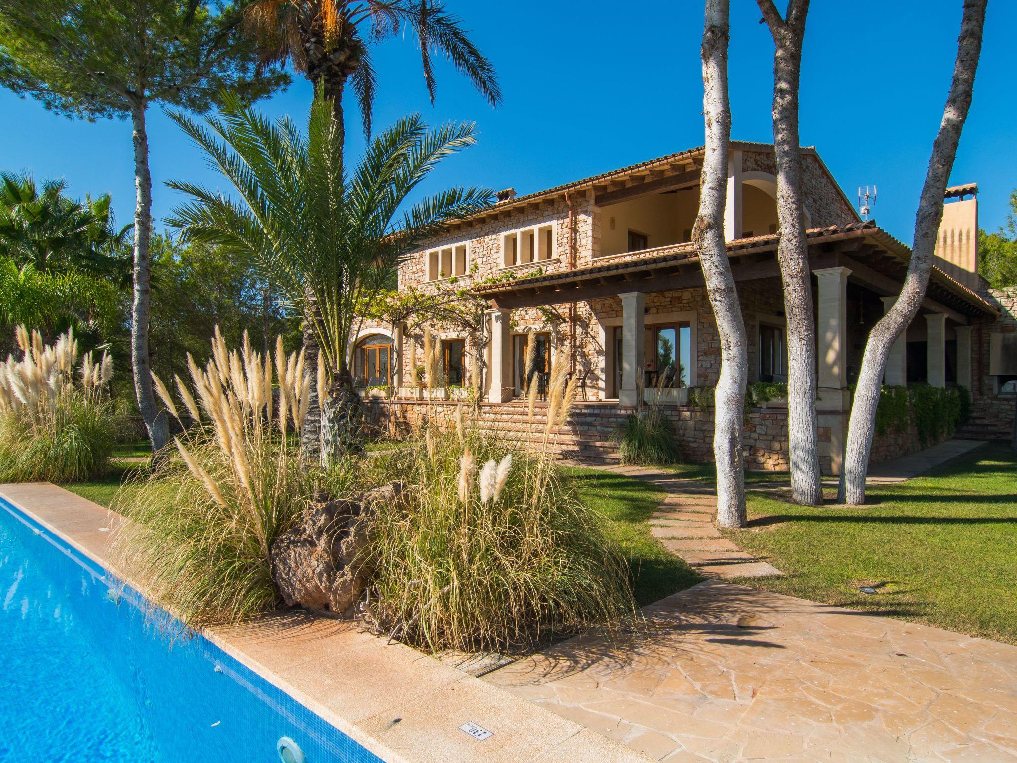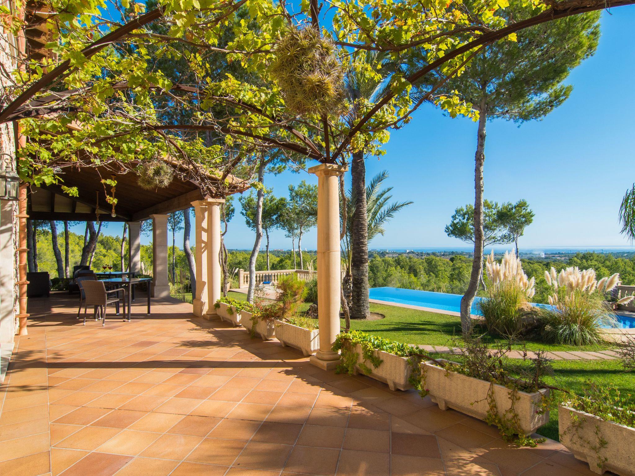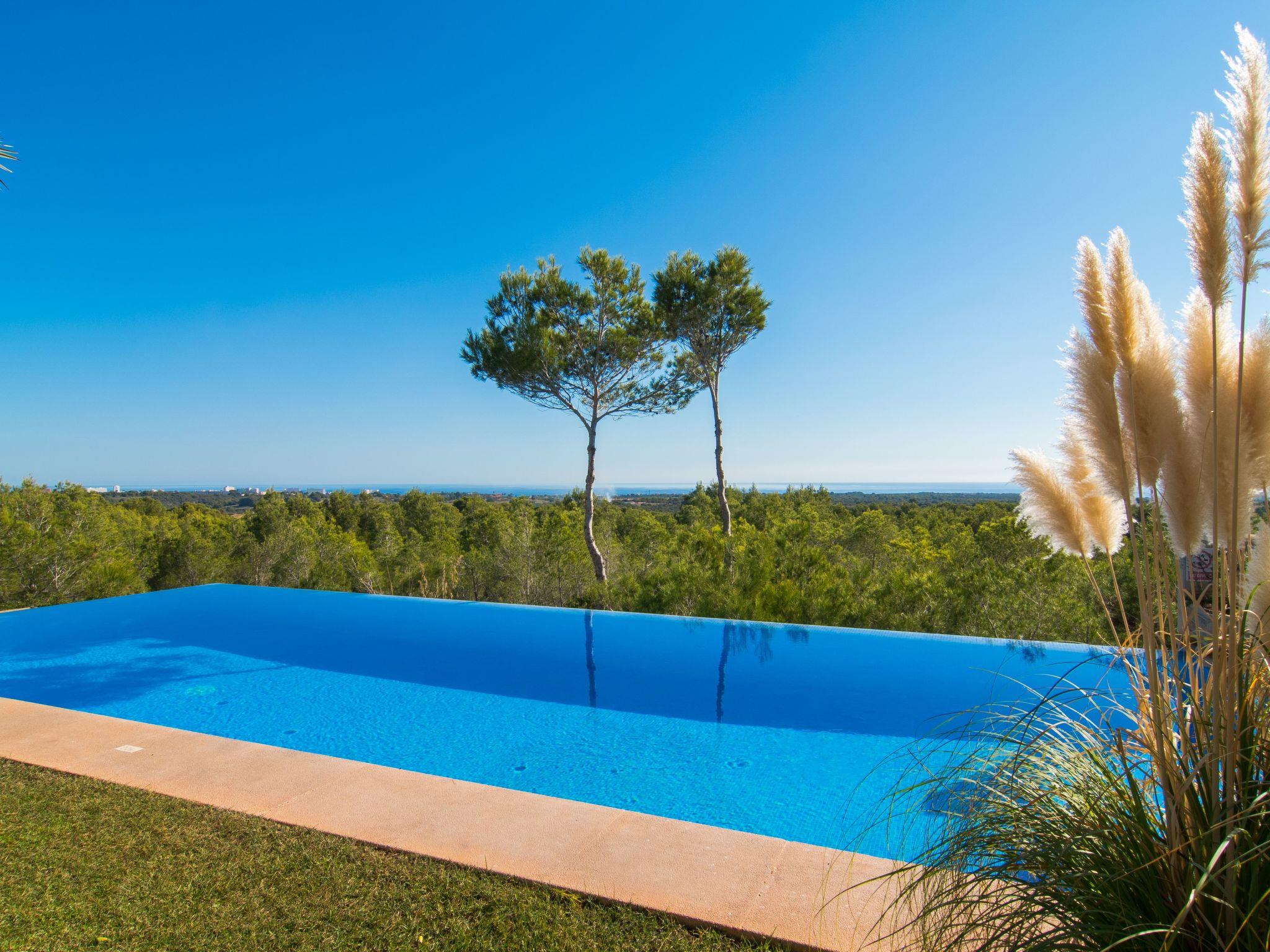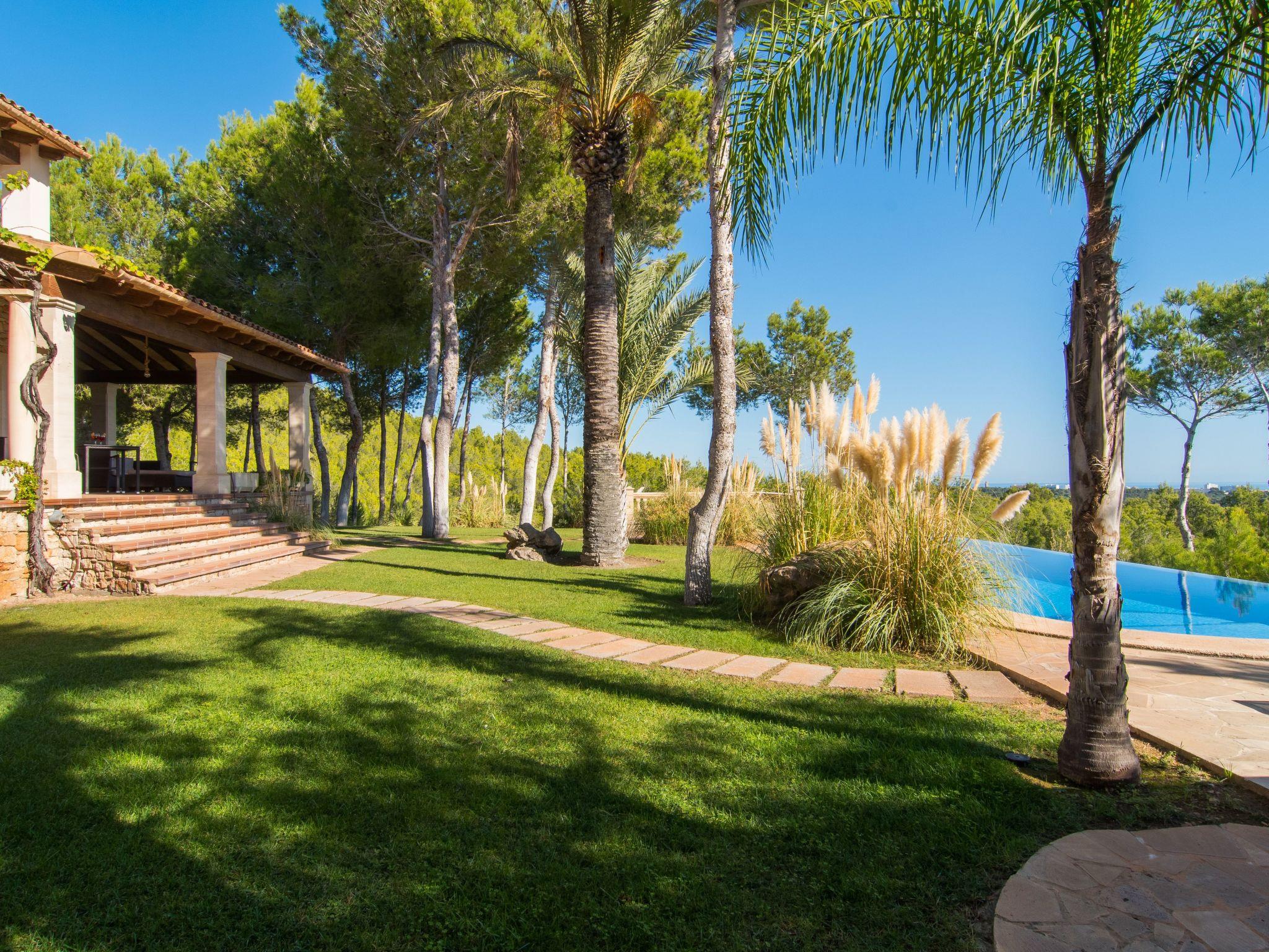 From terrace a few steps lead down to the garden lawns with mature Palm trees and the magnificent "infinity" swimming pool and comfortably furnished terraces. From here are fabulous far reaching views across Pine scented woods towards Porto Colom harbour and sea.