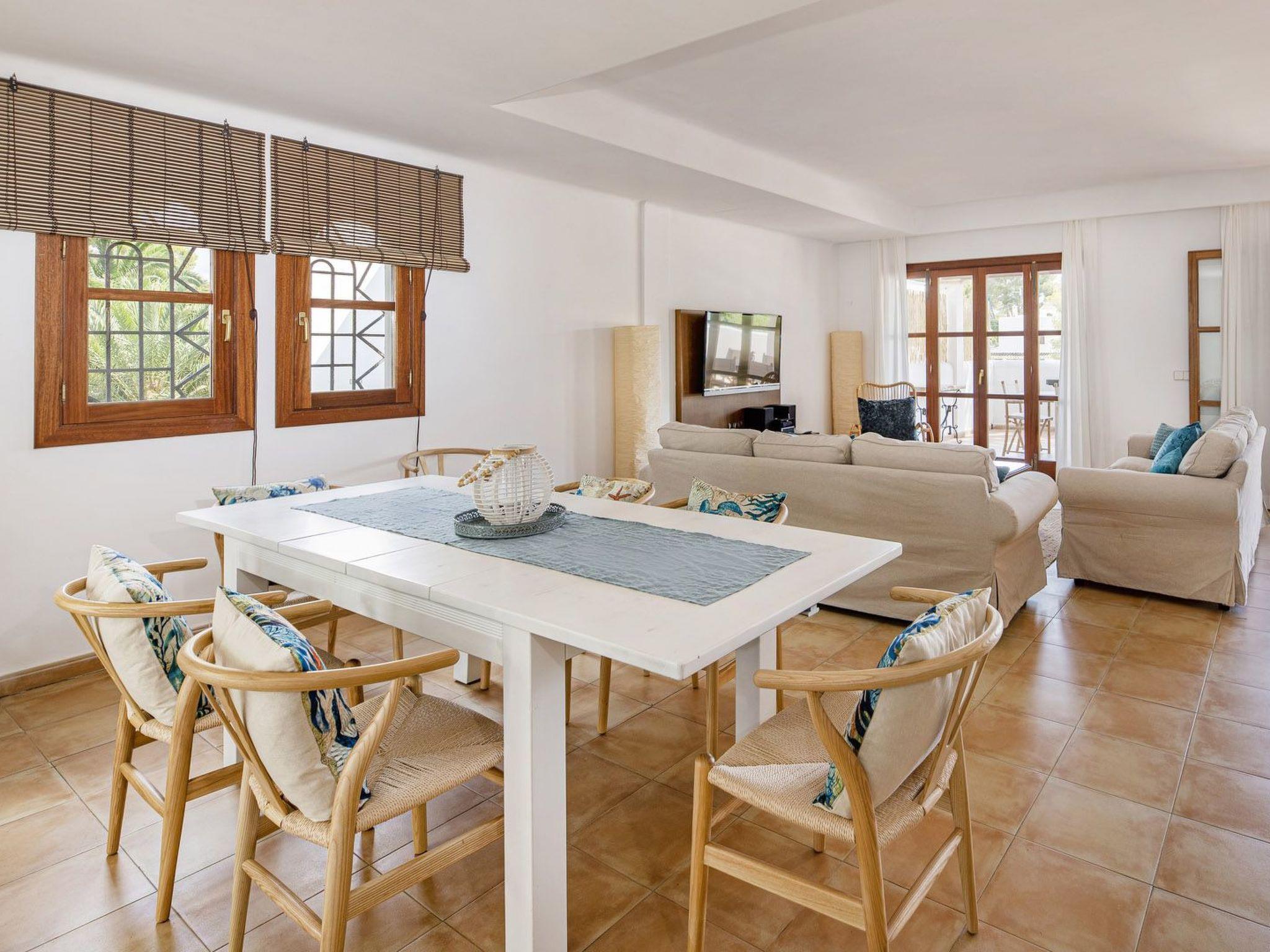 It has six spacious bedrooms, one of them junior suite, all of them with complete bathroom and exterior terrace. The villa also has a swimming pool and solarium, air conditioning, satellite TV, safe and wifi.