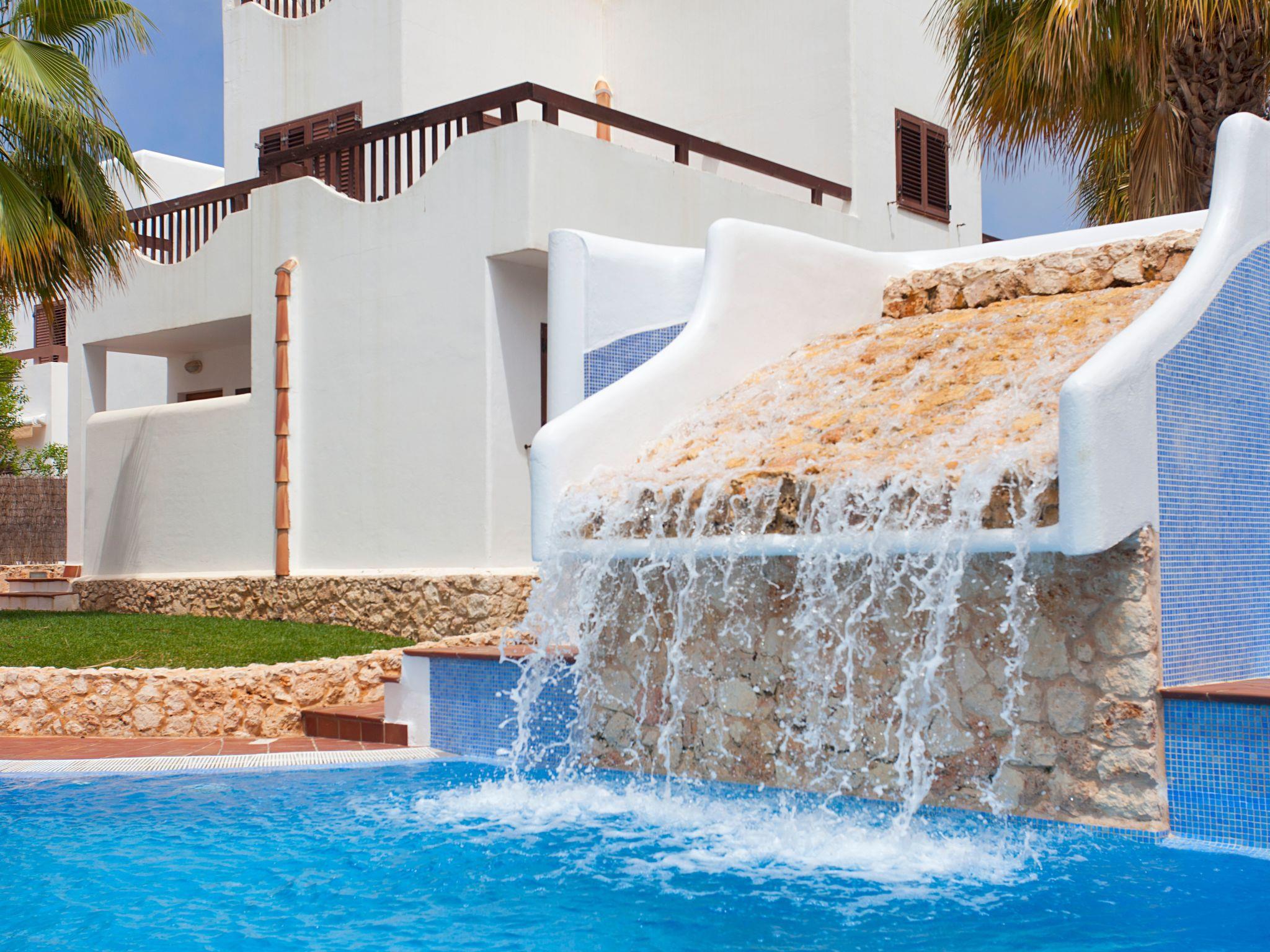 House 5 of the complex "La perla de Cala d'Or", consisting of 9 houses each with 5 bedrooms with a communal garden area, a swimming pool with a waterfall and a children's pool, a communal garden, this house also has its own garden with sun loungers and a charcoal barbecue.Short description 1No. of kitchens : 1SurroundingsPossibility of rentals : Bike hire, Car hireGarden and outdoorsGarden equipment : BarbecueLeisure facilities at the accommodation : Swimming pool, Communal outdoor pool