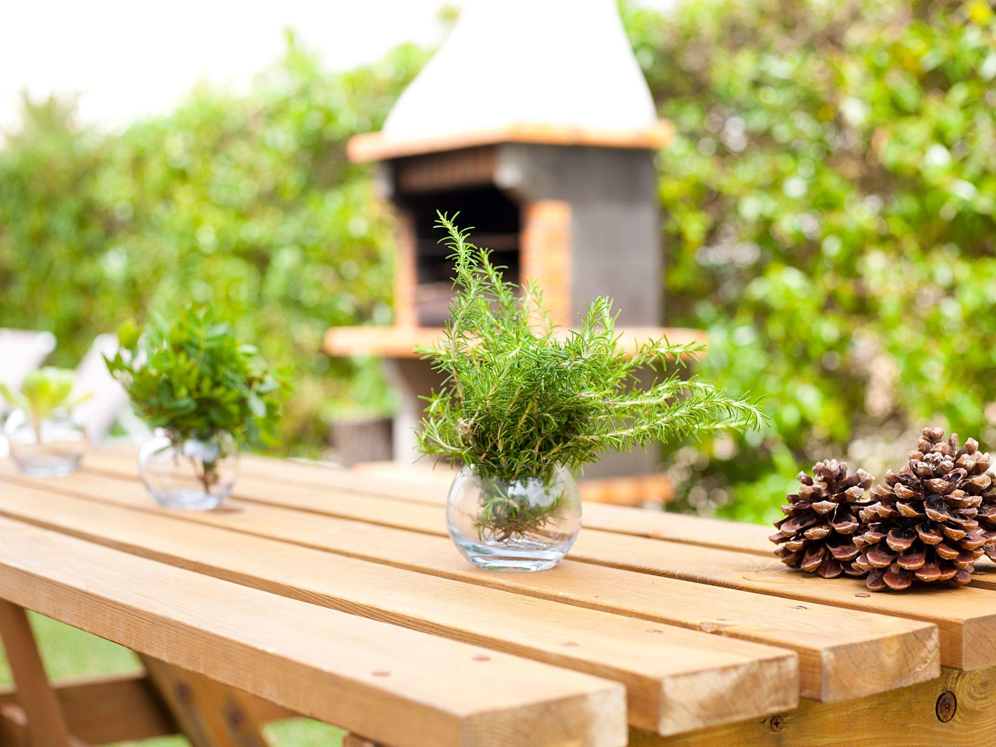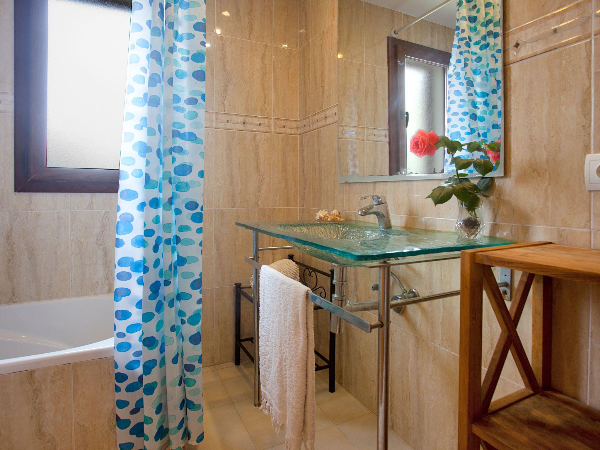 House 5 has 2 floors, on the ground floor there are 2 bedrooms, a bathroom with bathtub, living room with dining table and chairs, 2 sofas and flat screen TV, kitchen with breakfast bar. It has access to the terrace with chairs and table, it has its own private garden with sun loungers and a charcoal barbecue. The kitchen is fully equipped, microwave, kettle, ceramic hob and kitchenware, has an access door to the laundry room with washing machine, fridge and dishwasher. On the first floor there are 3 bedrooms, one double, one with 2 single beds and one with a bunk bed, shared bathroom with bathtub, a terrace and a staircase with access to the solarium where you can contemplate the mountains and see a little of the sea. All rooms have air conditioning and also in the living room. The house has high power Wifi, an alarm, safe, smoke detector, fire extinguisher, in each bathroom we have a hairdryer, we also leave soap for hands and one for the shower. We leave 3 towels for each person, one pool towel and two bath towels.