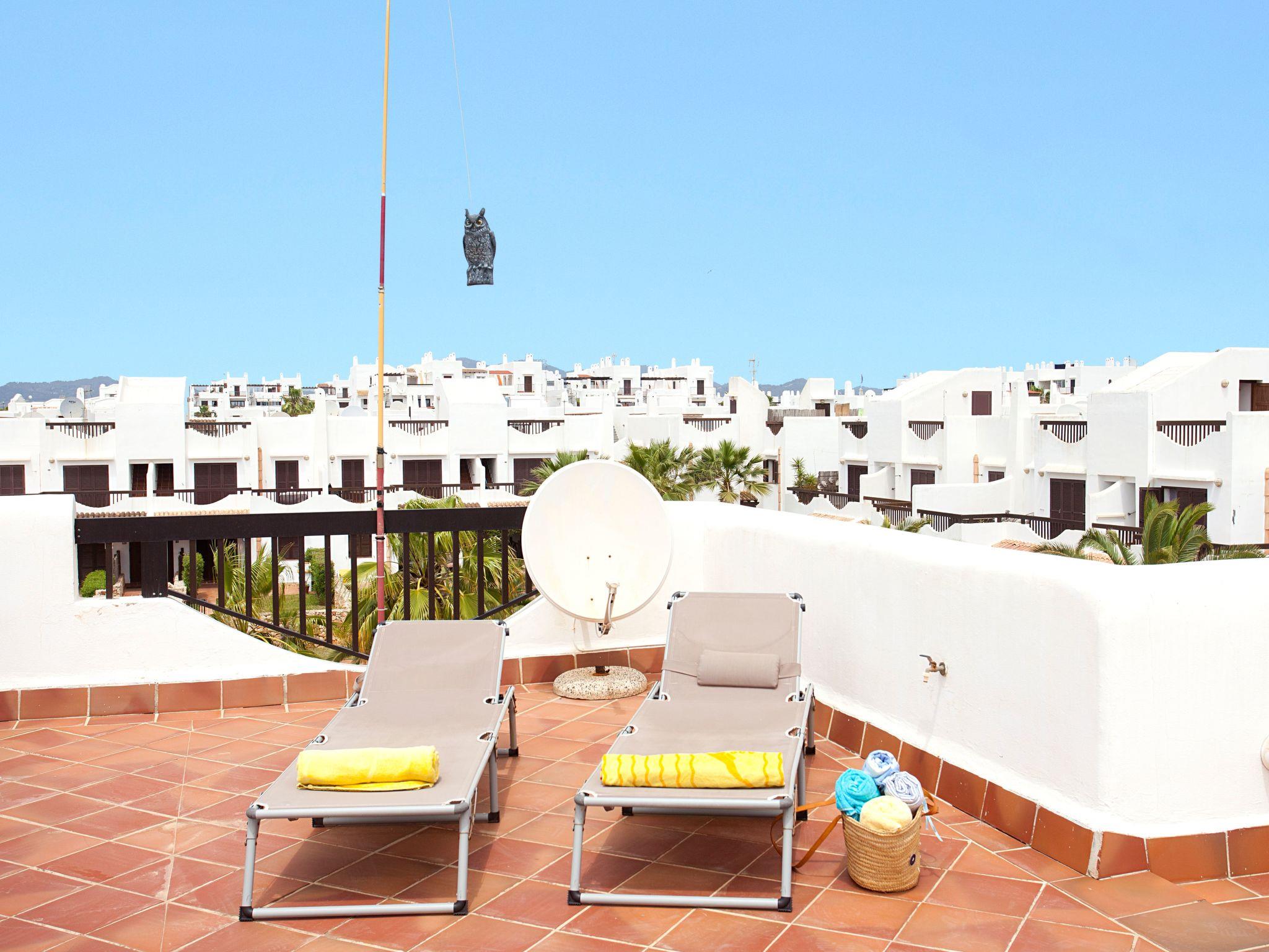 We have a fully fenced private garden, with its sun loungers, tables and chairs for eating, a barbecue, outside shower and we have a gate that you can go directly to the pool without entering the house, on the first floor terrace we have a table and chairs for relaxing and on the roof terrace we have some sun loungers overlooking the pools and you can see the sea horizon from afar. The communal pools, one for the children, a large pool with a waterfall and a garden area to play in. At the entrance of the complex each house has its own car park, ours is number 5.