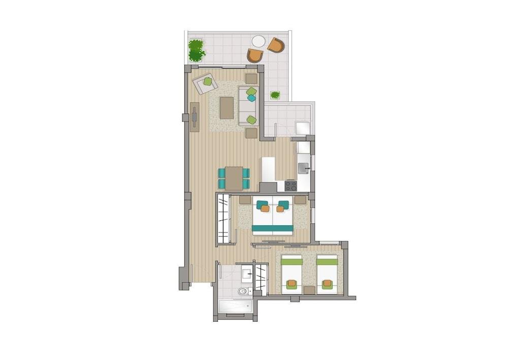 I 3. etasje: (entré, Stue(1 persons sovesofa, TV, DVD-spiller, radio, CD-spiller, klimaanlegg), Kjøkken(vedovn, komfyr med kokeplater, vannkoker, brødrister, mikrobølgeovn, oppvaskmaskin, kjøleskap, fryser, klimaanlegg), soveværelse(dobbeltseng, klimaanlegg), soveværelse(dobbeltseng, klimaanlegg), bad(dusj, håndvask, toalett, Inkl. håndklær), oppbevaringsrom(vaskemaskin, strykebrett, strykejern)) vaskemaskin, balkon, hagemøbler, strykebrett, strykejern