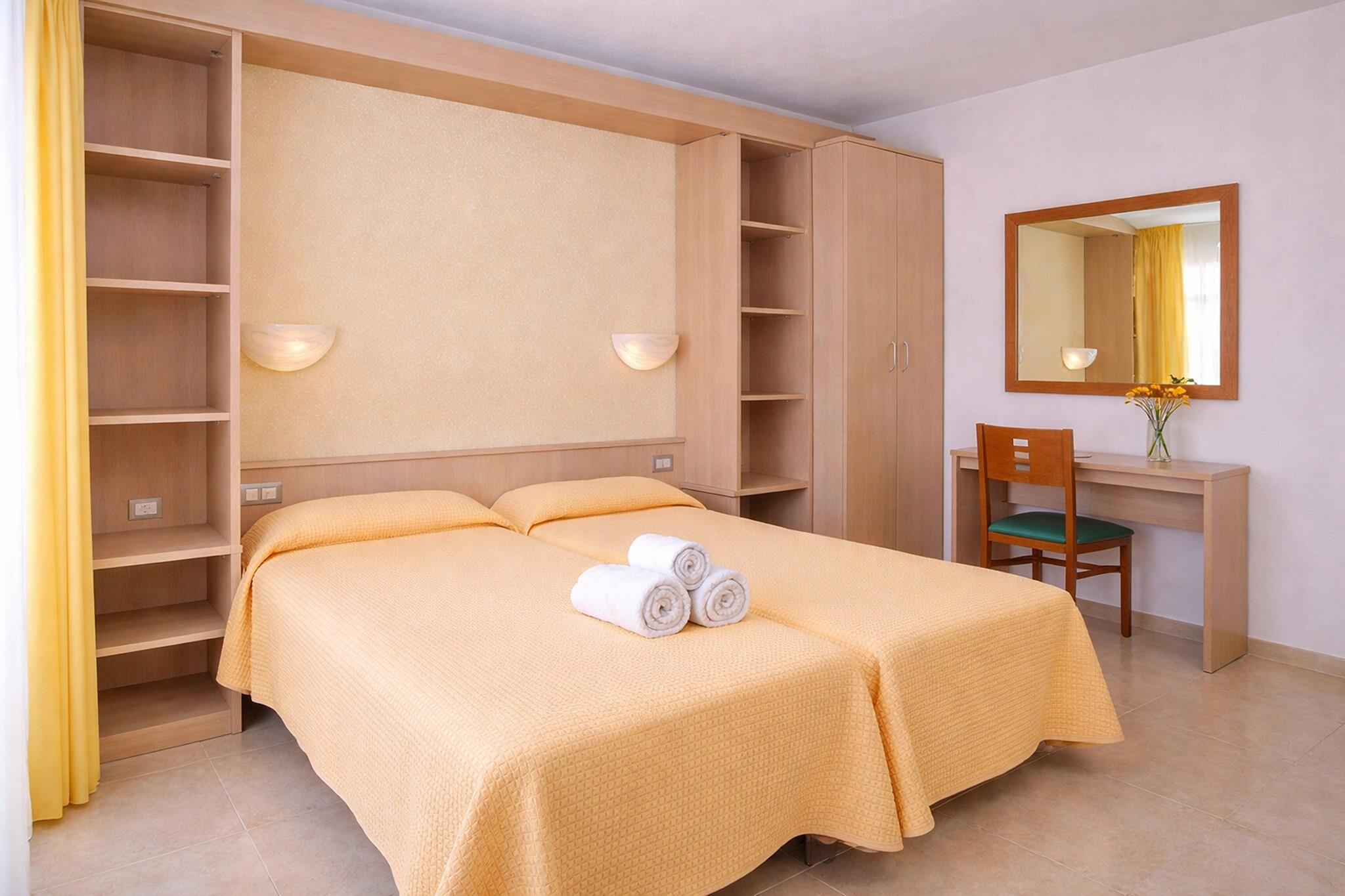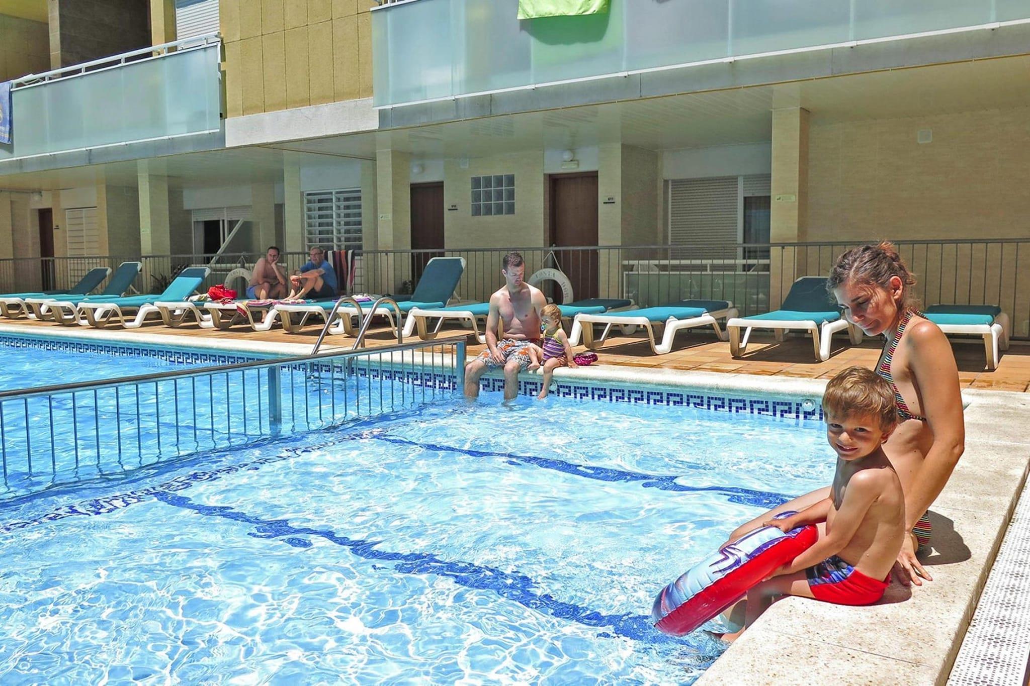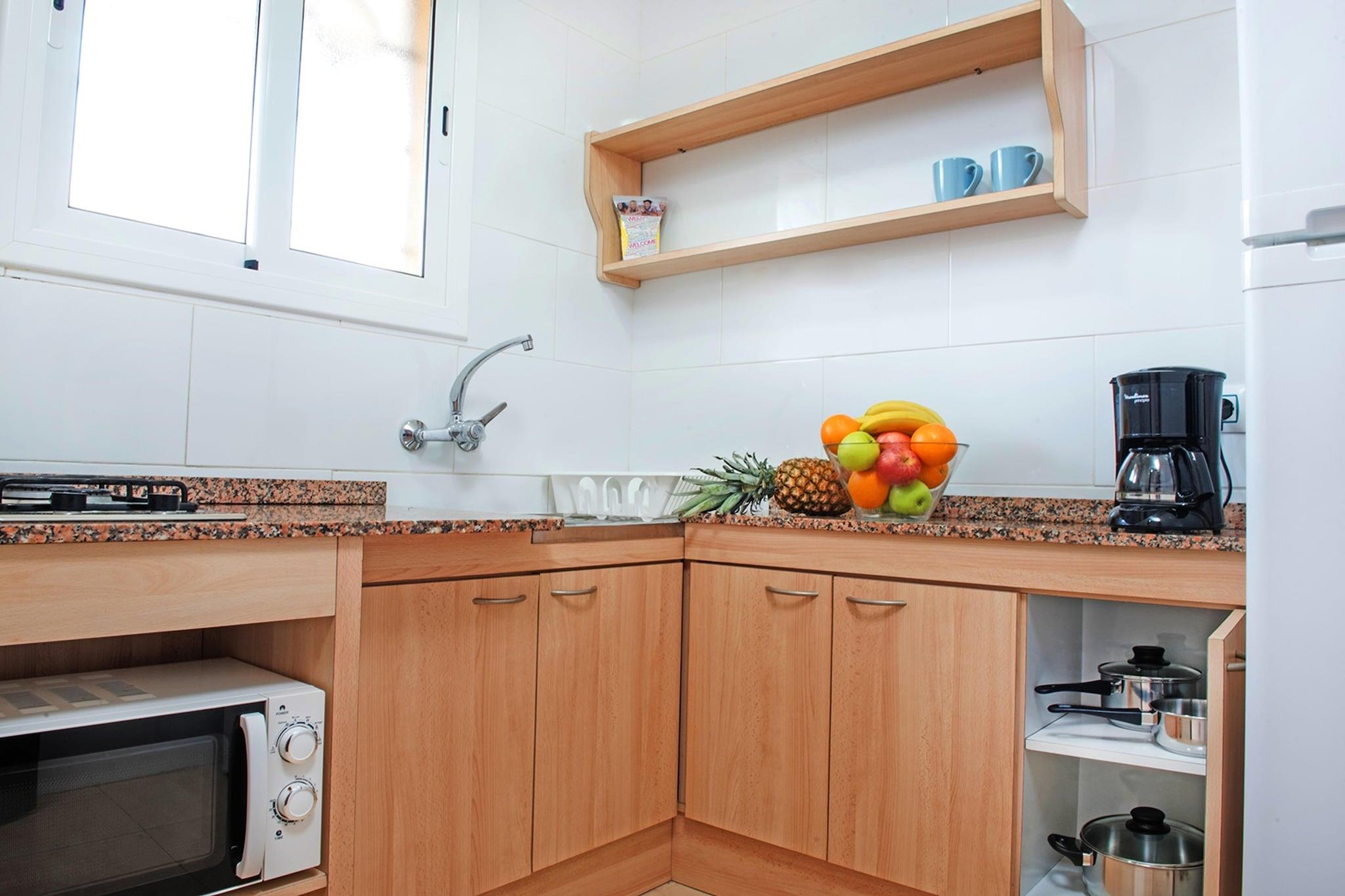 Denne innbydende leiligheten tilbyr et komfortabelt opphold kun 700 meter fra stranden og 500 meter fra det livlige sentrum. Gjestene kan nyte rom med klimaanlegg, gratis Wi-Fi, TV med internasjonale kanaler og en møblert balkong, de fleste med utsikt over bassenget. Den kjæledyrvennlige eiendommen har et romslig soverom med to enkeltsenger, en stue med sovesofa og en sammenleggbar seng, noe som gjør den ideell for familier eller små grupper. Du kan leie safe, og halvpensjon tilbys på et nærliggende hotell. Området rundt byr på uendelig underholdning, fra naturskjønne strandturer til travle markeder og sjarmerende kafeer kun en kort spasertur unna. Et supermarked ligger beleilig til 100 meter fra eiendommen, noe som sikrer enkel tilgang til nødvendigheter. Gjestene kan utforske de lokale butikkene eller slappe av på et nærliggende spa. Den vakre kystsettingen er perfekt for avslapning, mens eventyrlystne kan nyte ulike utendørsaktiviteter. Fasilitetene på stedet inkluderer en velholdt hage med svømmebasseng, plaskebasseng og solterrasse med solsenger. Innendørsfasiliteter inkluderer et basseng, en snackbar med biljard og et TV-hjørne. For rekreasjon kan du bruke badmintonbanen, petanquebanen eller bordtennisbordet. Leiligheten har også en kjøkkenkrok med elektriske kokeplater, mikrobølgeovn og et moderne bad med hårføner.