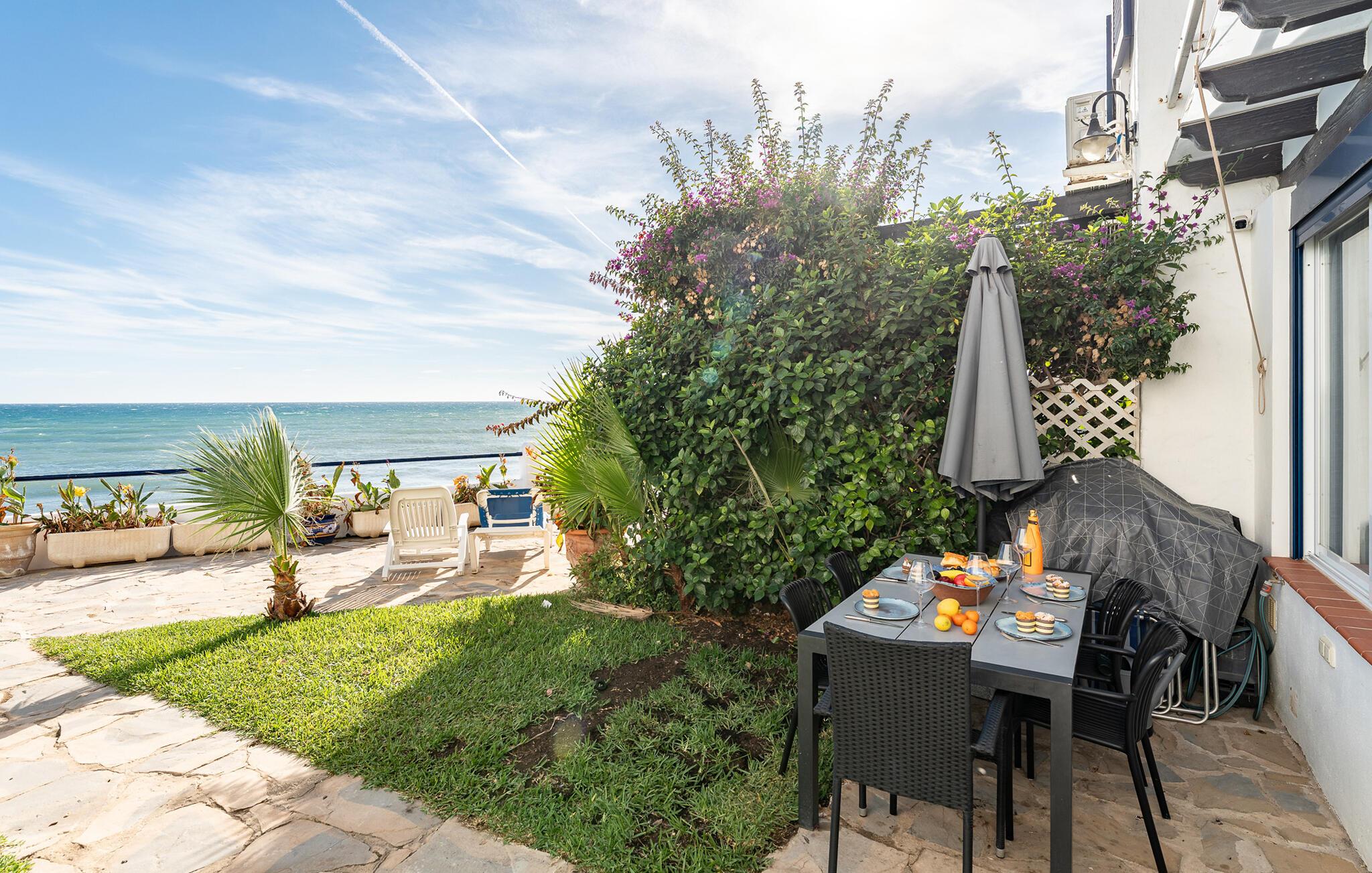 Gå ut på terrassen og nyt utsikten over havet. Slå deg ned ved spisebordet eller slapp av i solsengene i det lille hageområdet. Den direkte tilgangen til det velholdte, felles bassengområdet inviterer deg til forfriskende stunder. Gå bare noen få skritt videre, så kommer du til stranden, hvor du kan nyte solen og lyden av havet.