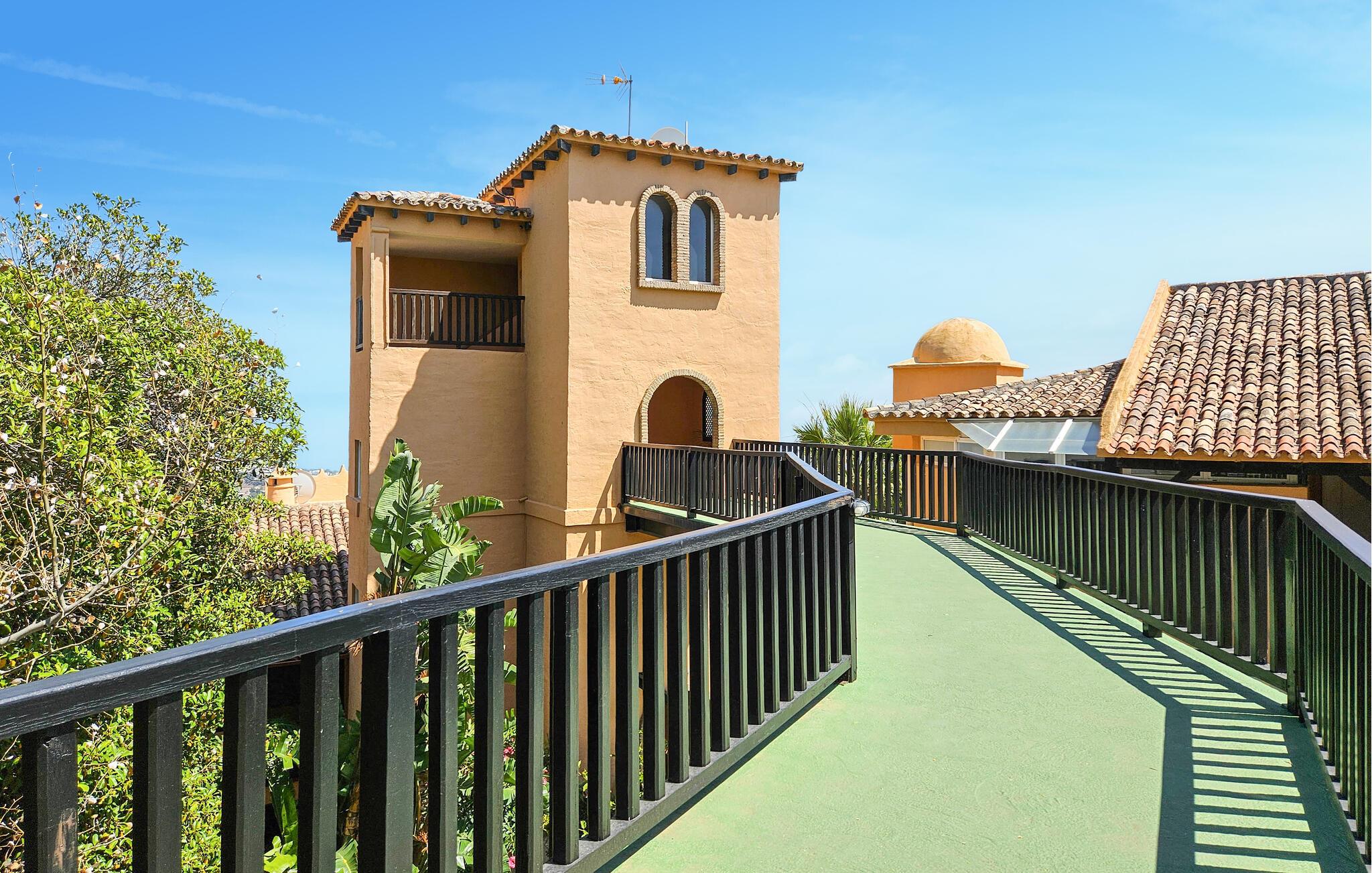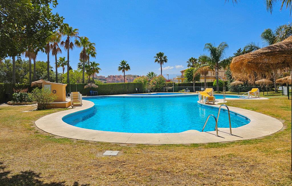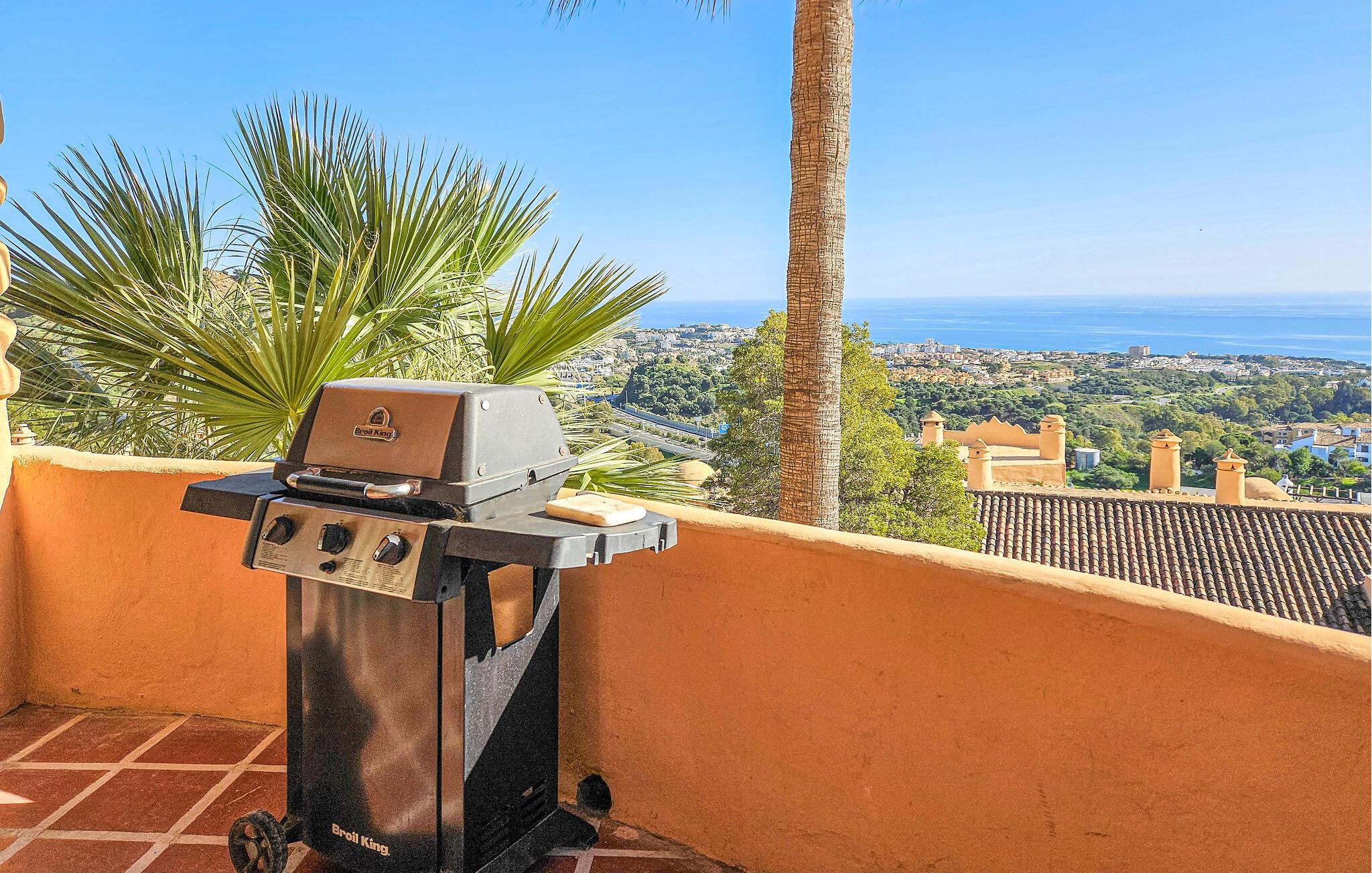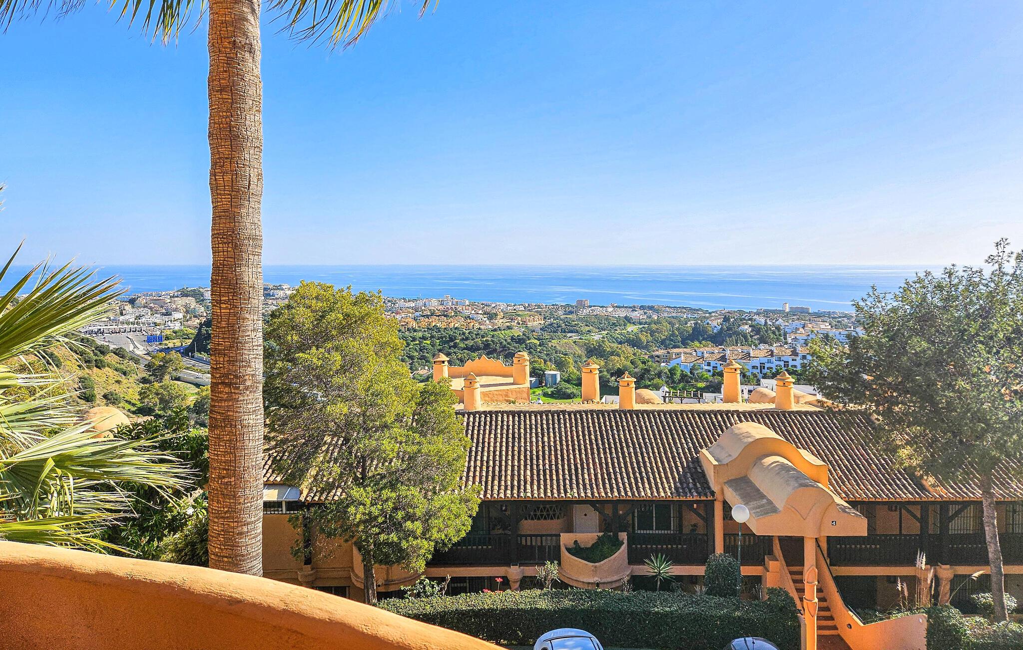 Denne luksuriøse og solrike ferieleiligheten med 3 soverom ligger i 'El Portón'-komplekset i Sitio de Calahonda og tilbyr fantastisk utsikt fra stuen og hovedsoverommet over det omkringliggende området til Middelhavet. Komplekset har omfattende velstelte hager og 2 store bassengområder (hvorav ett er uten badevakt og er åpent til slutten av oktober) samt et barnebasseng og lekeområde. Det tilbyr også utendørs parkering innenfor komplekset. Restauranter er innen gangavstand, så vel som med bil.