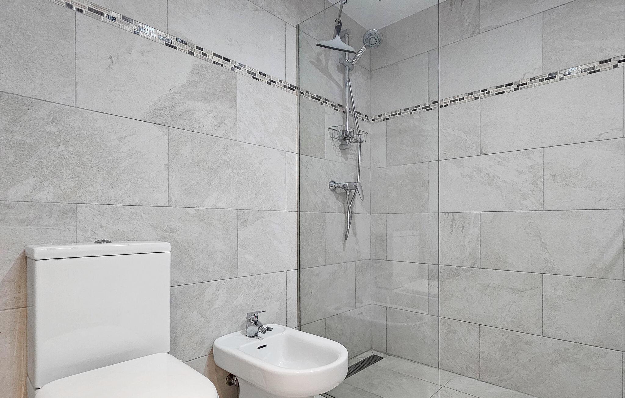 - WC med varmt og kaldt vann, Hånddusj, badekar og dusj