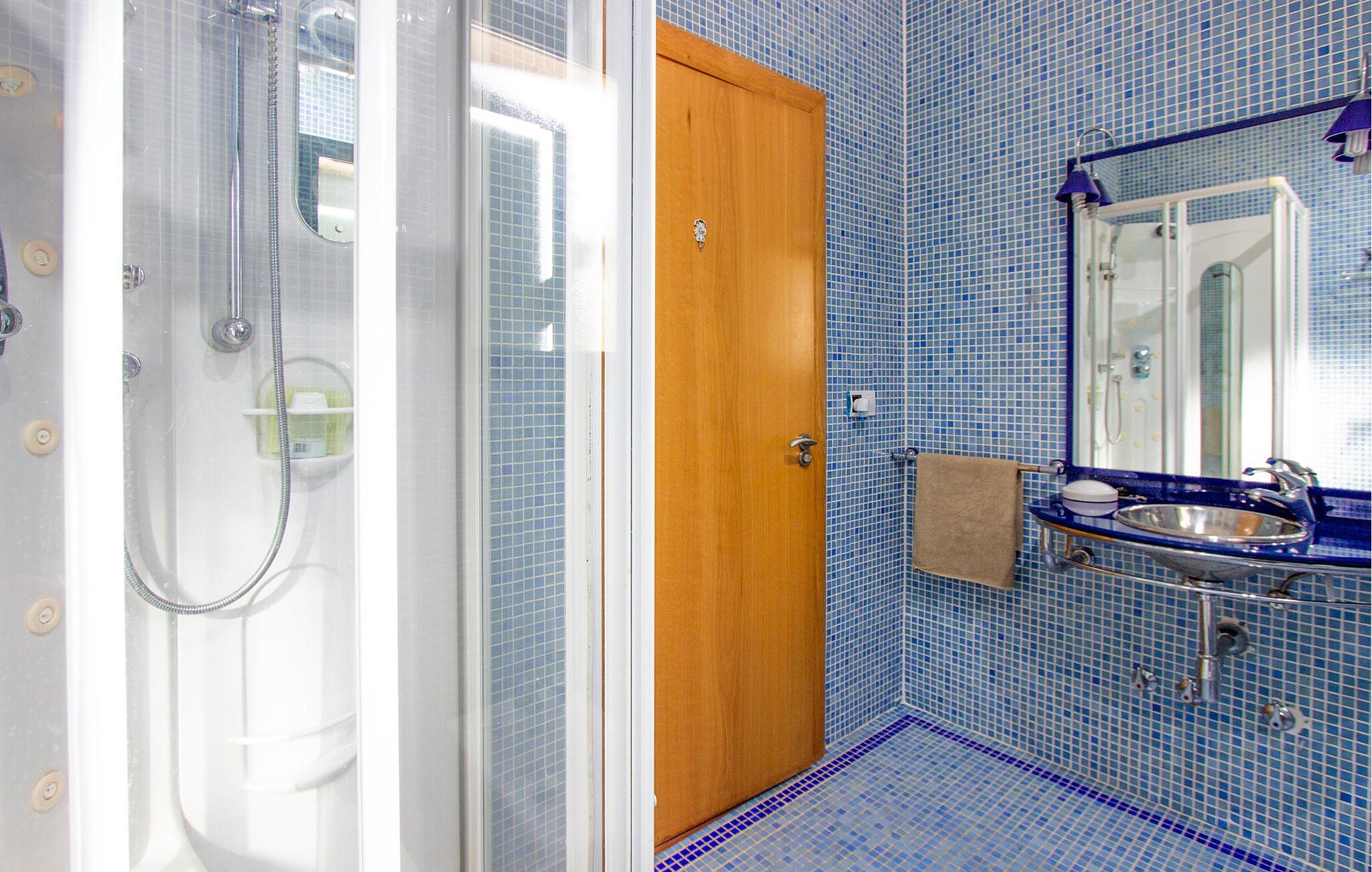 - WC med varmt og kaldt vann, Dusj