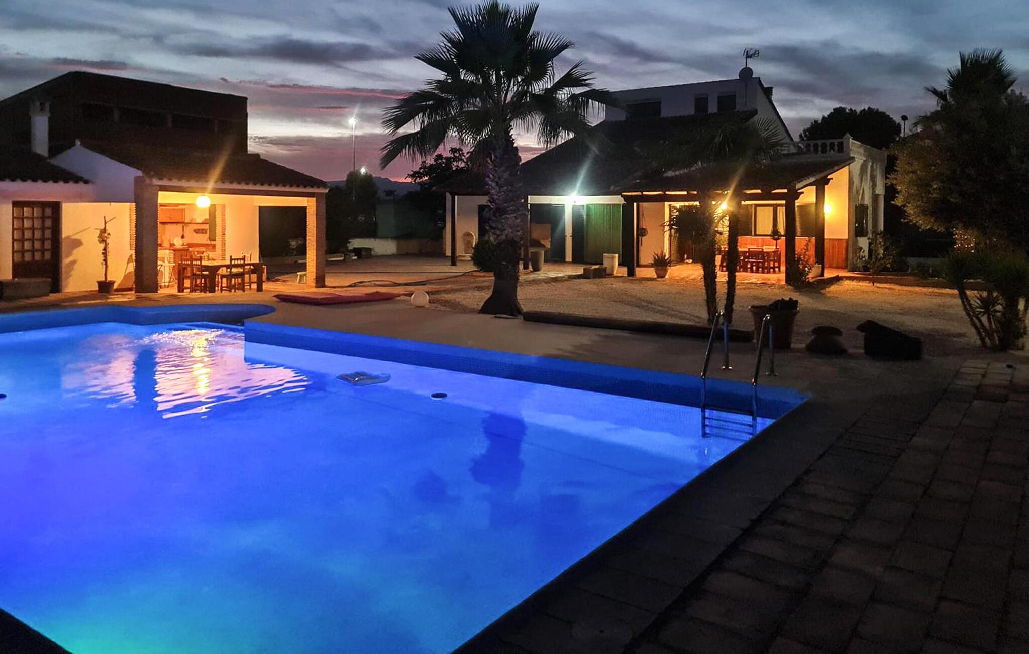 Denne romslige ferieboligen i Calasparra består av to separate hus og har plass til en stor familie eller en vennefamilie. De lyse, komfortable møblene og den luftige atmosfæren sørger for en avslappende ferie. Nyt middelhavslivet på sommerkjøkkenet med den store, overbygde terrassen, perfekt for felles måltider. Svømmebassenget innbyr til avkjøling mens du slapper av på de omkringliggende solsengene eller lar blikket vandre over de rolige omgivelsene.