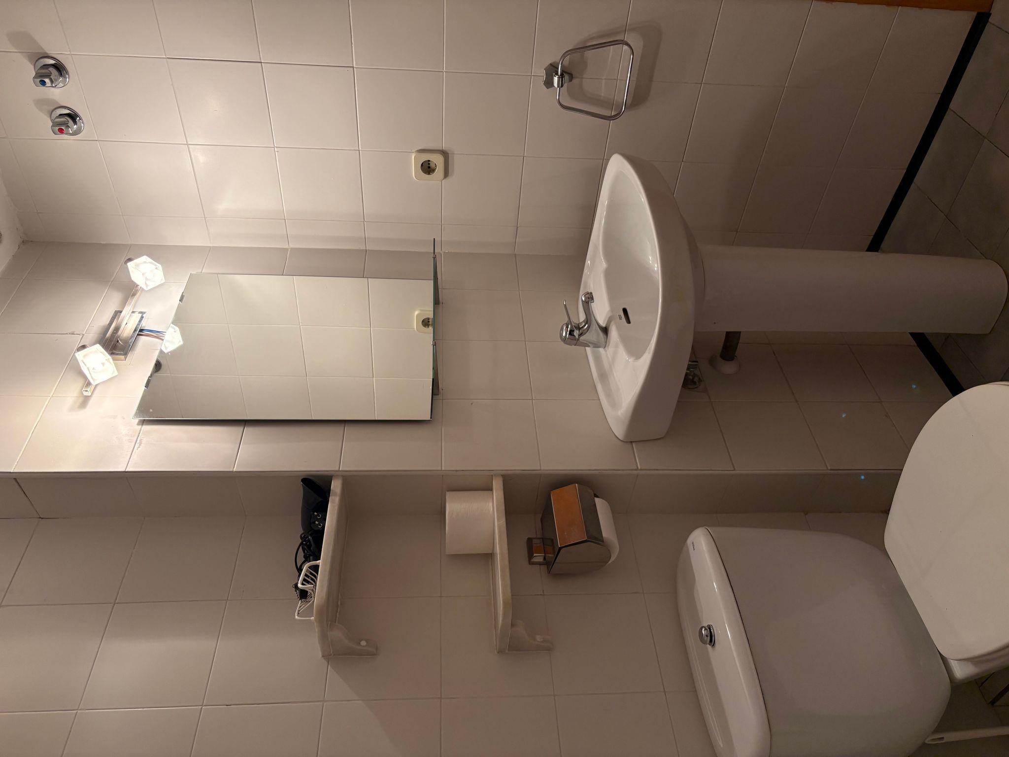 Inside, the flat combines functionality and comfort to ensure a pleasant stay. It consists of a double bedroom that promises a restful night's sleep. In addition, a folding bunk bed located in the hallway offers additional space to rest. The kitchen, the heart of this home, is fully equipped with ceramic hob and all the necessary utensils, complemented by a courtesy cleaning kit. The washing machine for exclusive use is another of the benefits that will facilitate your stay, allowing you to travel light and carefree.