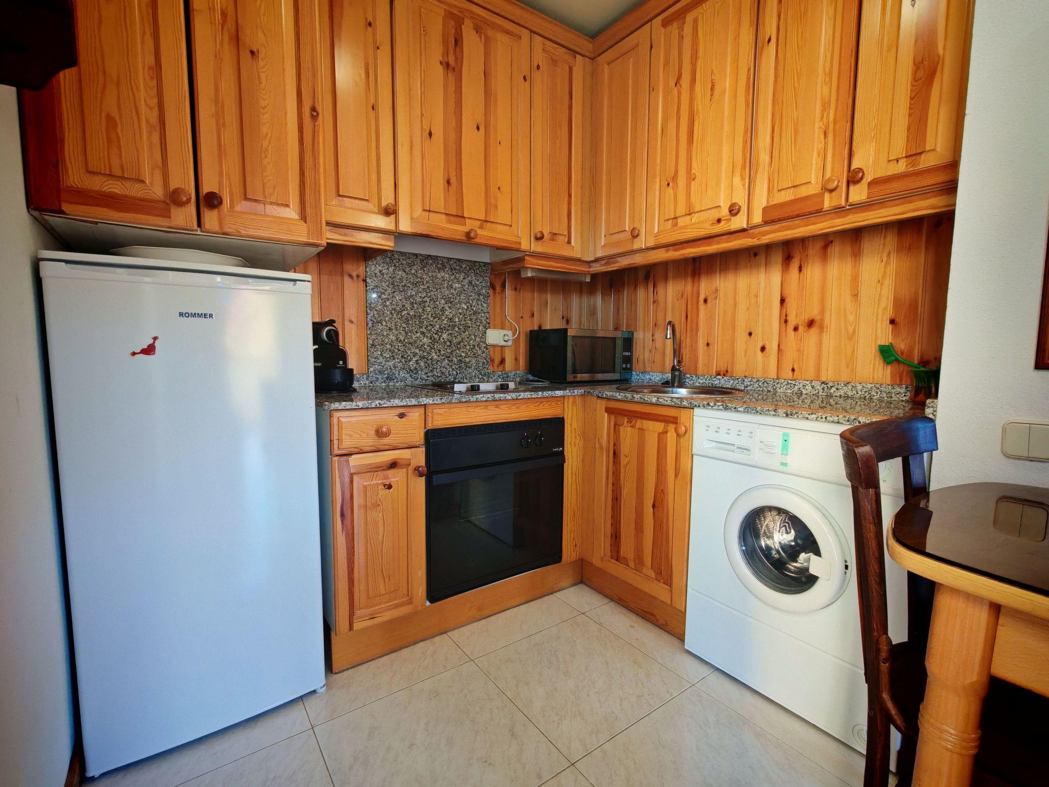 The interior of the flat is as cosy as it is functional, offering a soothing space after an adventurous day. Its layout includes a bedroom with a comfortable double bed and a living room with a double sofa bed, comfortably accommodating up to four people. The unit has a washing machine for exclusive use, ideal for long stays or for cleaning equipment after a day on the slopes. Equipped with a practical ceramic hob, the flat makes it easy to prepare home-cooked meals, allowing you to enjoy the comfort of your own space.