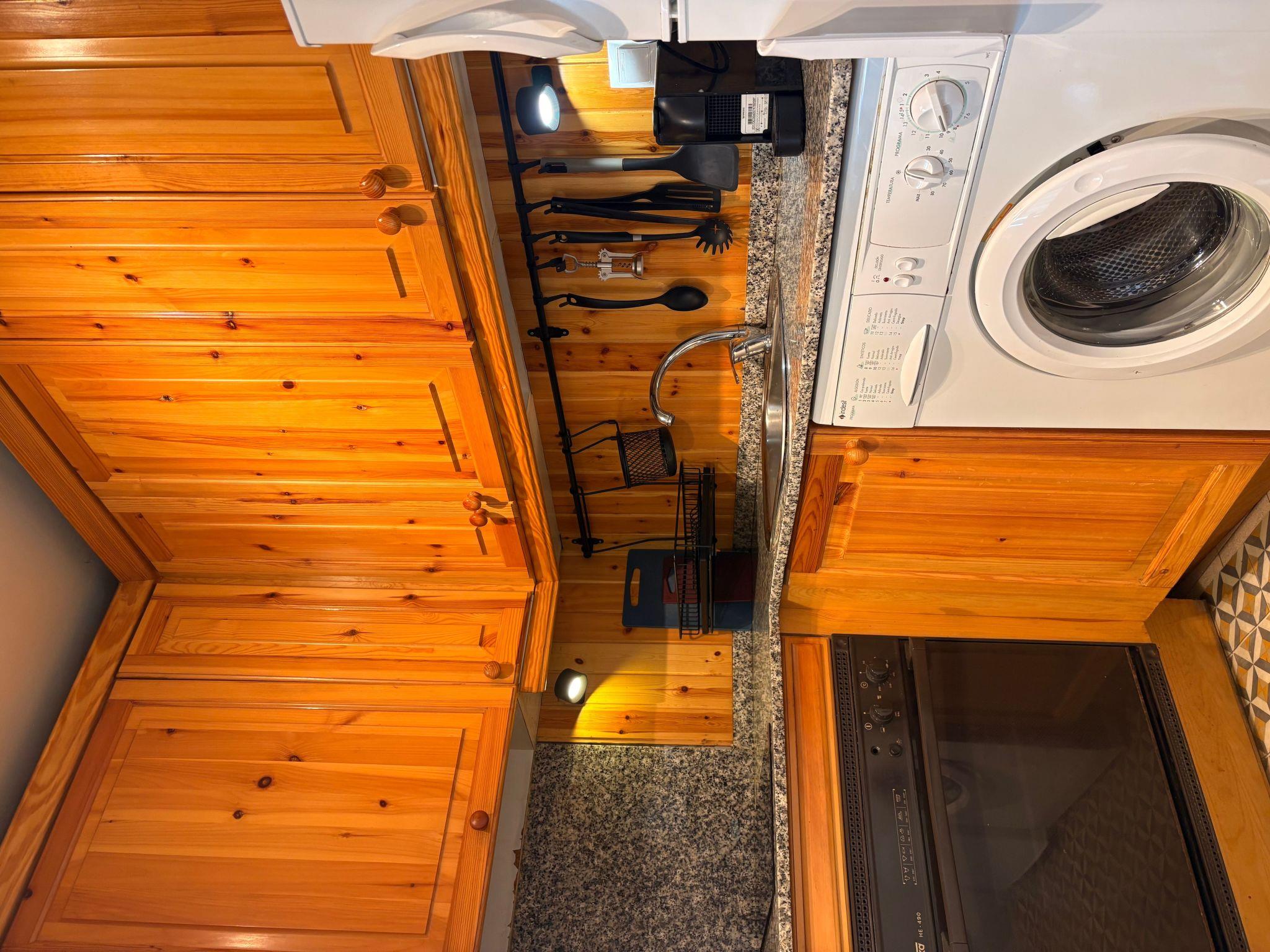 The interior of this flat is designed to maximise comfort and space, combining functionality and aesthetics. It offers a warm and cosy atmosphere, with wooden beams that give it a rustic and homely feel. It is equipped with amenities such as a washing machine for the exclusive use of the accommodation, a fully equipped kitchen with ceramic hob and all the necessary utensils to prepare and enjoy your meals, including an Italian coffee maker, ideal for traditional coffee lovers, and a Nespresso coffee machine for those who prefer the convenience of capsules.