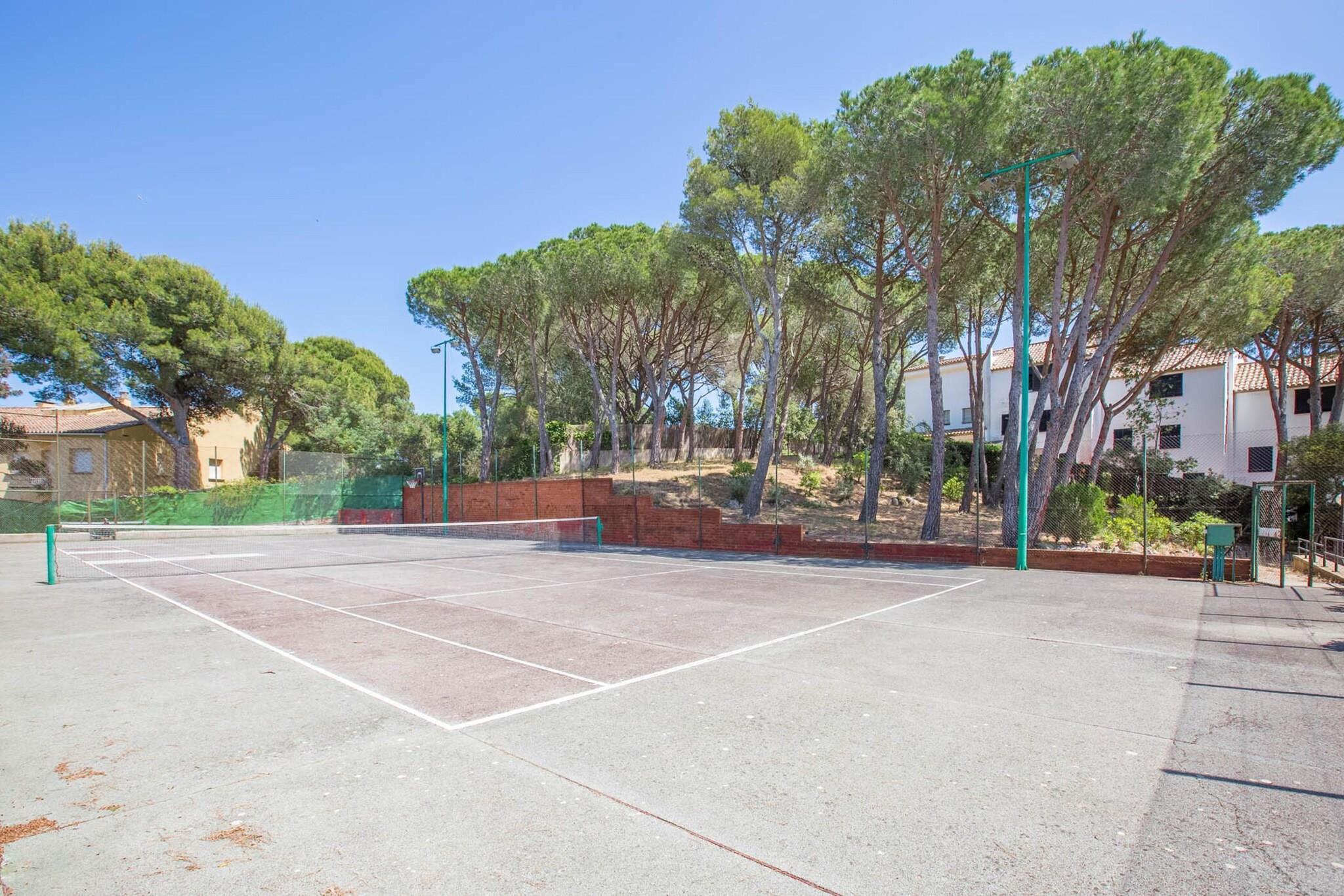 Første etasje: (Kjøkken(brødrister, kaffetrakter, stekovn, mikrobølgeovn, oppvaskmaskin, kjøleskap, fryser, ), Stue/spisestue(TV, spisebord, sittehjørne), soveværelse(dobbeltseng), soveværelse(enkeltseng, enkeltseng), soveværelse(køyeseng), Sovrum med badrum(dobbeltseng(150 x 200 cm), badekar), bad(dusj), Internett-tilgang) garasje, vaskemaskin, terrasse, parkering, svømmebasseng(deles med andre gjester), tennisbane, strykejern