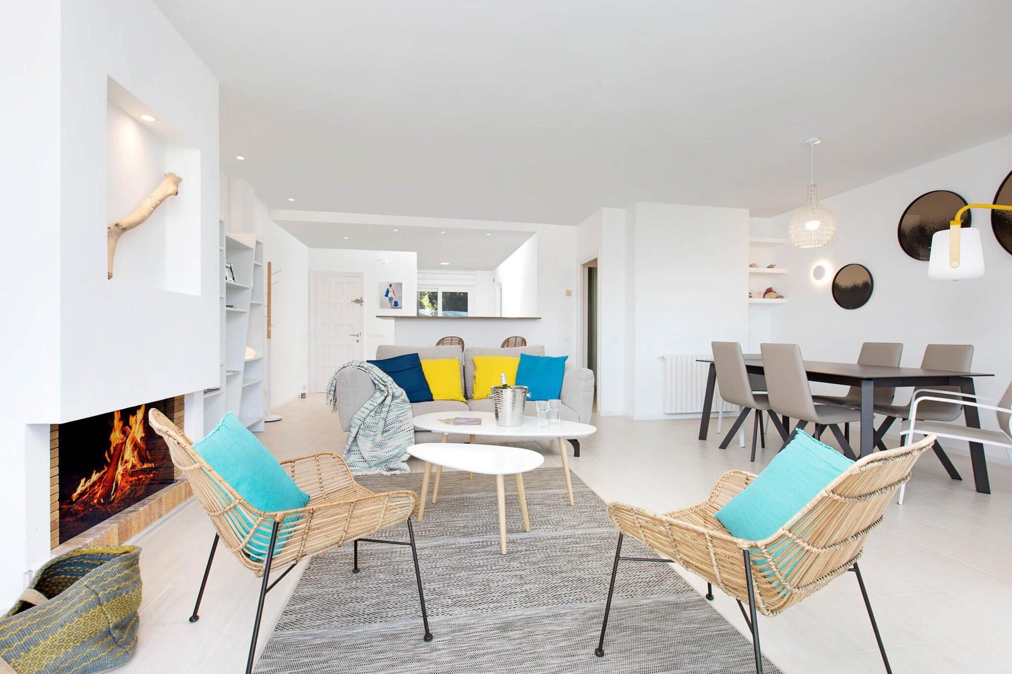 I 2. etasje: (åpent kjøkken(vannkoker, brødrister, kaffetrakter, stekovn, mikrobølgeovn, oppvaskmaskin, kjøleskap, fryser, ), Stue/spisestue(TV, spisebord, sittehjørne), soveværelse(dobbeltseng), soveværelse(enkeltseng, enkeltseng), soveværelse(enkeltseng, enkeltseng), bad(dusj), WC(toalett), Internett-tilgang) garasje, vaskemaskin, oppvarming, terrasse, hage, parkering, svømmebasseng(deles med andre gjester), tennisbane