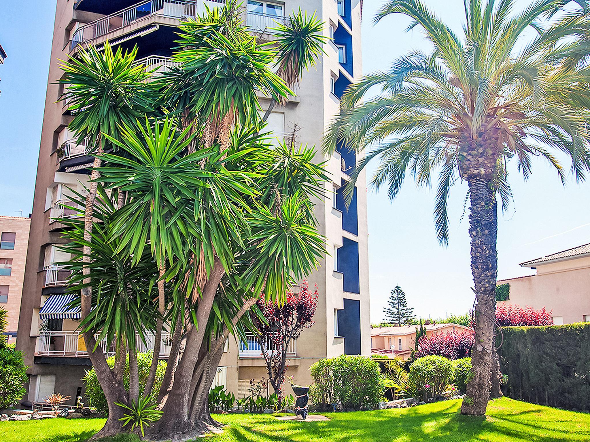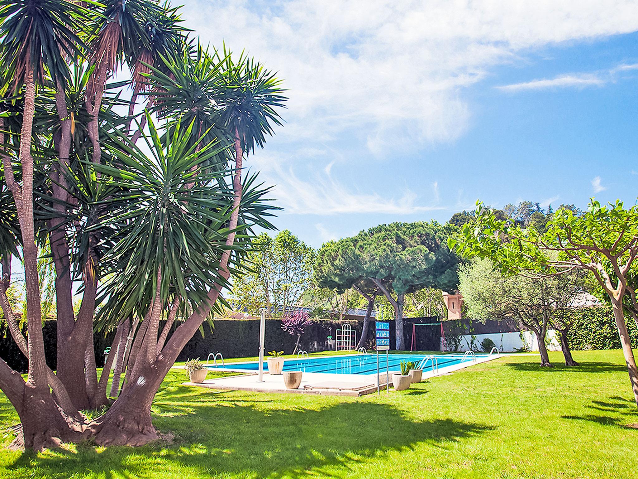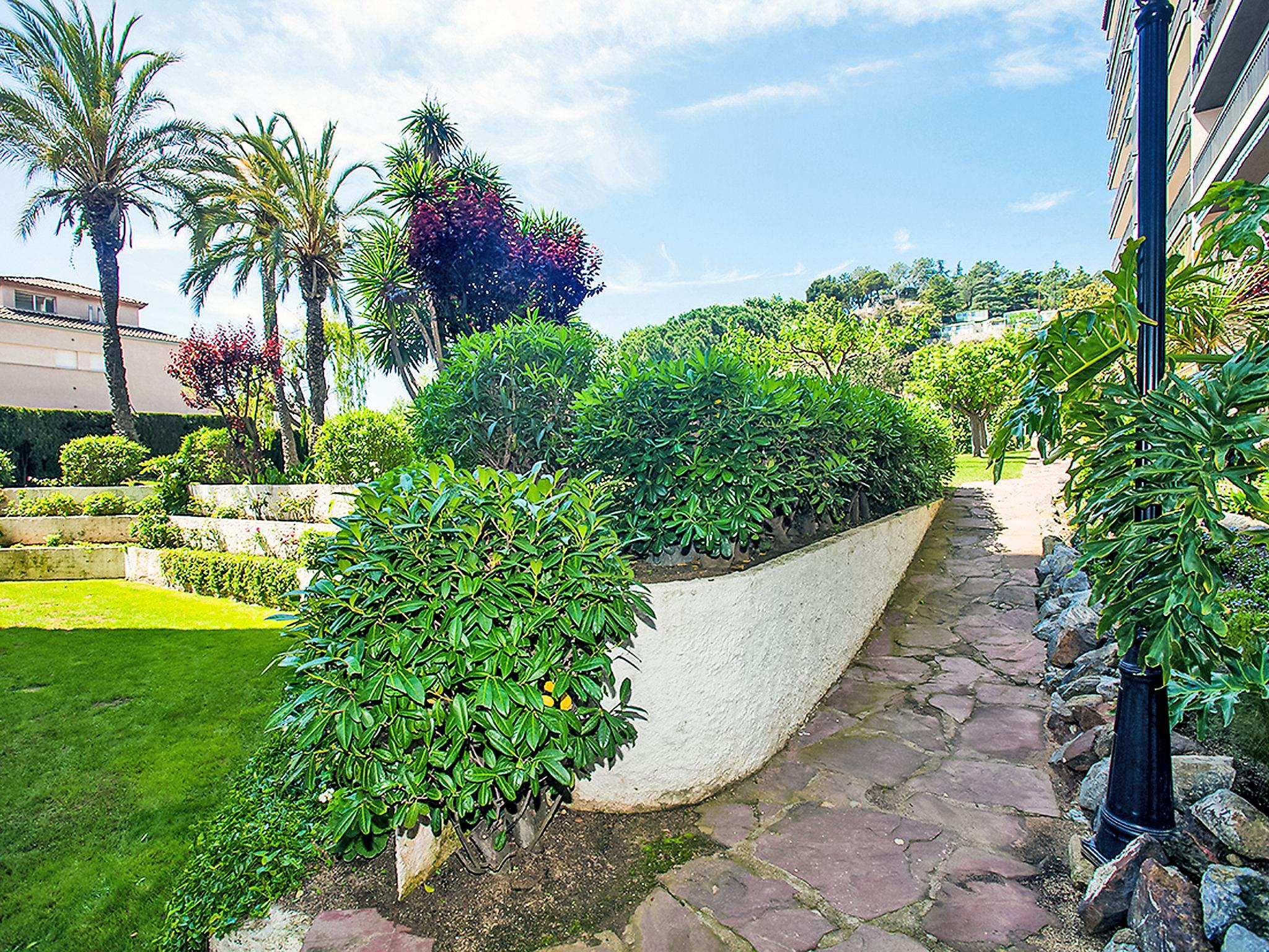 Calella: Apartment block "Edificio Blanqueries", 7 storeys, built in 1981. 1.5 km from the centre of Calella de la Costa, 50 m from the sea, 50 m from the beach. For shared use: property 1'400 m2 (fenced), garden with lawn, swimming pool (24 x 12 m, depth 200 cm, seasonal availability: 01.Jan. - 31.Dec.). Children's pool, outdoor shower, children's playground (swing). Private: garden furniture. In the house: lift. Public parking on the road. Grocery 200 m, restaurant 150 m, bus stop 100 m, railway station "Calella de la Costa" 2 km, sandy beach 50 m. Nearby attractions: Barcelona centro 50 km, Waterworld 20 km, Jardín Botánico Marimurtra 16 km, Jardín Botánico Pinya de Rosa 17 km, Castillo Medieval de Tordera 18 km. Please note: suitable for families. The owner does not accept any youth groups. Additional accommodations can be booked.