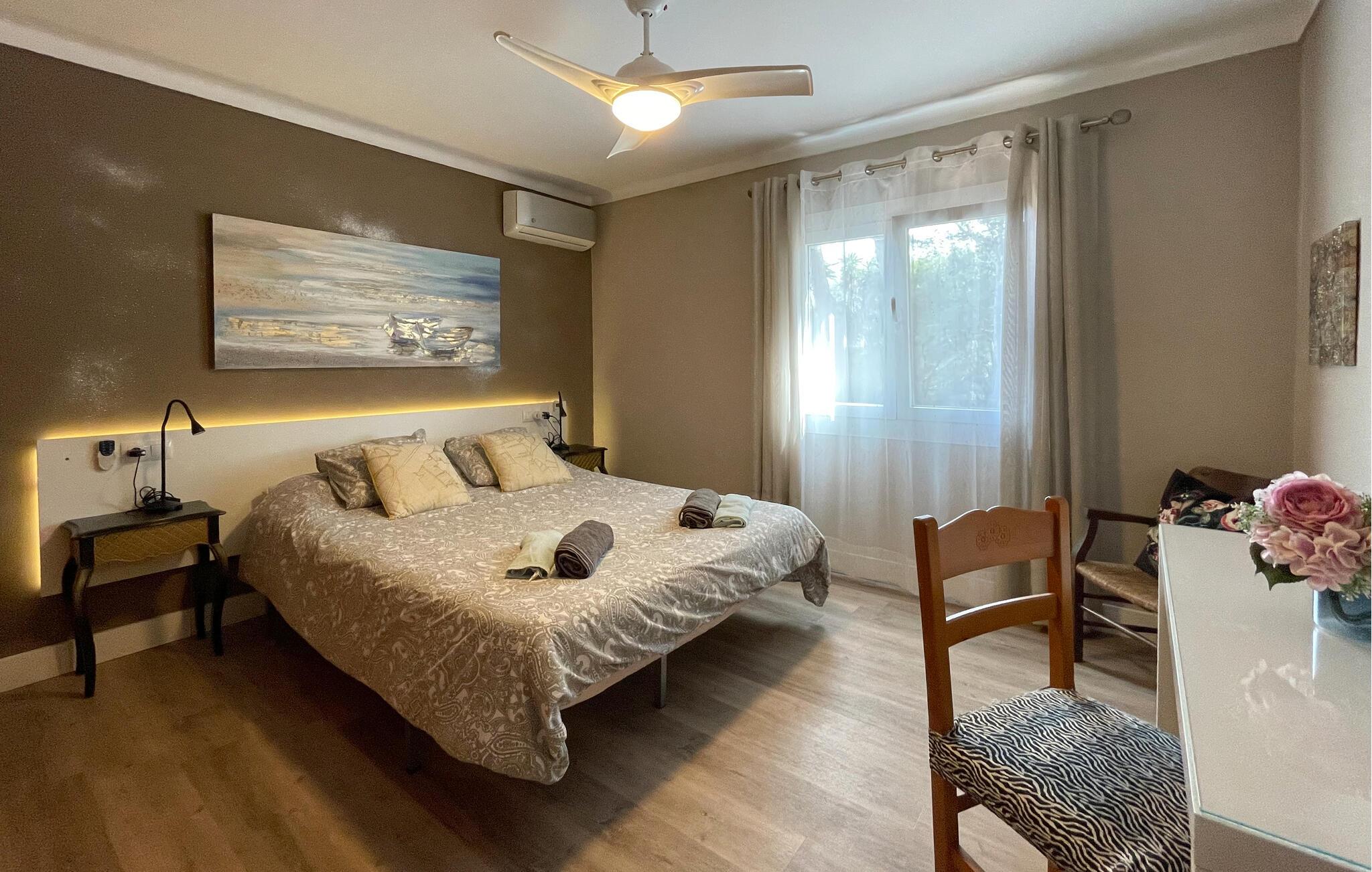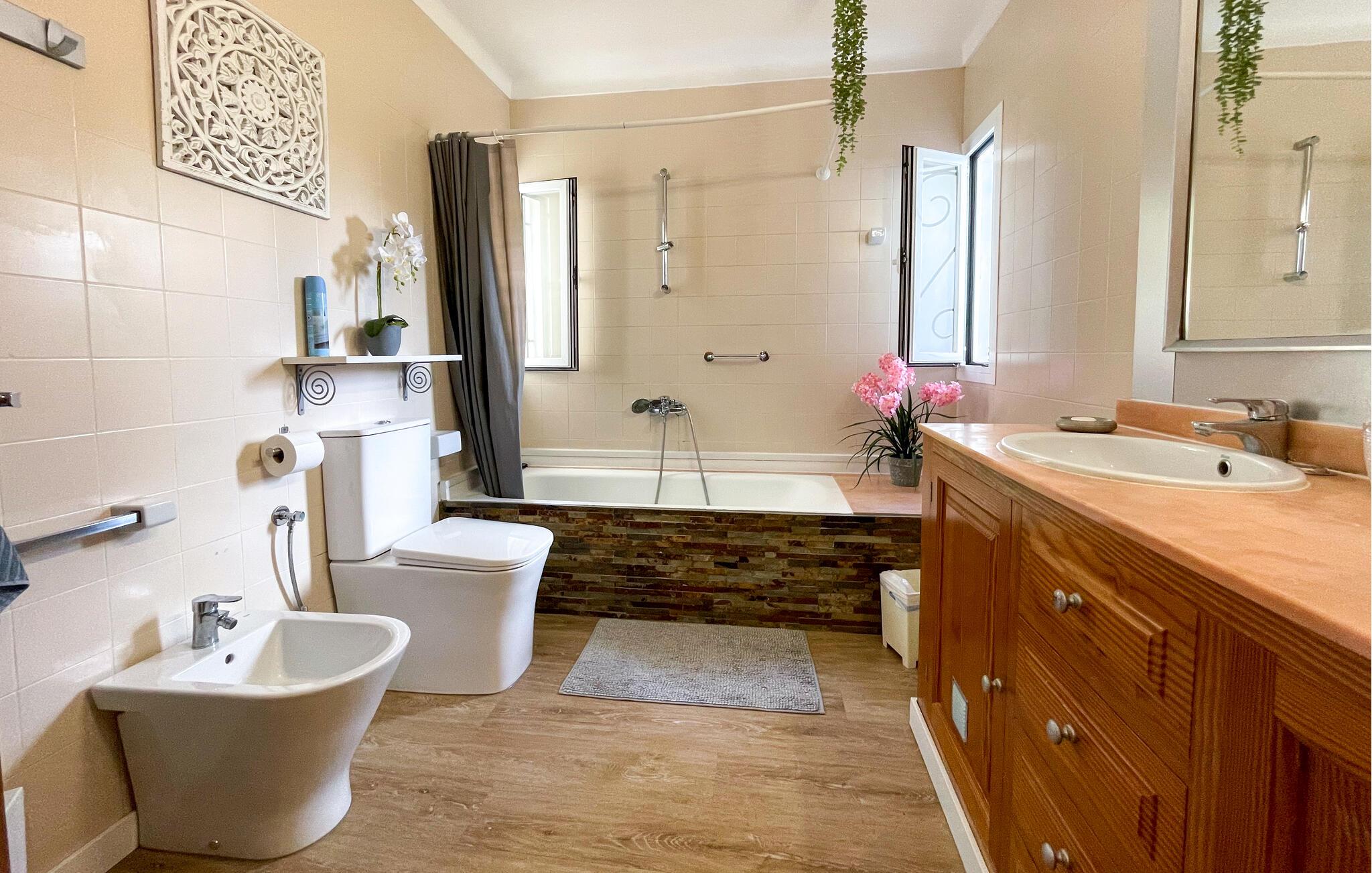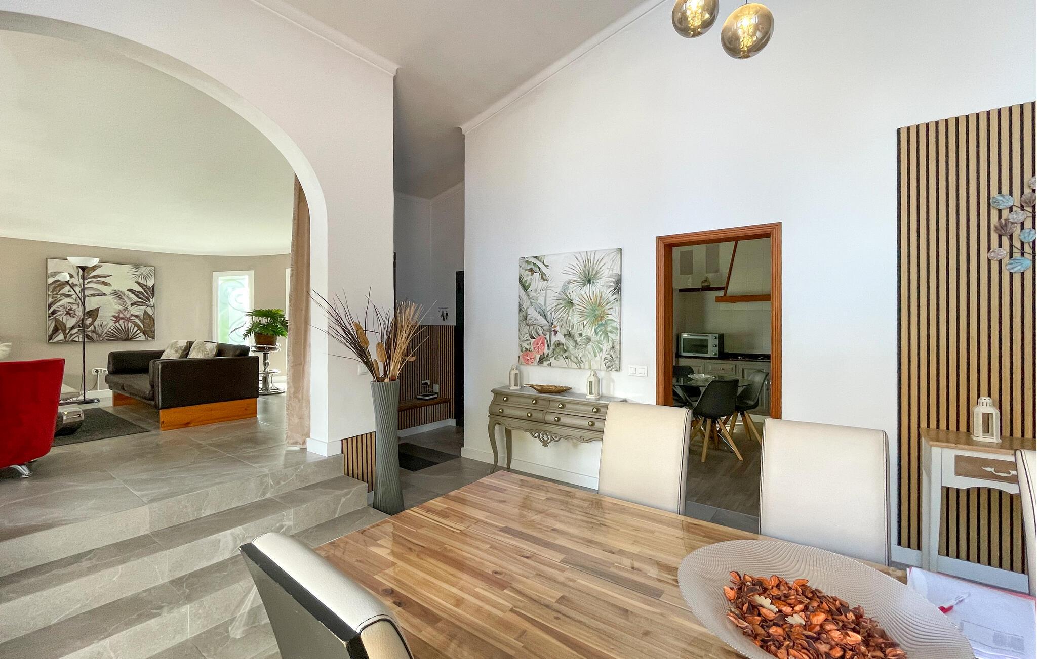 Denne lyse og stilfullt innredede fincaen ønsker deg velkommen til Mallorcas vakre østkyst, og ligger bare en kort spasertur fra sandstranden. Tilbered middelhavsretter sammen på det romslige kjøkkenet, slå dere ned ved det innbydende spisebordet for lange måltider, og sett dere godt til rette i stuen for å avslutte en lang dag med en film eller en spillkveld.